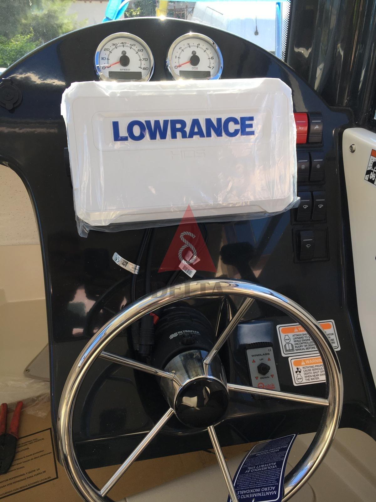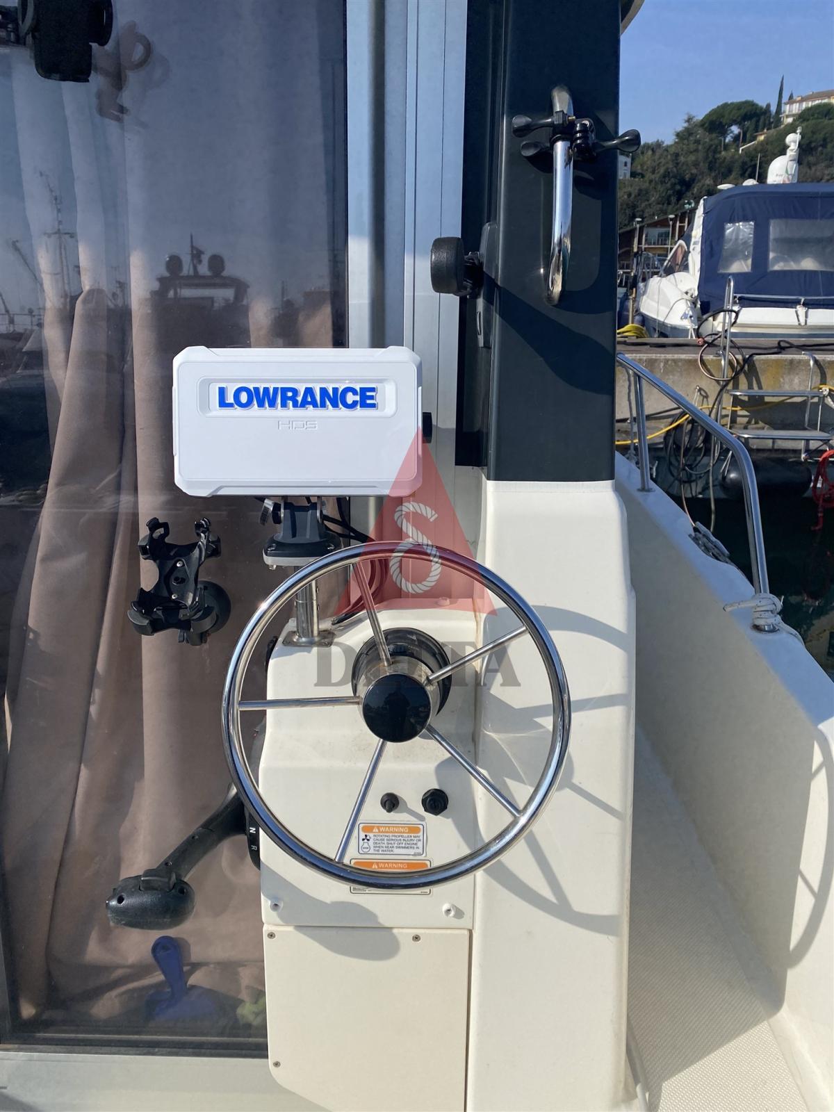 Electronic engine control, 2 Depth Sounder, 2 GPS (Lowrance), 2 Plotter with GPS antenna (Lowrance), Co-pilot seat, Dynamic positioning system (Motore elettrico ancora GPS con telecomando), Sonar.