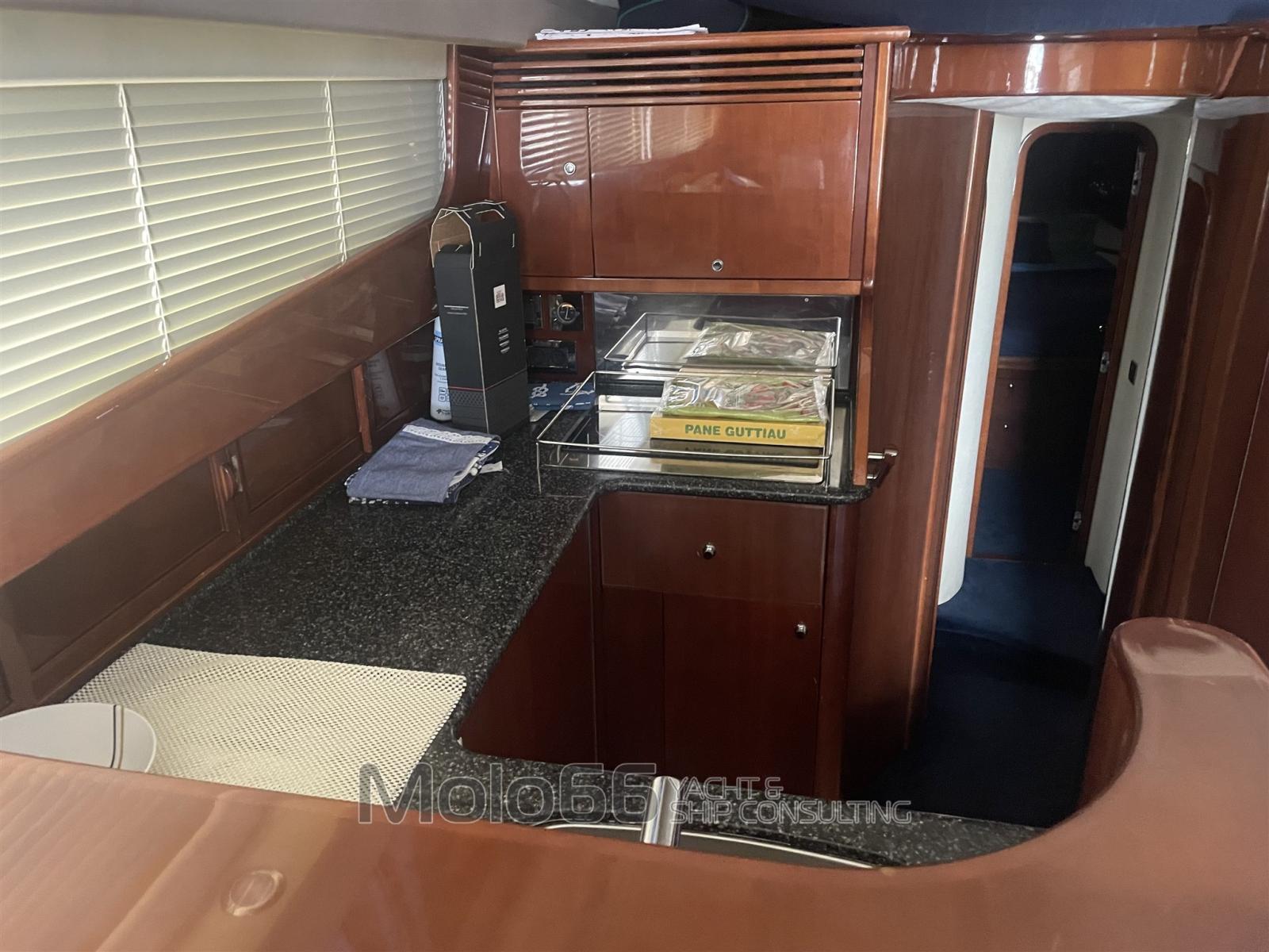 Galley, Deck Refrigerator (su FLY), 2 Refrigerator, ICE Maker (esterno), Washer, Coffee Machine.