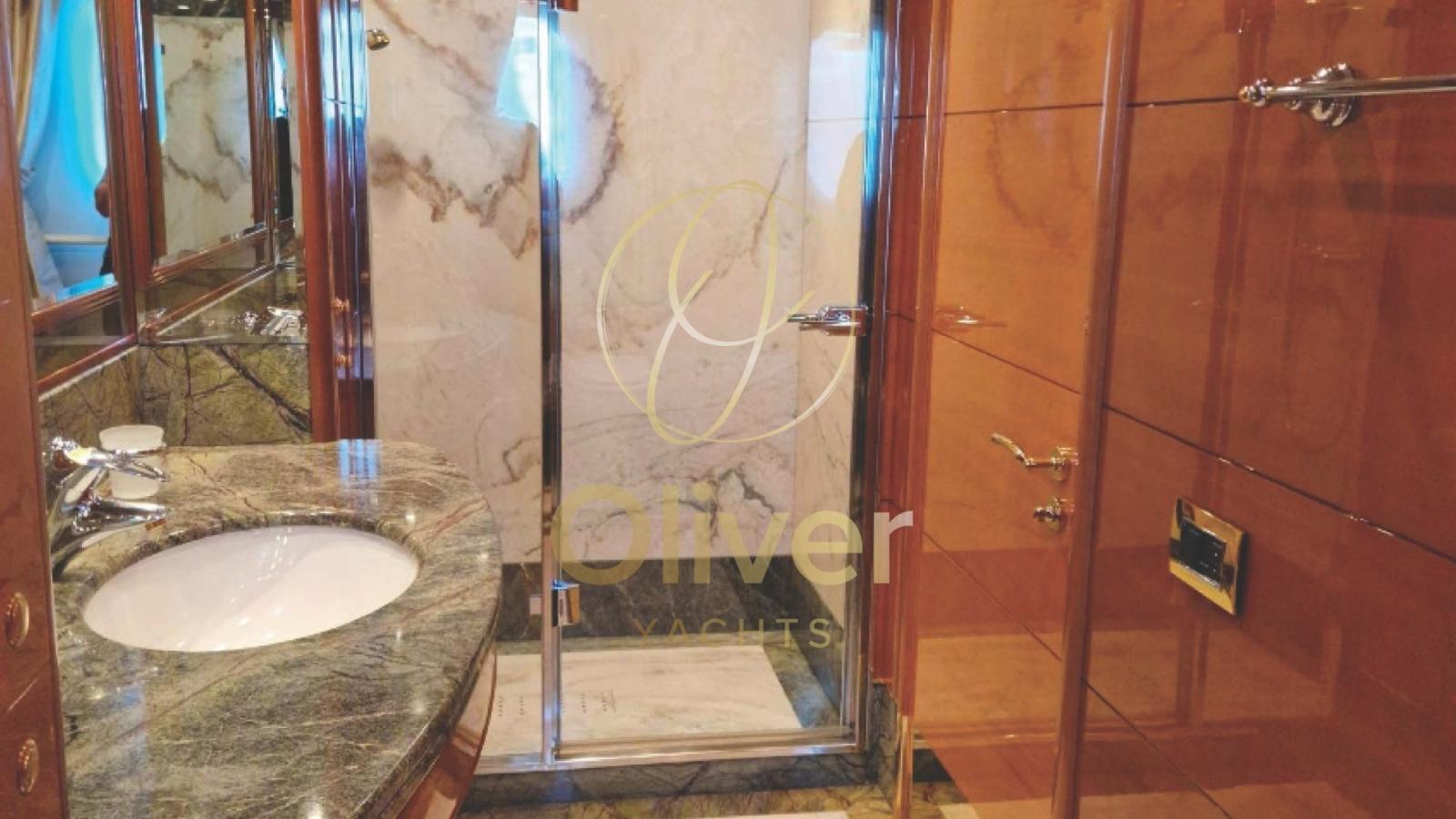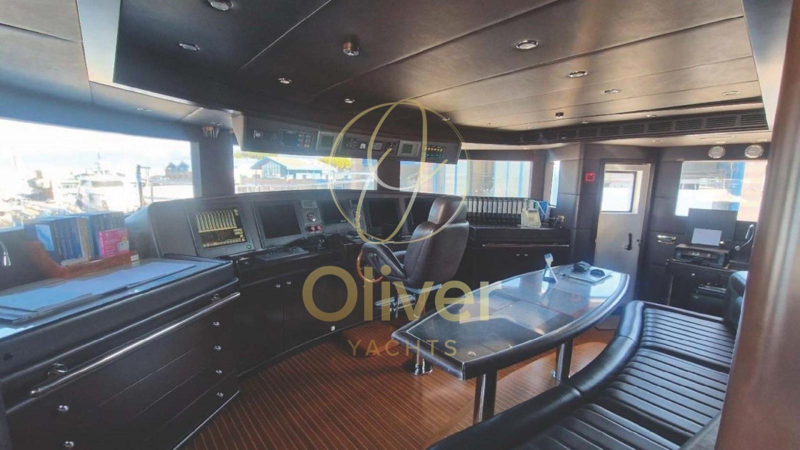 Fume/Gas Detector, Engine Alarm, Bilge Alarm, Electric Engine Compartment Opening, Auto Dynamic Trim Interceptor, Water pressure pump, Auto-Trim, Draining System, Teak Side Decks, Canvas Wing, Deck Shower, Twin Steering, Headlights fixed on the stem, Directional Spotlight, Electric Flaps, Tender Garage, Fire Extinguishing System, Compressor Air System, Anchor Chain Washdown, Washbasin in the cockpit, Courtesy Lights, Underwater lights, Jet-Ski, Gangway, Platform, Automatic Bilge Pump, Manual Bilge Pump, Teak deck, Entry door, Side door, Teak Cockpit, Shorepower connector, Water harbor connector system, Voltage Rectifier, Electronic instrumentation repeater, Electric Windlass, swimming ladder, Saddles for tender, Waste Water Purifier System, Stabilizers, cockpit table, Tender, Horn, Stern Winches.