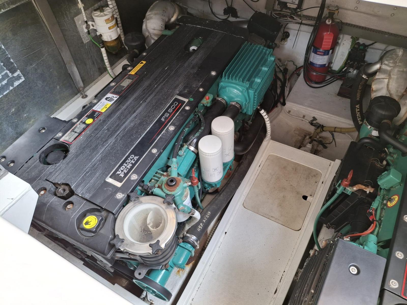 Engine Alarm, Water pressure pump, 4 Batteries, Deck Shower, Directional Spotlight, Hydraulic Flaps, Hard top, Fire Extinguishing System, Underwater lights, Gangway, Platform, Automatic Bilge Pump, 2 Electric Bilge Pump, 2 Manual Bilge Pump, Voltage Rectifier, Electric Windlass, swimming ladder, cockpit table, Tender (con FB el).