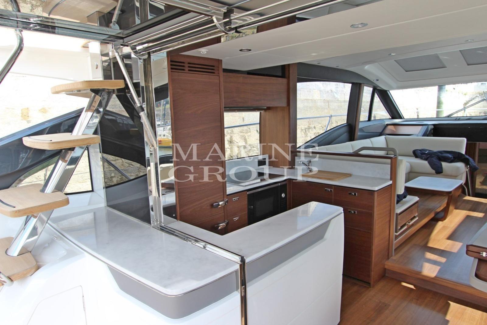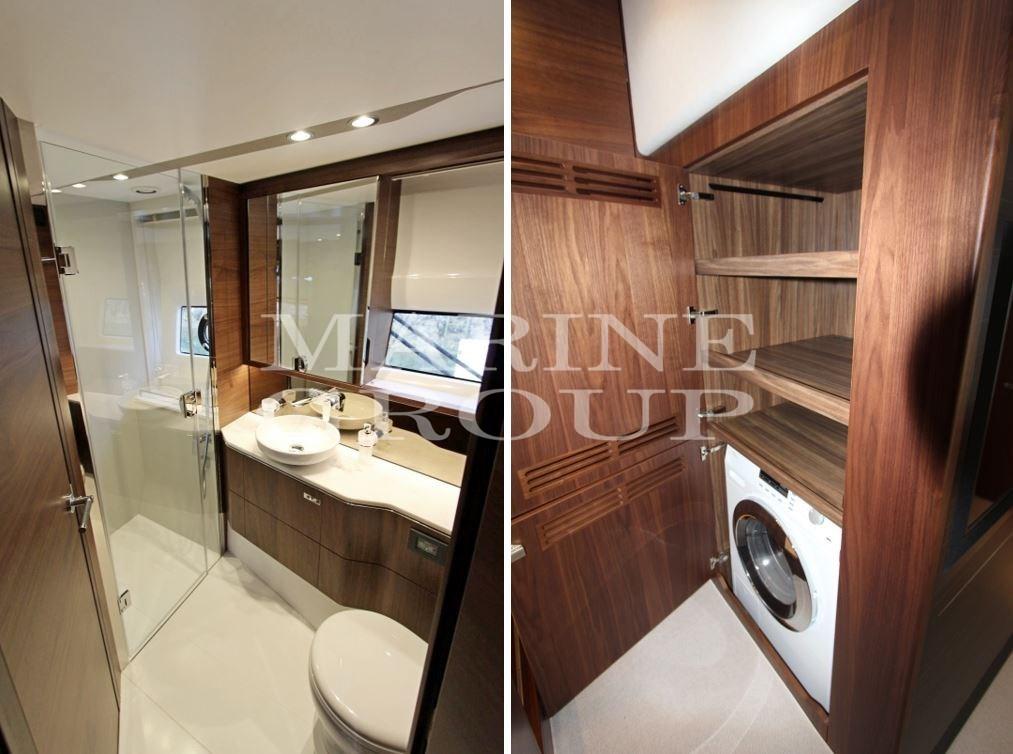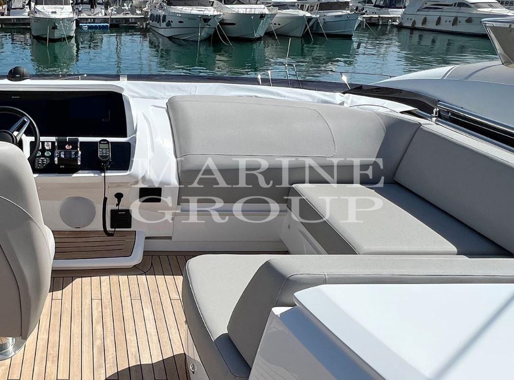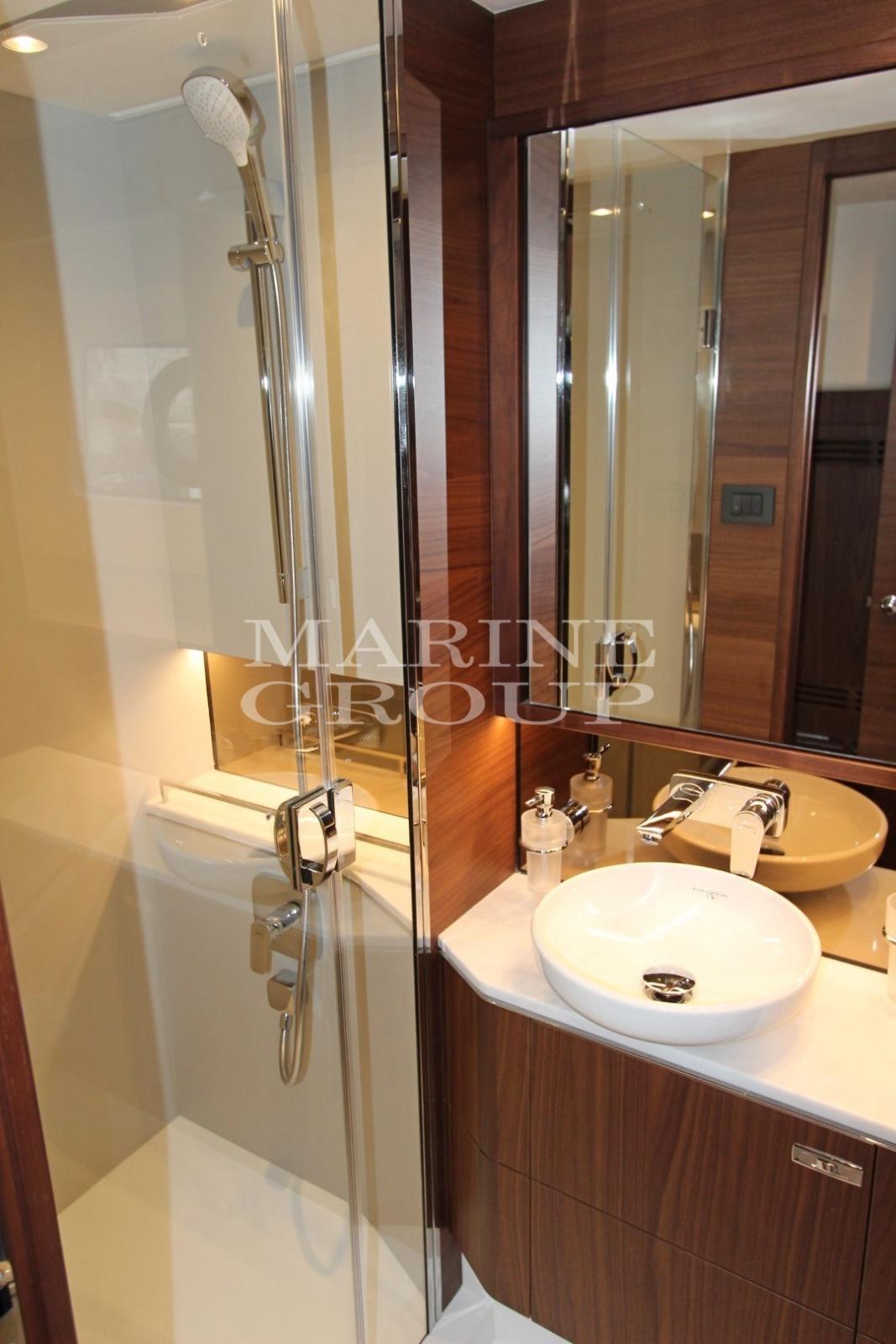 Variable speed stern and bow thrusters – Seakeeper NG9 stabilizer – Watermaker – White hull – Walnut interiors with satin finishes – Crew cabin layout – Guest cabin with single beds convertible to double bed – Safe in the master cabin – Upgrade of wooden floor in the saloon and console – Upgrade of the kitchen top in Carrara white – Upgrade of sofas in the saloon, dinette and owner's cabin in leather – Sportbridge floor in Teak – Coffee table in the bow in teak – Electric stern winches for mooring (2) – Electro-hydraulic telescopic gangway 3.5 m – Hard top that can be opened in the saloon – Electric awning for the cockpit, grey colour – Third control station in the cockpit – Addition of 20 m of anchor chain, total 60 m – Upgrade for 17.5 kW ONAN generator – Dishwasher in the galley – Electric BBQ on the Sportbridge – Ice maker in the saloon – Washer-dryer – Upgrade of the external lighting package with additional lights on the side and aft passages - Cameras in the engine room and cockpit - Upgrade for MIELE induction burners in the galley - TV in the saloon, master and VIP cabin - Sat TV - Chain counter - Air conditioning hot/cold (82,000 BTU) - Air conditioning hot/cold crew cabin (6,000 BTU) - Mosquito nets in all opening portholes - External covers in Grey canvas - Bimini Top in Grey canvas with adjustable light upgrade - Cockpit cushions, sport fly and bow in Comfort Exterior III Vogue - Crew cabin black water drain connected to black water tanks