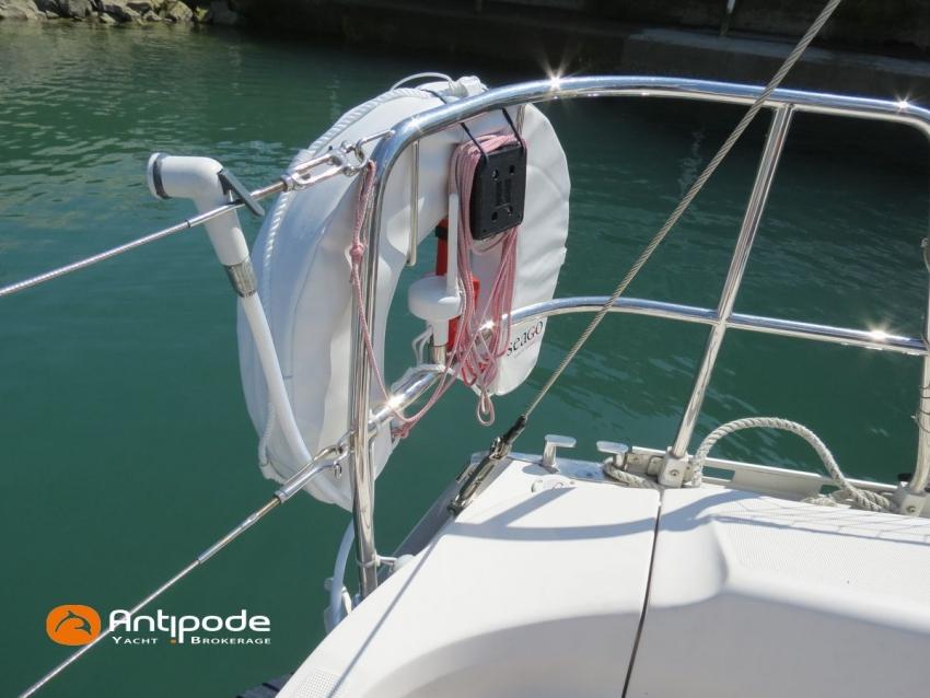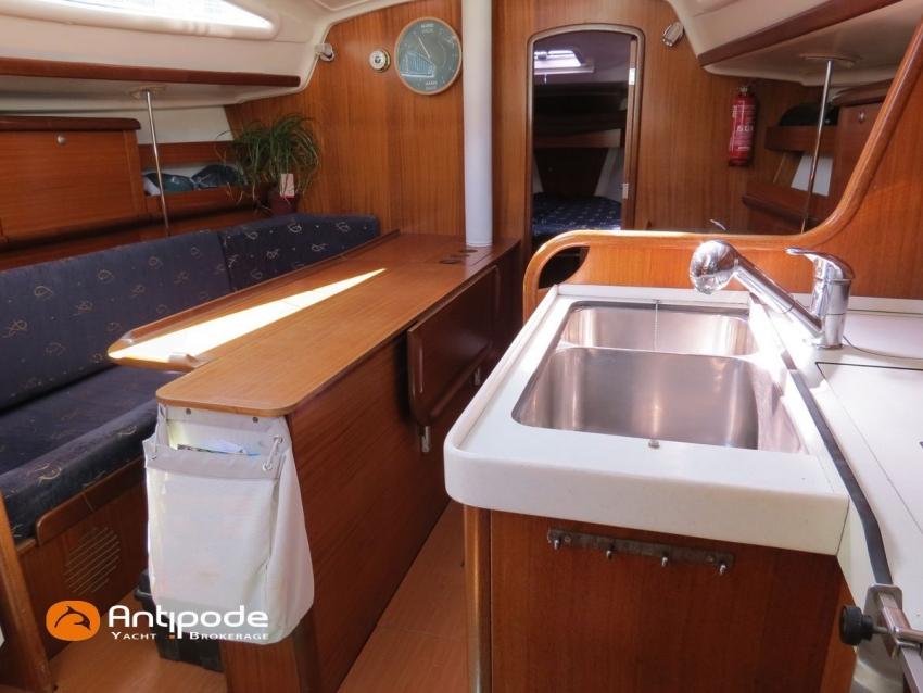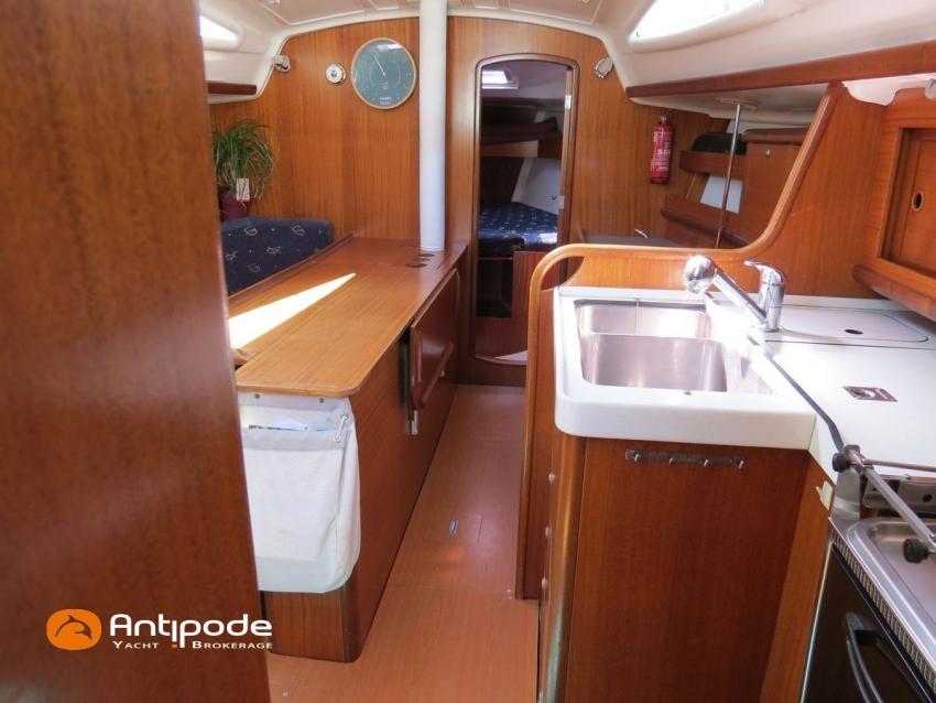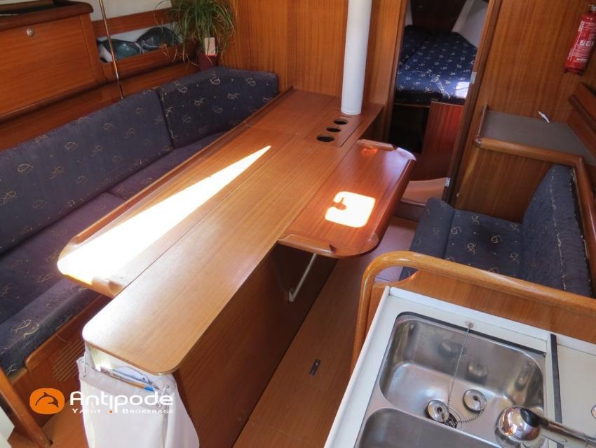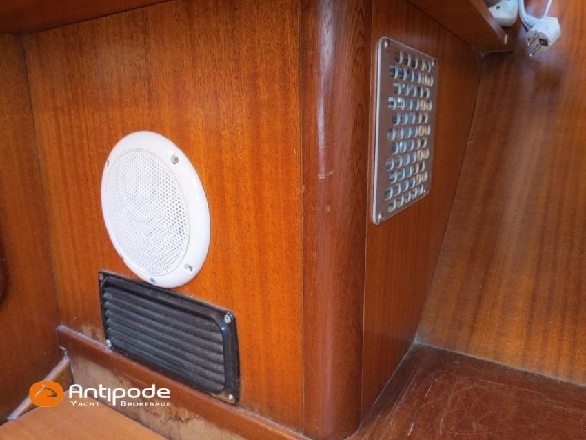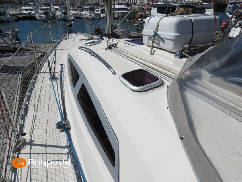 DELPHIA 33, 2009, Volvo D1-20, 20 hp (2070 hrs), Interior layout version 1 forward cabin, 1 aft cabin, 1 heads (toilets + shower), Mahogany interior woodwork, 2 cockpit primary genoa winches - Lewmar 40ST, 2 roof winches for adjustment and sail handling - Lewmar 30ST, Roof mounted main sheet traveller, Teak slatted cockpit floor, Teak cockpit seats, Teak bathing platform, Aluminium toerail, Carbonautica wheel steering system (2022), Cockpit sprayhood, Electric windlass (700W), Deck stepped aluminium classic mast and boom - Selden, Classic full batten main sail - Sextant 27m² (2014), 2 x Single line main sail reefing system, Main sail lazy bag (2024), Genoa roller furling with above deck drum - Furlex 200S, Furling genoa - Sextant 31m² (2015), Asymmetric spinnaker (2021), Spinnaker snuffer, Raymarine SPX 10 in board autopilot , Raymarine ST 60 navigation system, GPS and chartplotter (nav station) - Garmin - GPS Map 525, GPS and chartplotter (cockpit) - Raymarine Axiom 7 (2022), Electronic navigation charts, DSC AIS VHF at chart table - B&G V60 (2022), Fridge unit 12 V (top opening door), Hot and cold pressurized water, 220 V shore power + battery charger (2019), Service batteries - 3 x 100Ah, Heating system in saloon working with Volvo engine, Holding tank, Hot and cold cockpit shower, Leds interior lights, No liferaft, No safety equipments, Kobra 14kg anchor + 30m lenght of chain, Second anchor + chain, Fenders and warps, Only 2 private owners, no charter, Located Brittany. For more information or to make an appointment for a visit, contact : Jean-Baptiste Lemaire +33 6 10 25 00 03 - jb@antipode-yachts.com