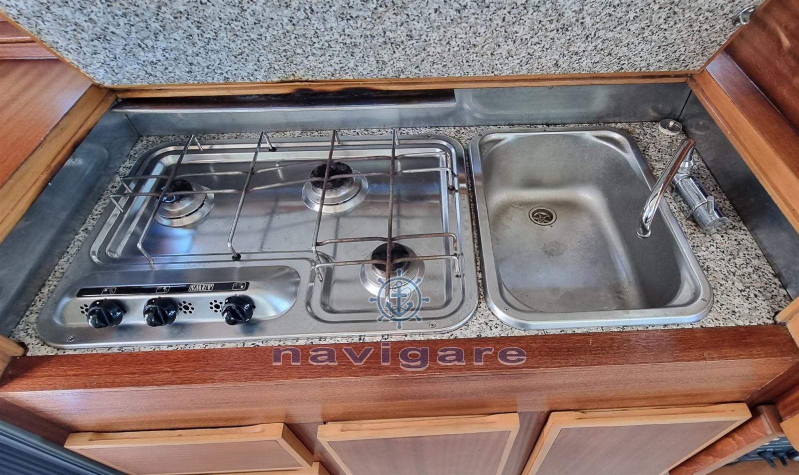 Engine Alarm, Bilge Alarm, Water pressure pump, 5 Batteries, Deck Shower, Hydraulic Flaps, Crane, Gangway (IDRAULICA OPACMARE), Platform, Automatic Bilge Pump, Teak Cockpit, Shorepower connector, Water harbor connector system, Voltage Rectifier, Electric Windlass, swimming ladder, cockpit table, Tender (2.60 m).