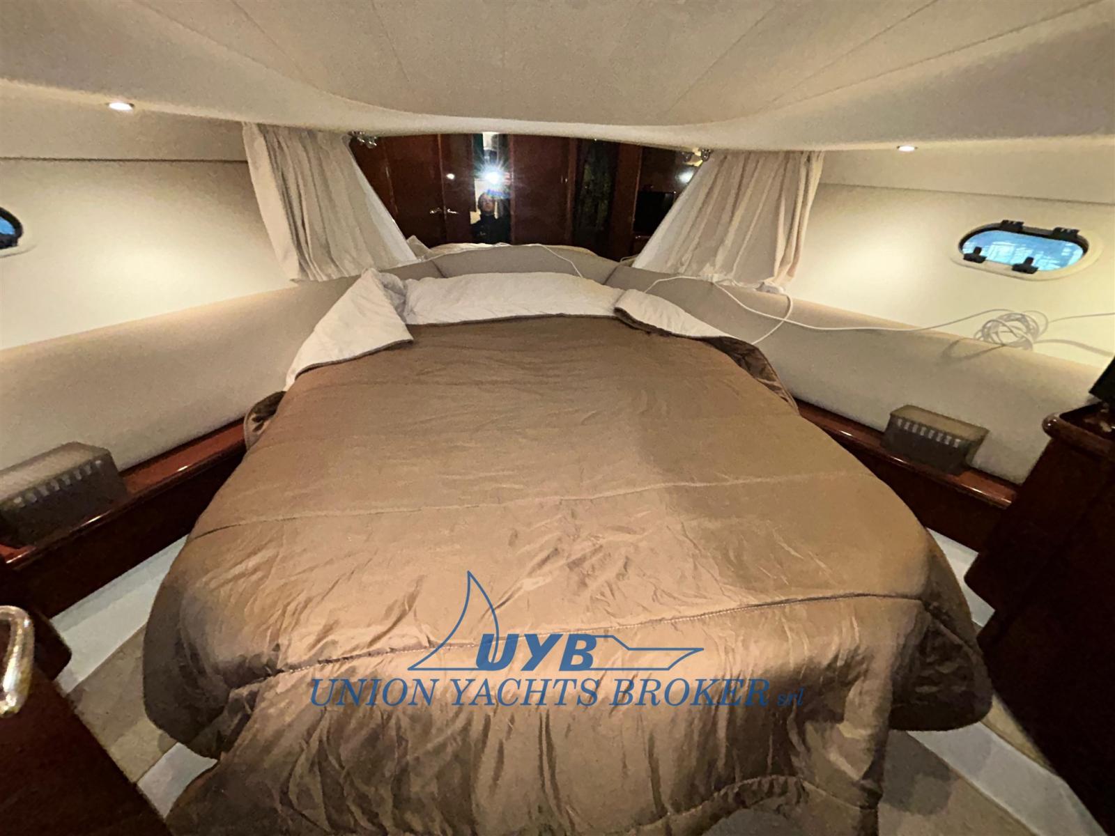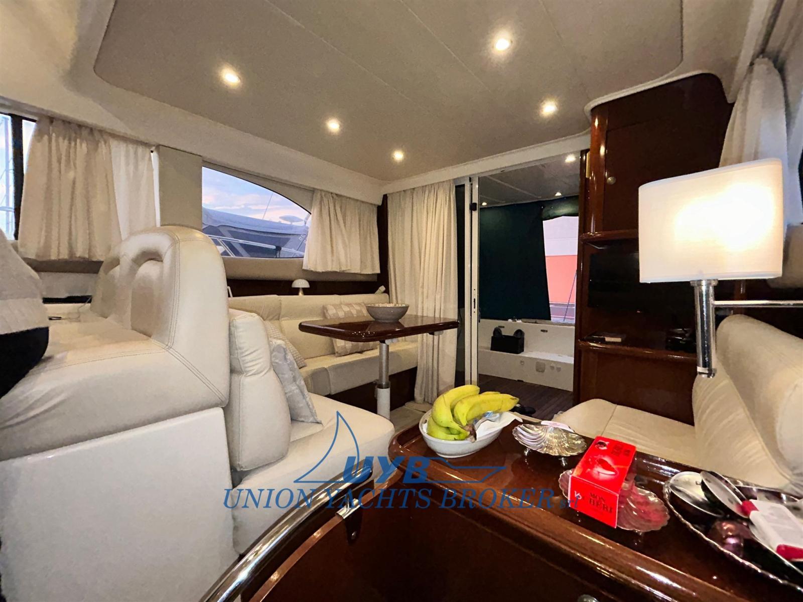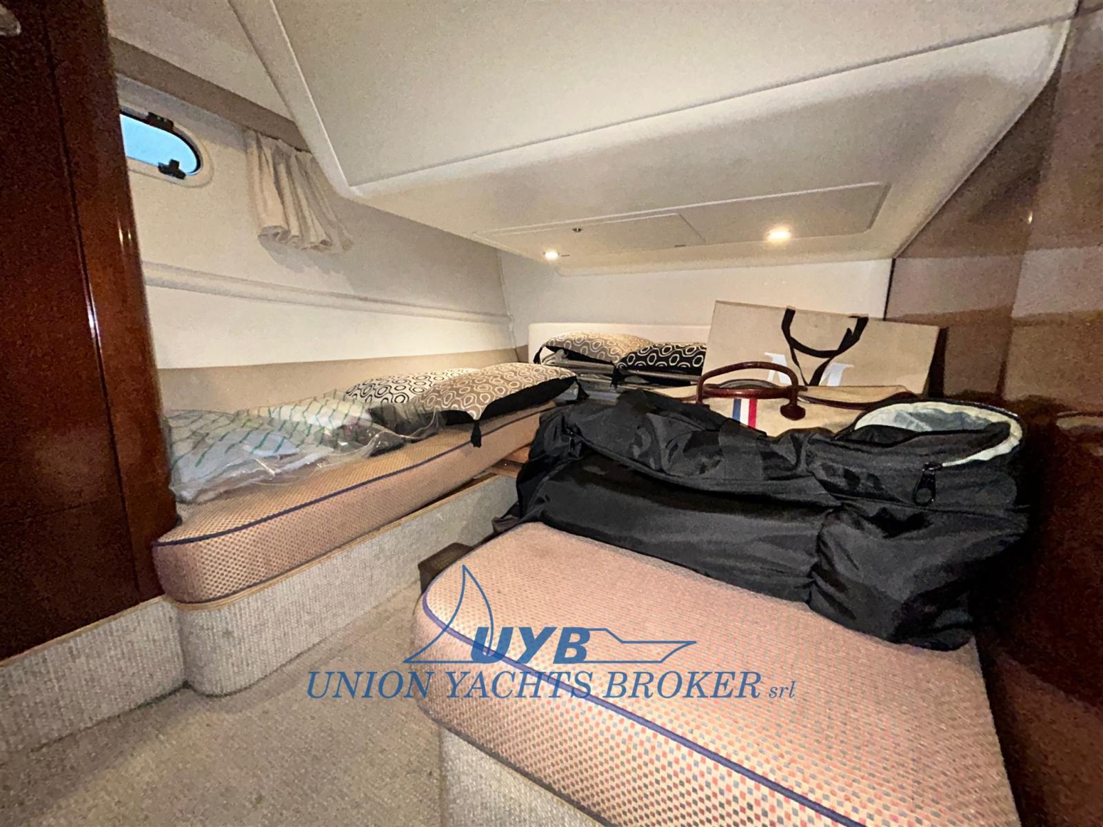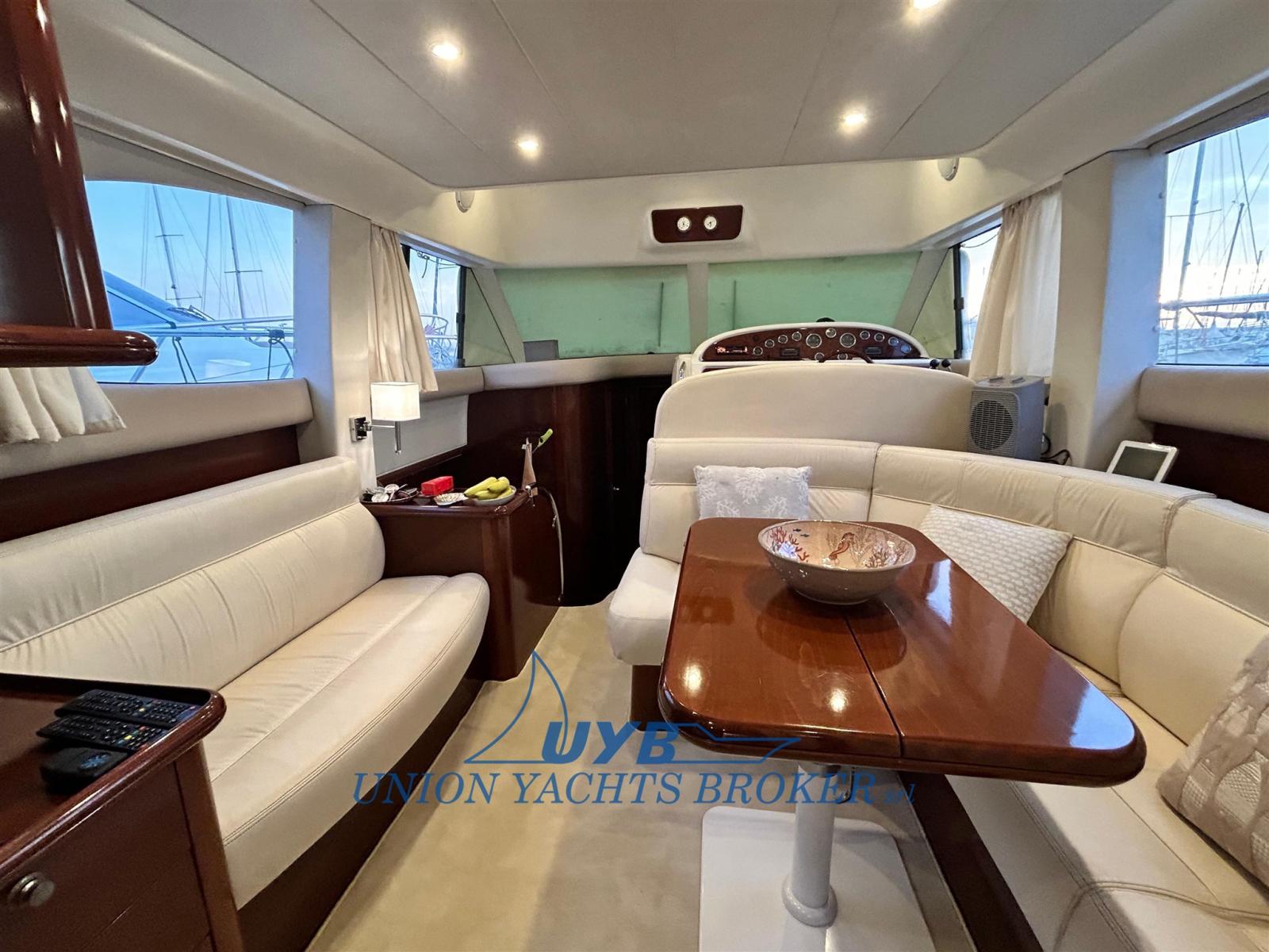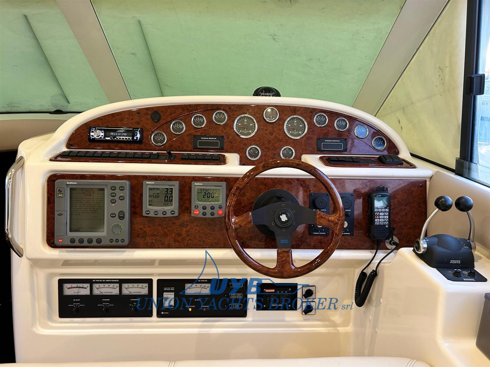 The external cushions were redone in 2023, testifying to the seller's scrupulous attention to detail. The two 370hp engines (maximum engine that can be installed) are regularly serviced at an authorized Volvo Penta workshop, with a few hours of operation, ensuring reliable and efficient performance. In 2022, the rudder on the flybridge was also replaced, helping to keep the boat at its full capacity.
