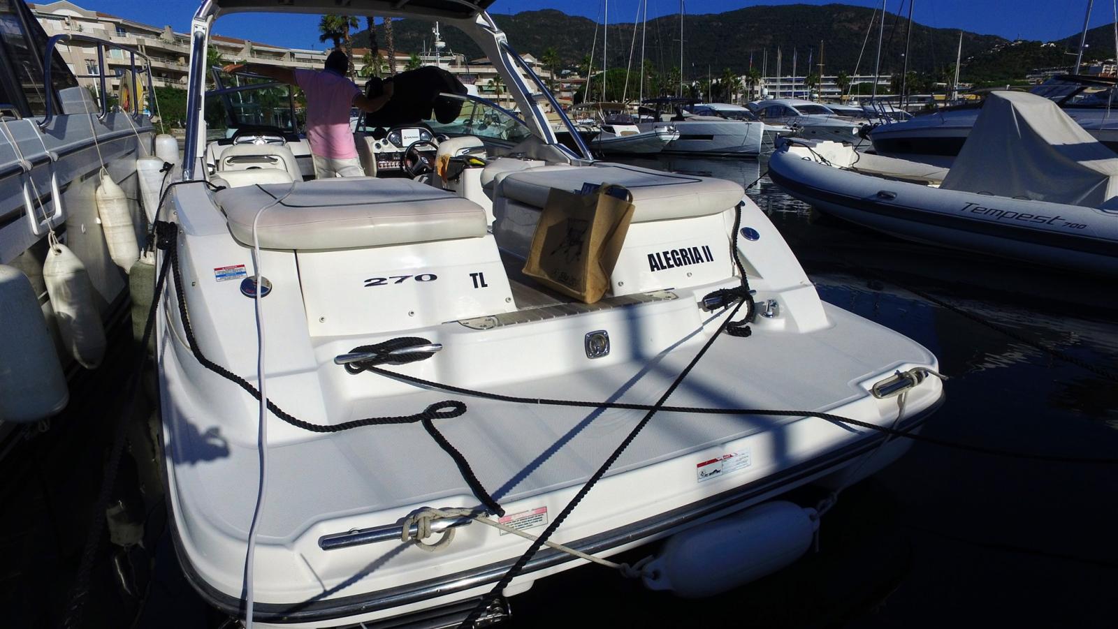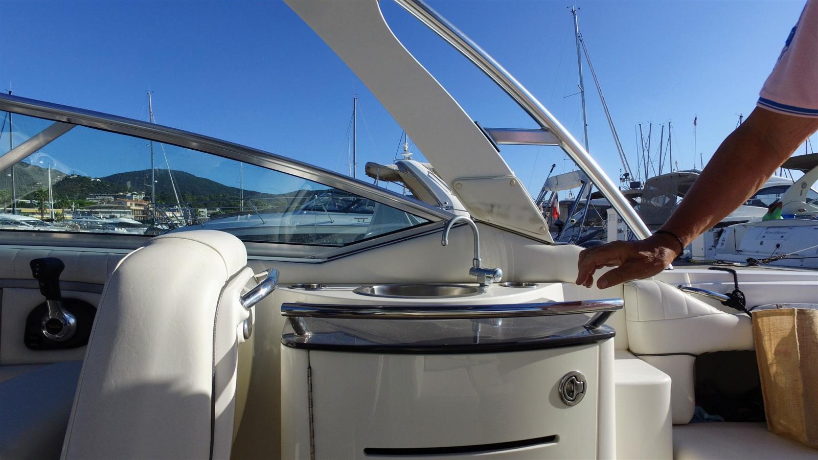 Engine Alarm, Electric Engine Compartment Opening, Water pressure pump, 2 Batteries, Battery charger (10 amp), Deck Shower, 2 Electric Flaps, Tow hook for water skiing, Flaps Indicators, Anchor Chain Washdown (2025), Washbasin in the cockpit, Courtesy Lights, Platform, Automatic Bilge Pump, Teak Cockpit (Refait en 2022), Shorepower connector, Electric Windlass, swimming ladder, cockpit table, T-Top.