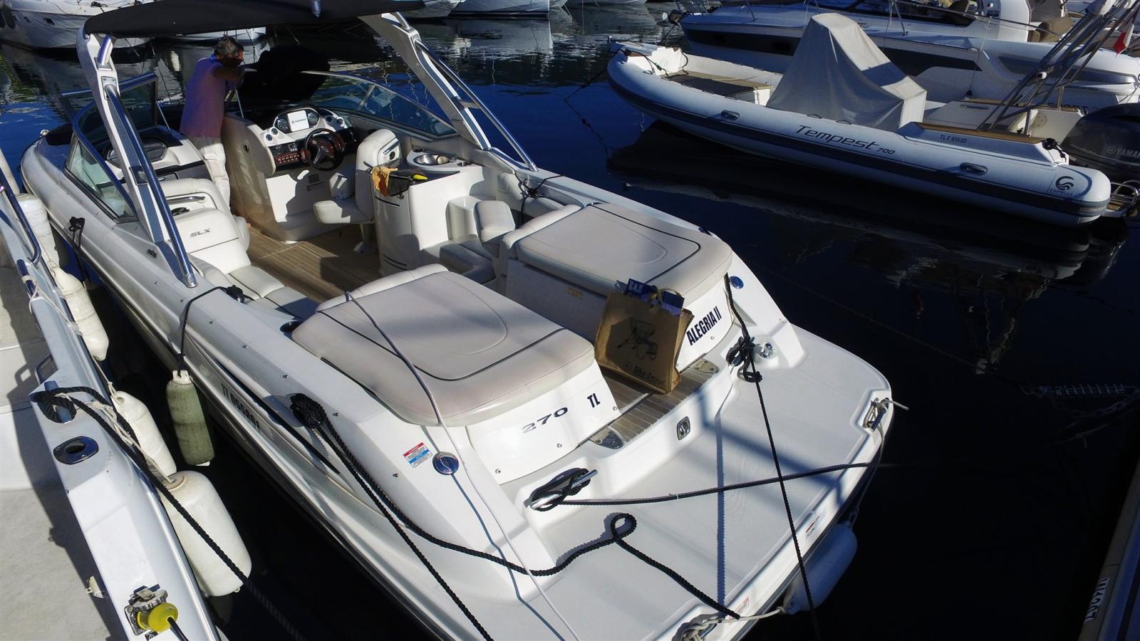 Enter the world of premium boating fun with the Sea Ray 270 SLX®, a luxury sport boat designed for those who demand the best in performance, comfort and style. A symbol of refinement, power and technology, the 270 SLX® perfectly embodies the Sea Ray philosophy: to create unforgettable experiences on the water. Whether it's for outings with friends, family getaways or water sports, this premium bowrider leaves nothing to be desired.