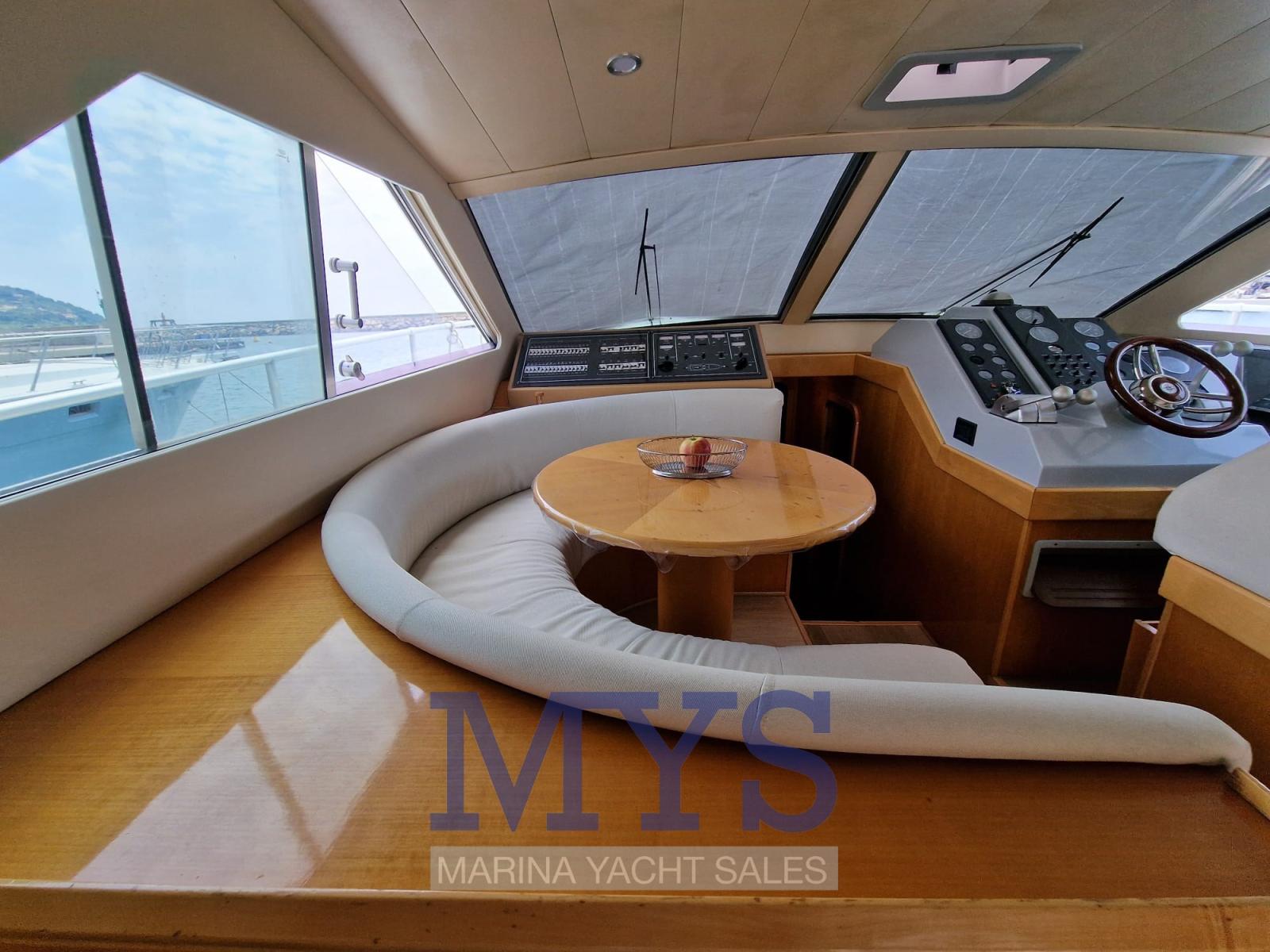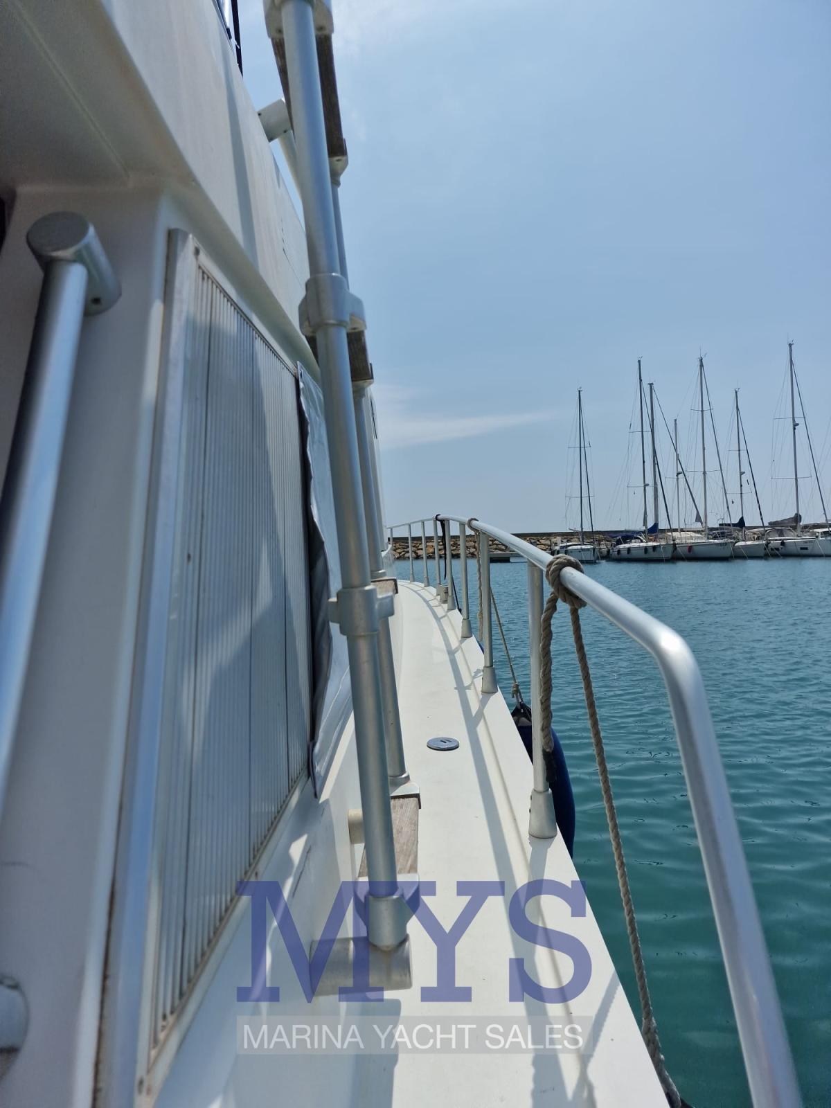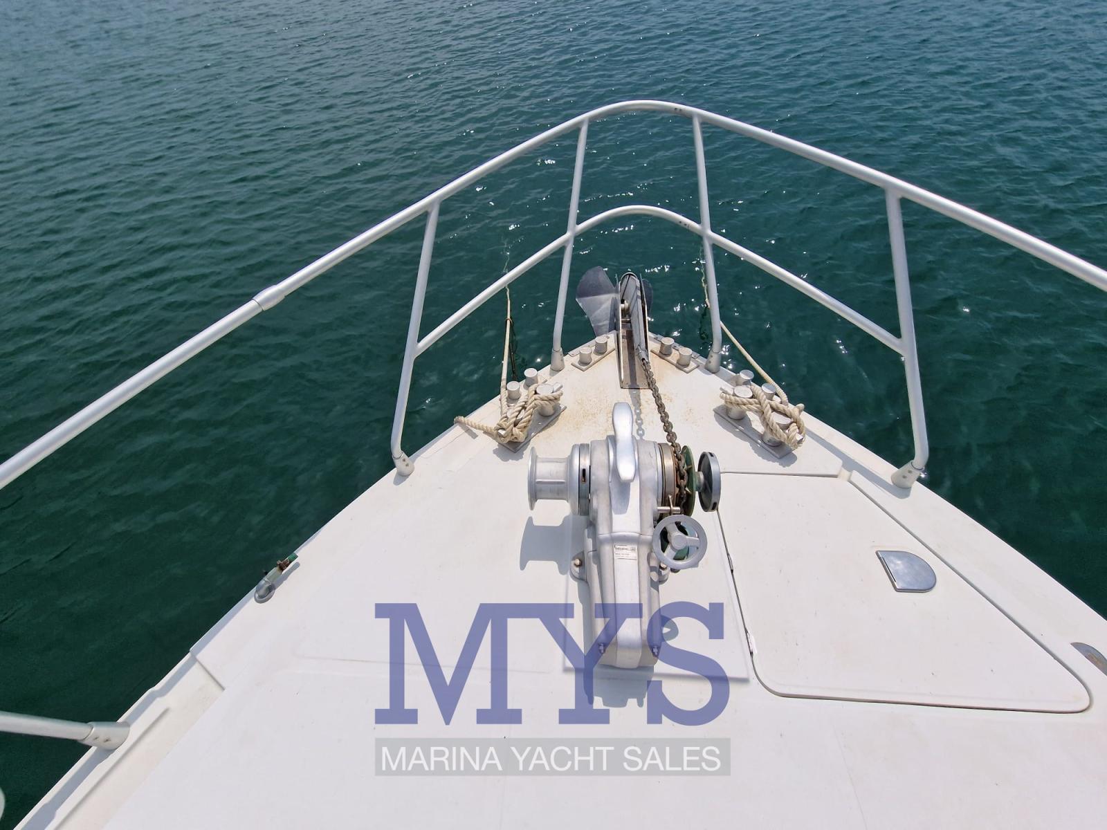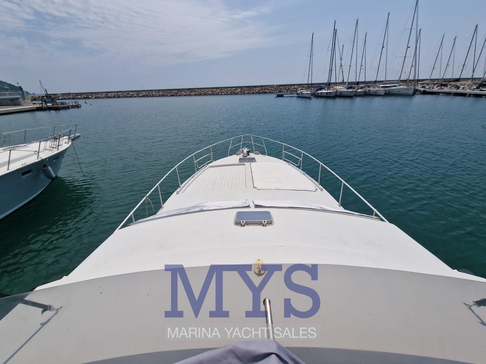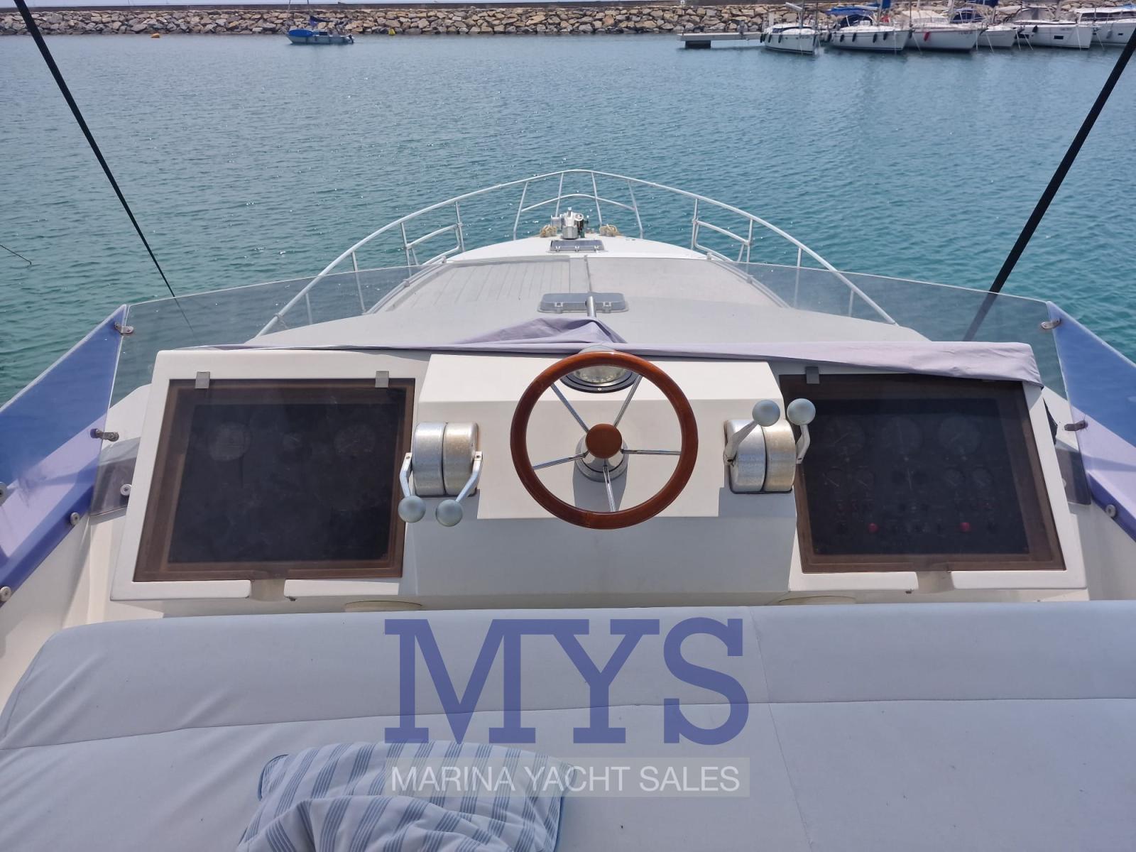 Engine Alarm, Bilge Alarm, Spare shaft, Water pressure pump, 6 Batteries, Deck Shower, Twin Steering, Hydraulic Flaps, Tender Crane, Fire Extinguishing System, Flaps Indicators, Gangway (Manuale), Platform, Automatic Bilge Pump, Manual Bilge Pump, Entry door, Teak Cockpit, Shorepower connector, Rollbar, Electric Windlass, swimming ladder, Horn, Bow Winches.