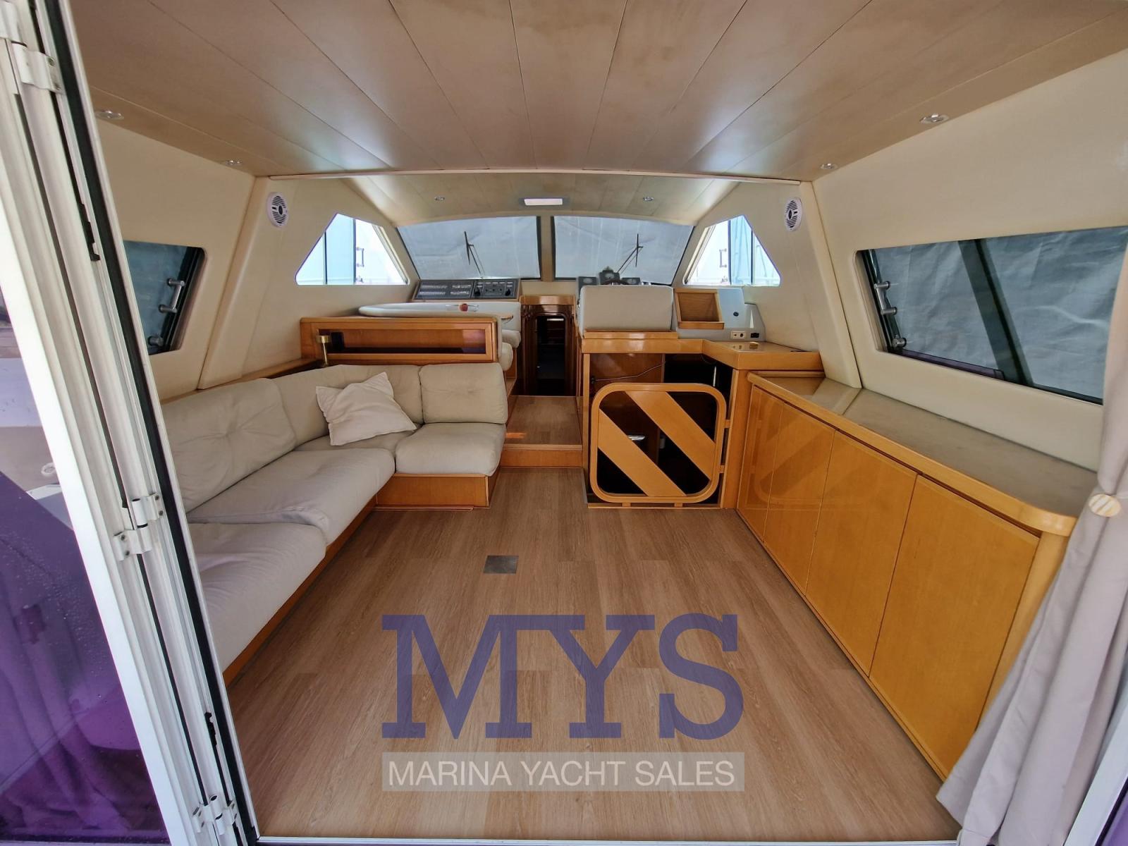 In the early nineties it was considered a state-of-the-art boat that managed to combine the ability of a classic hull with a counter bridge with a very aggressive and pleasant line, with 3 cabins and two bathrooms and a large saloon in just 14 meters
