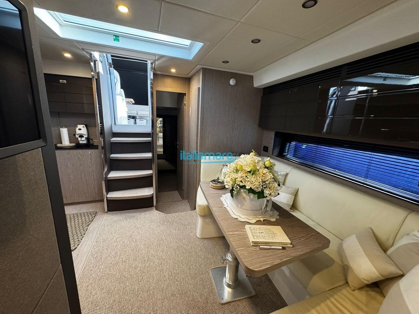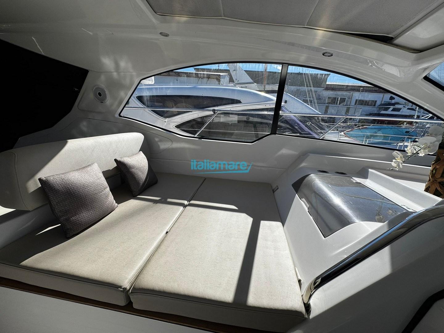 The cockpit is the heart of outdoor life: a large sunbathing area at the stern invites you to relax, while the dinette with table and seating is perfect for outdoor lunches and dinners, served by an outdoor wet bar equipped with grill, sink and refrigerator. The hardtop with a sunroof offers shelter from the sun and wind, allowing you to enjoy the outdoors in all conditions.