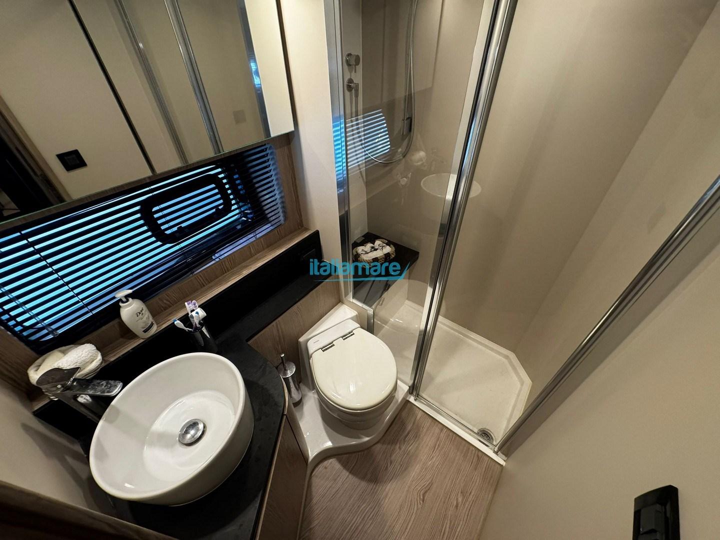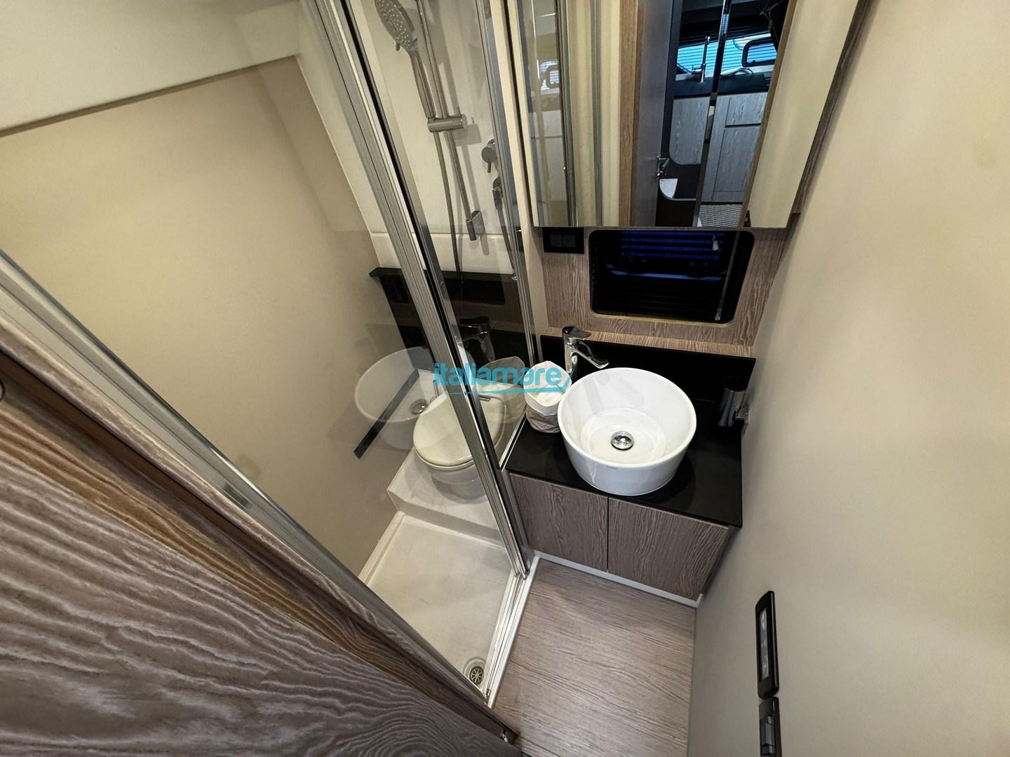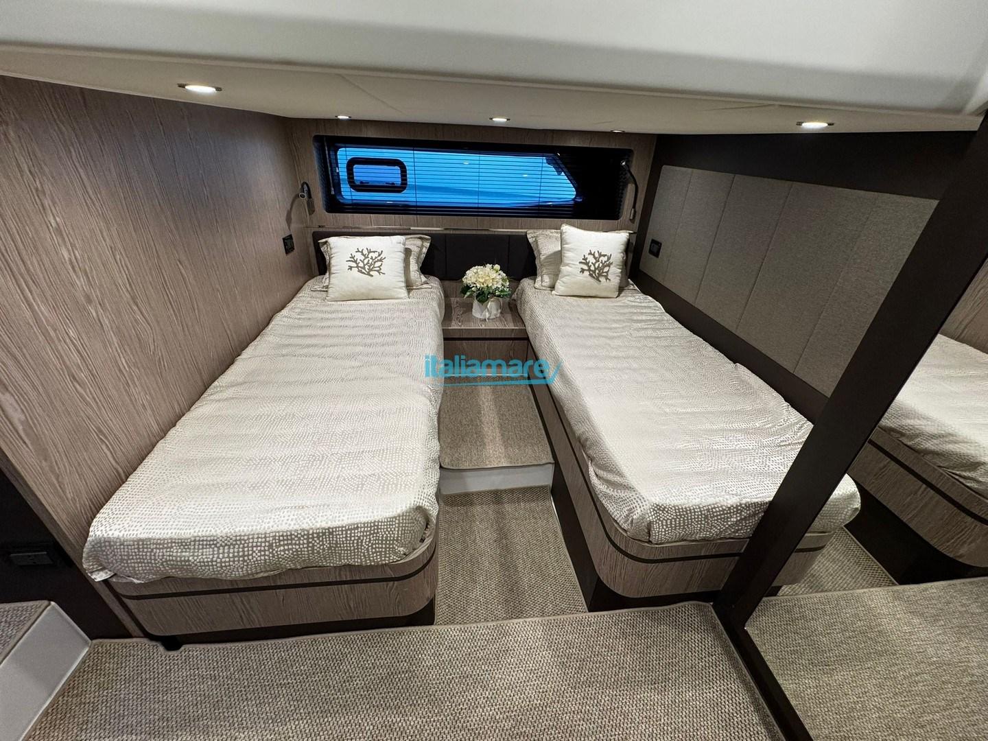 Below deck, the Atlantis 45 surprises with its bright and spacious interior, offering a level of comfort rare to find in a sporty open yacht. It has two separate cabins (a master cabin in the bow and a guest cabin amidships, often with modular beds) and two full bathrooms with separate showers. High-quality finishes, fine materials and meticulous attention to detail create a refined and welcoming atmosphere.
