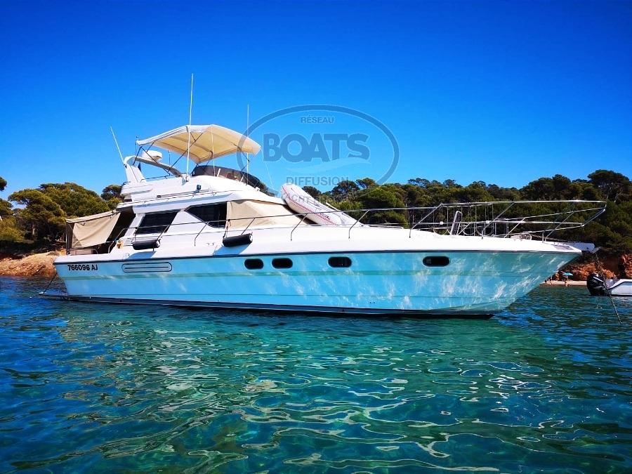 Superb PRINCESS 45 Fly, perfectly maintained. Powered by two reliable and robust Caterpillar 2x375hp which benefits from low consumption because equipped with Hydrogen Cracking The interior of the boat, all the woodwork as well as the linings are in perfect condition ... Meticulous owners, careful nothing has been left to chance .. The English Princess shipyard is renowned for its quality of construction. Three-cabin model with great habitability, it will be the ideal unit for family cruises with coastal or offshore navigation programs.