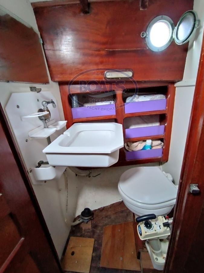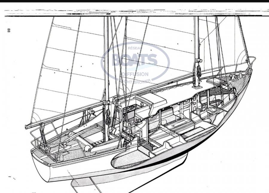 Polyester hull in very good condition, Deck redone in 2020 - Mainsail and genoa in good condition, Balconies and electric windlass not fitted but delivered with the boat. Interior layout: 6 berths, all mahogany marquetry, kitchen in the original style, upholstery from 2020, toilet cabin redone in 2020.
