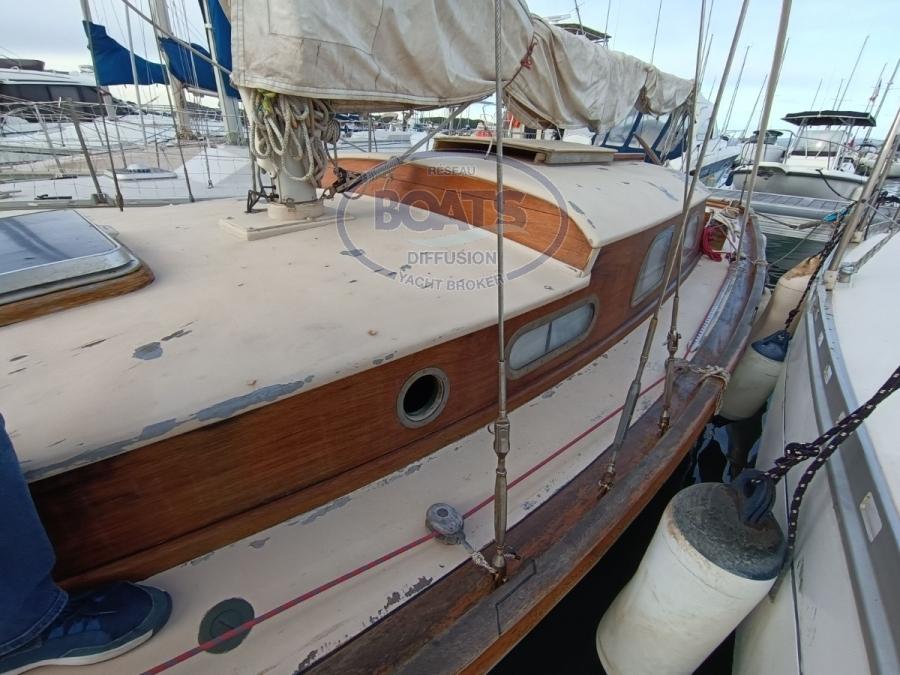Beautiful classic sailboat Chassiron CF 9 Built as a sloop with a polyester hull and its teak cockpit. The CHASSIRON CF is distinguished by the hybridization of wooden construction for the accommodation and superstructures with the advantages of polyester for the underwater works and therefore the hull. Renowned for its robustness and excellent marine qualities, a version appreciated by classic sailing enthusiasts.