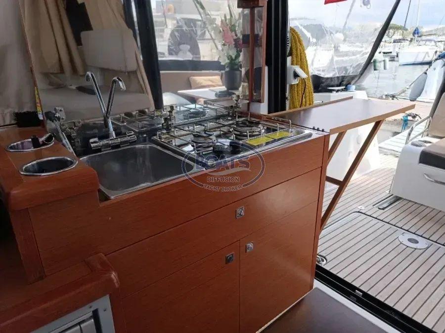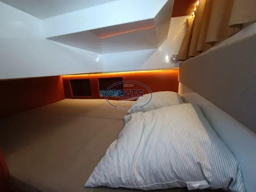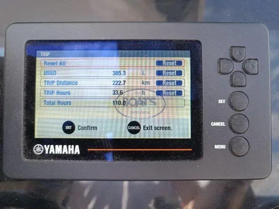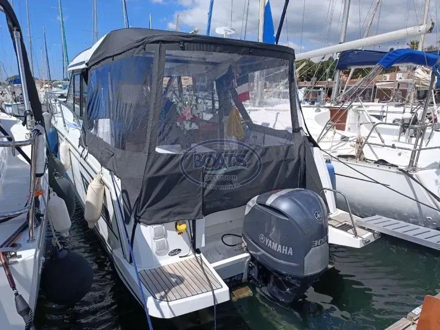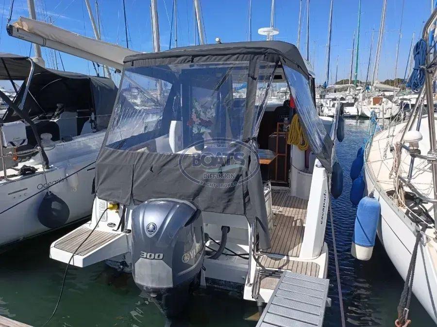 A boat for family cruising or fishing. In immaculate condition. Featuring two spacious cabins, a large saloon, and a well-equipped galley. Powered by a 300 hp Yamaha with just 110 hours. Bow/stern thrusters for easy maneuverability. Barely sailed (2 months/year), meticulously maintained. Humminbird 785c2i GPS depth sounder.