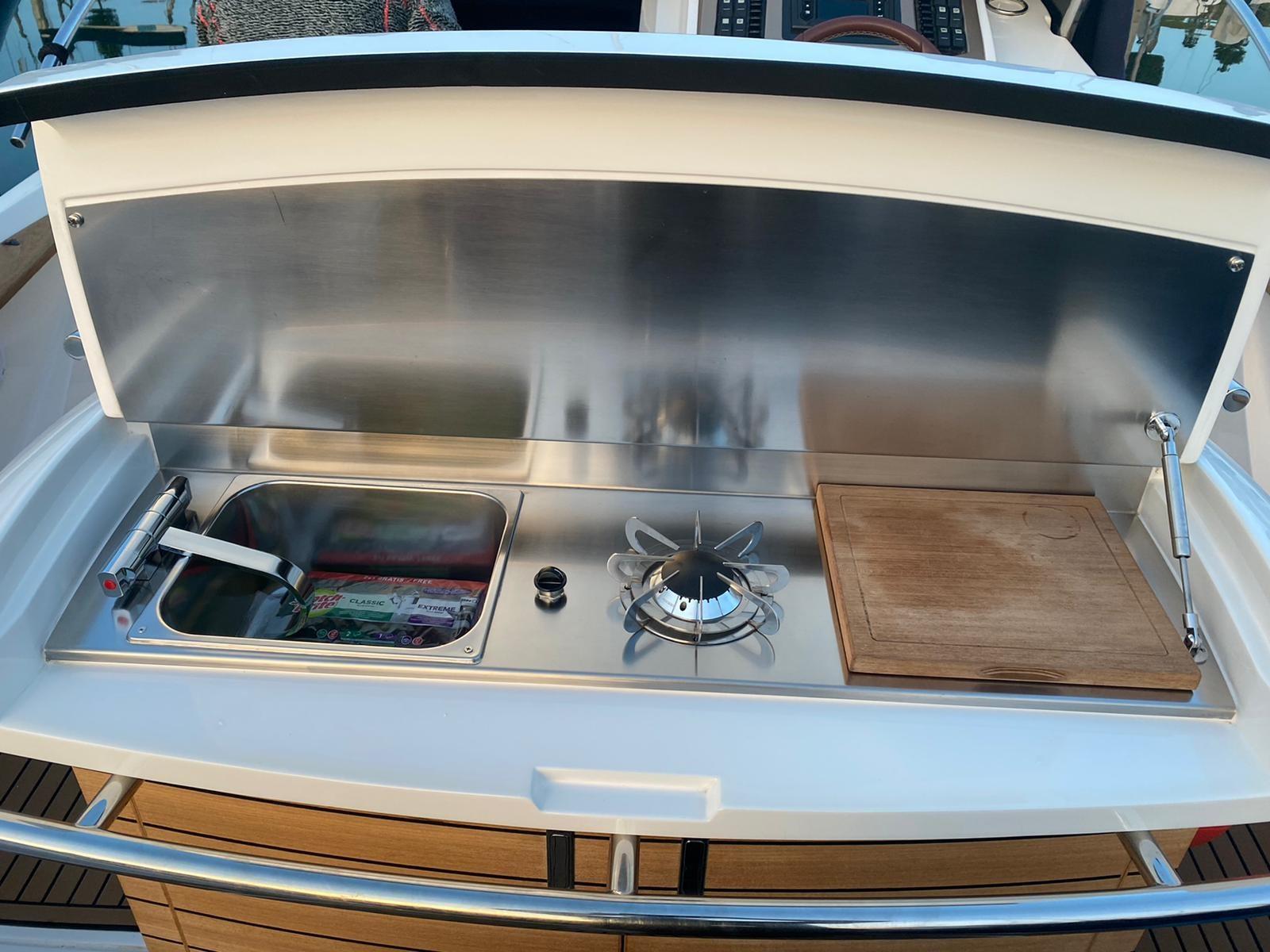 Galley, 2 Burner (in dinette e in pozzetto), Icebox (in pozzetto), Coffee Machine.