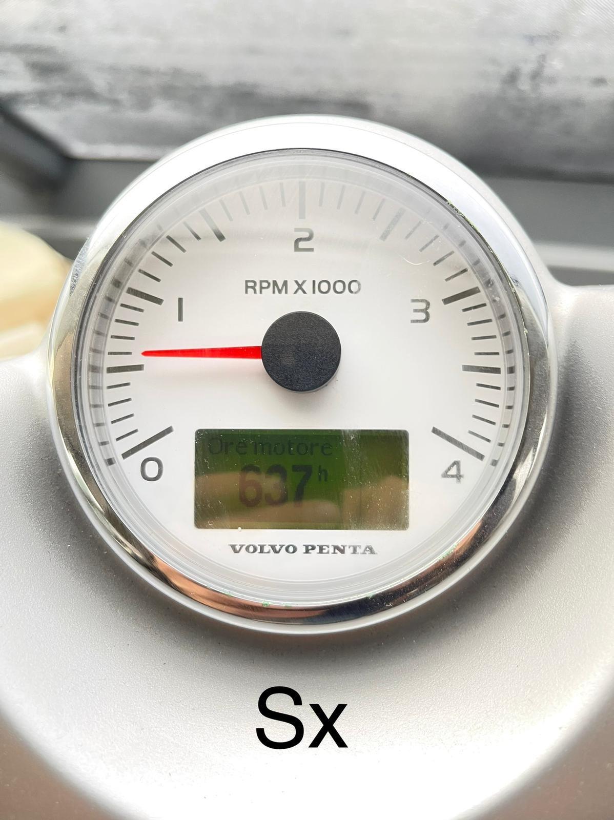 Rudder angle indicator, Radar Antenna (Raystar 125), Electronic engine control (Manette elettroniche), On-Board Computer, chronometer, Display, GPS (Raymarine Tridata ST60), Joystick, Log (Raymarine Tridata ST60), Autopilot (Raymarine ST6001 Plus), Plotter with GPS antenna (Raymarine), VHF Radio (Shipmate RS81).