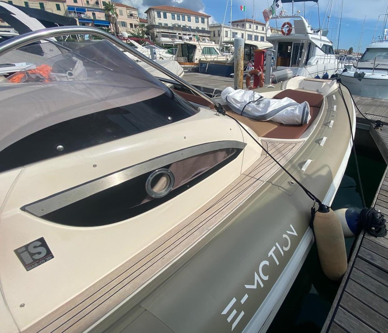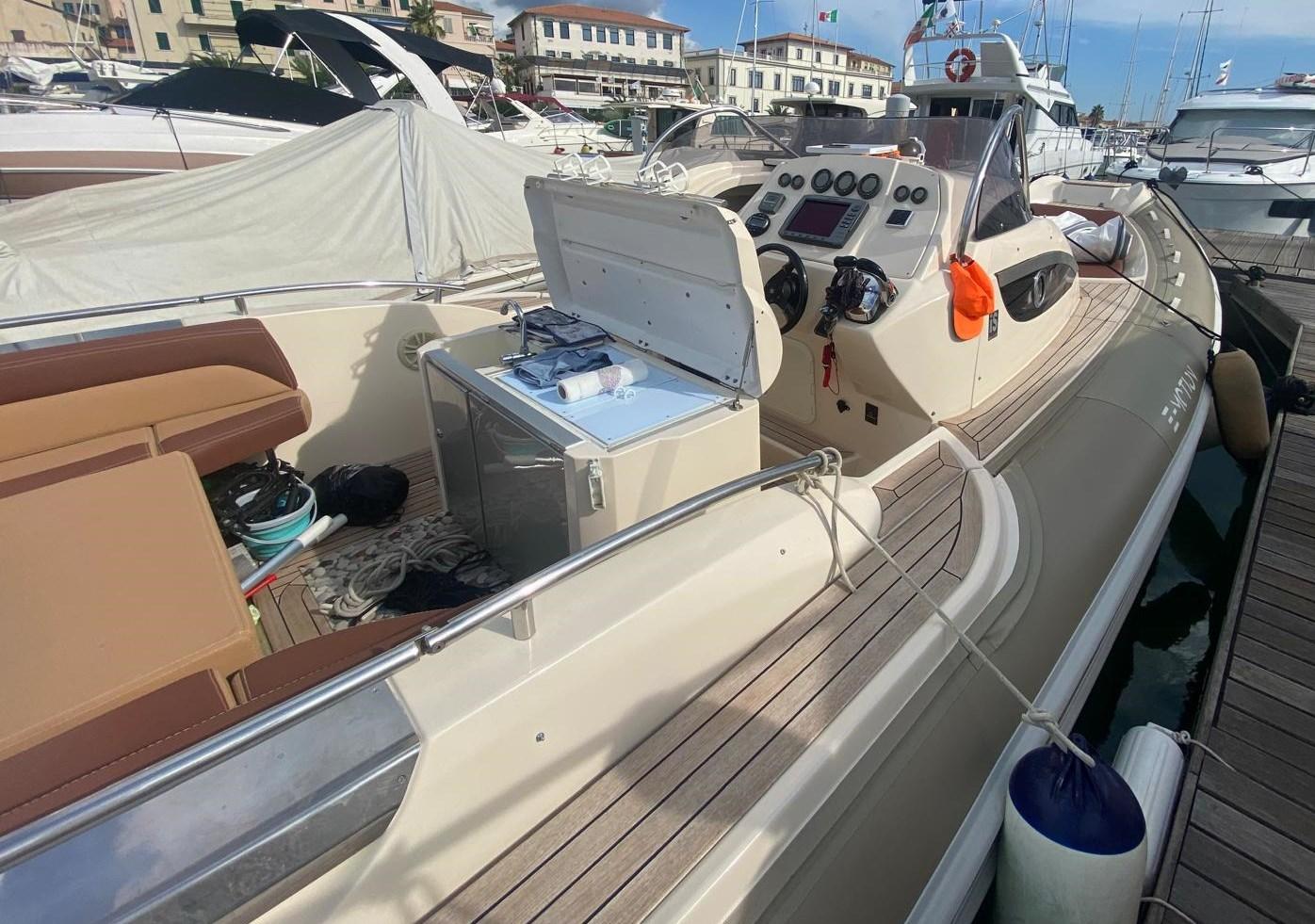 Engine Alarm, 4 Batteries (2 motori + 2 servizi), Teak Side Decks, Deck Shower, Courtesy Lights, Platform, Teak Cockpit, Shorepower connector, Rollbar (in VTR), Electric Windlass, swimming ladder, Table, Horn.