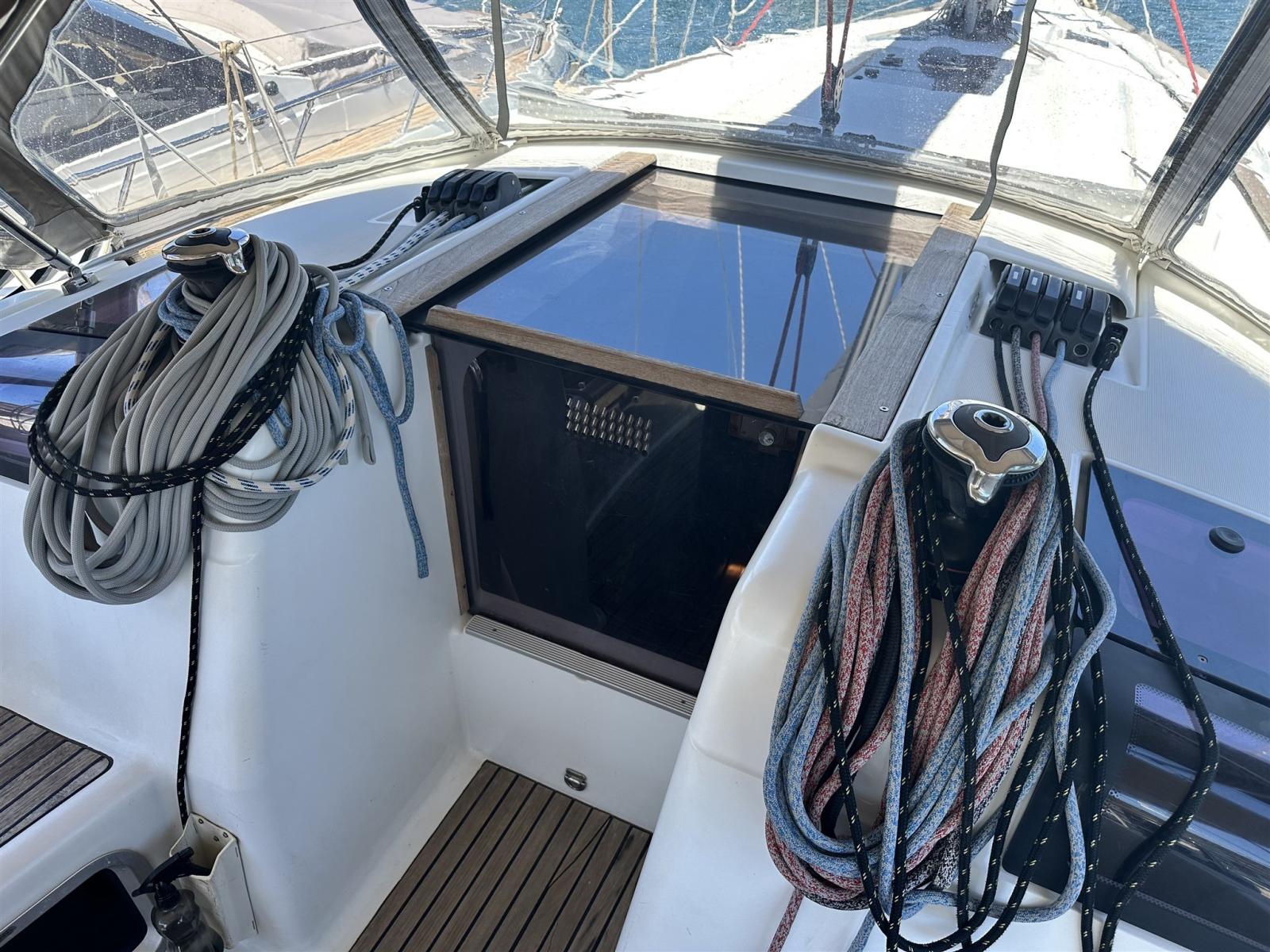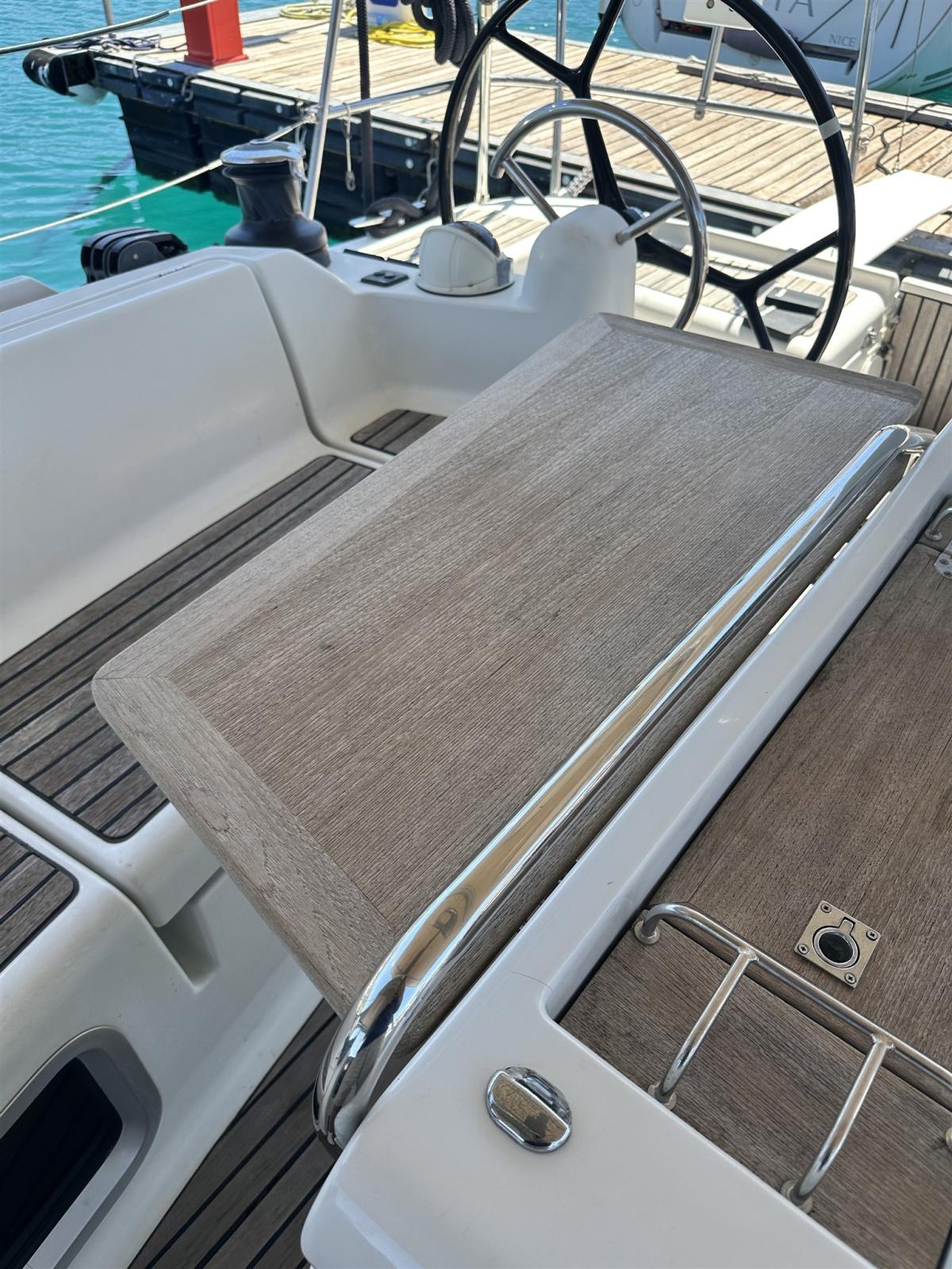 Large cockpit with double wheelhouse. Integrated cockpit table with icebox. Oversized winches for maneuvers in a small crew. Folding aft platform. Wide and comfortable walkways