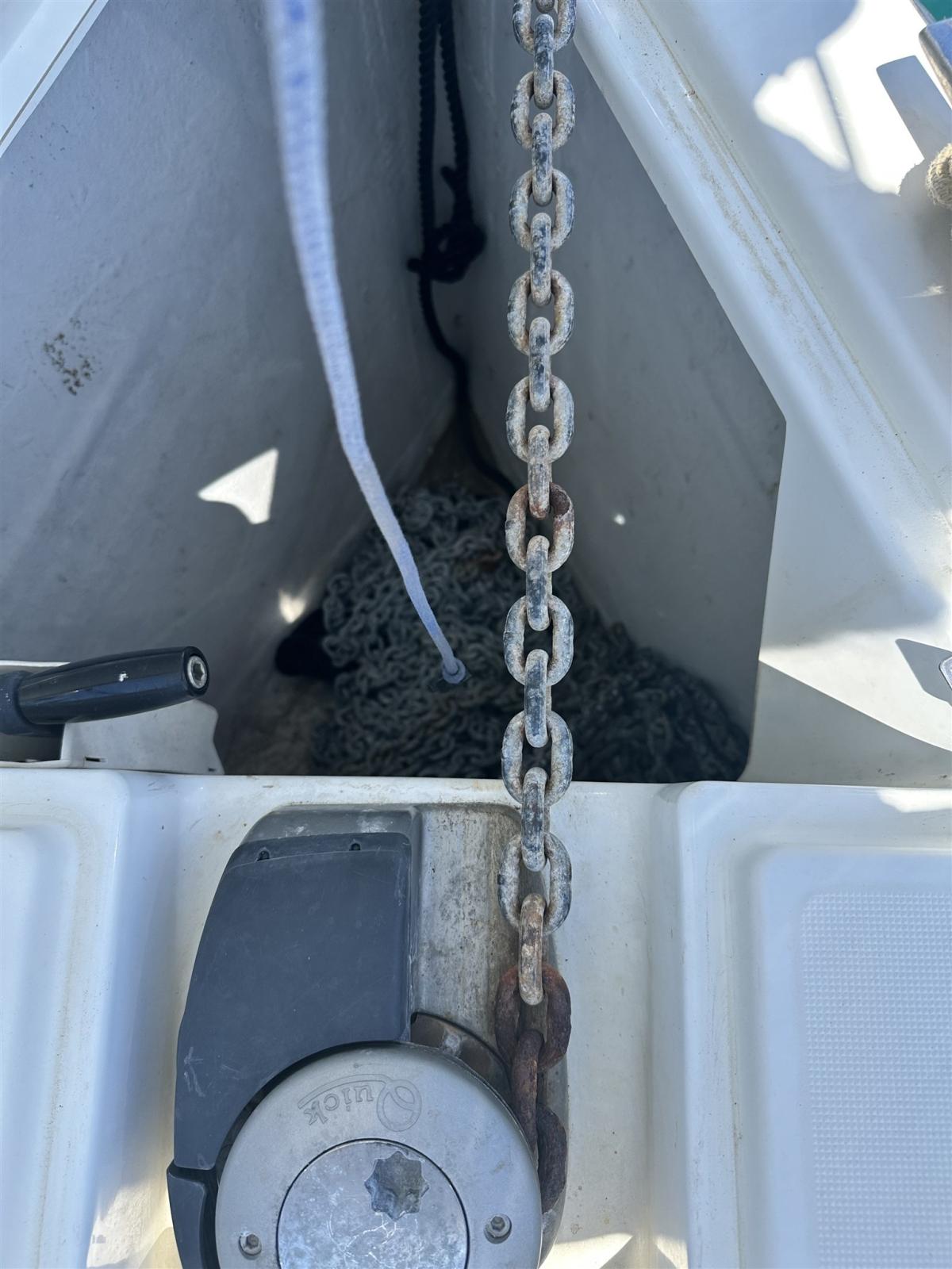 Engine Alarm, Anchor (Delta 50m catena 10mm), Water pressure pump, 6 Batteries, Battery charger (Cristec 12 40A), Deck Shower (caldo freddo), Bow Thruster (Max Power in tunnel), Auxiliary Engine, Solar panels (SOLBIAN da istallare), Gangway (Carboway), Platform (A poppa basculante), Manual Bilge Pump, Teak Cockpit, Shorepower connector, Electric Windlass (Quick 1000w), Strand rigging (Dyform), swimming ladder, Outboard Engine Support Bracket, cockpit table, Tender, 3 Winch (2 St 50 e 1 ST 44 Lewmar), Winch Electric (St 44 Lewmar), Windex.