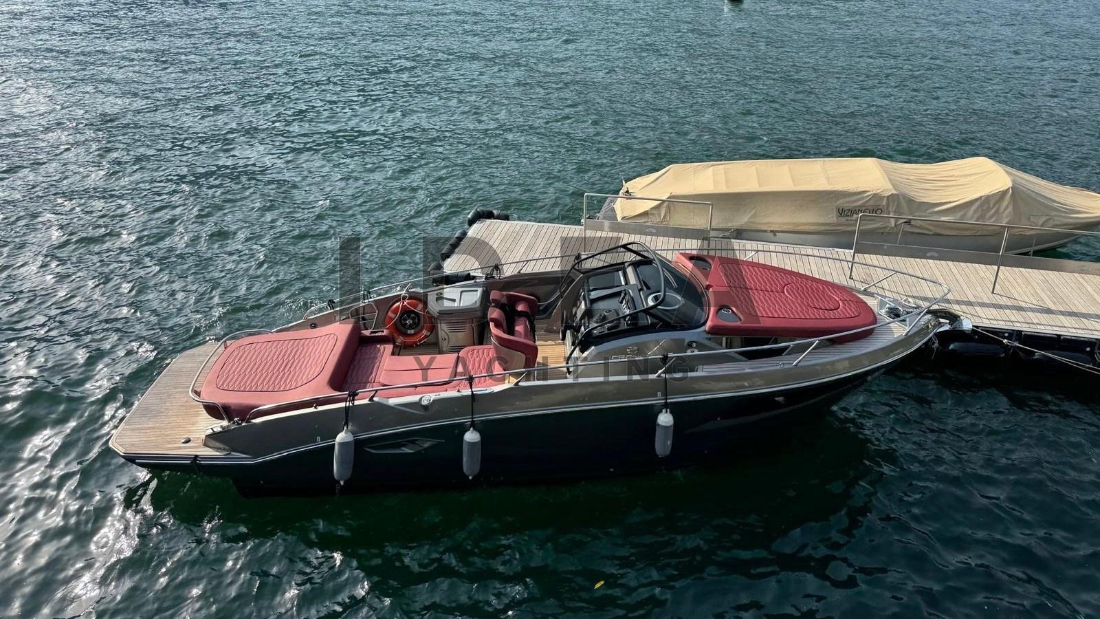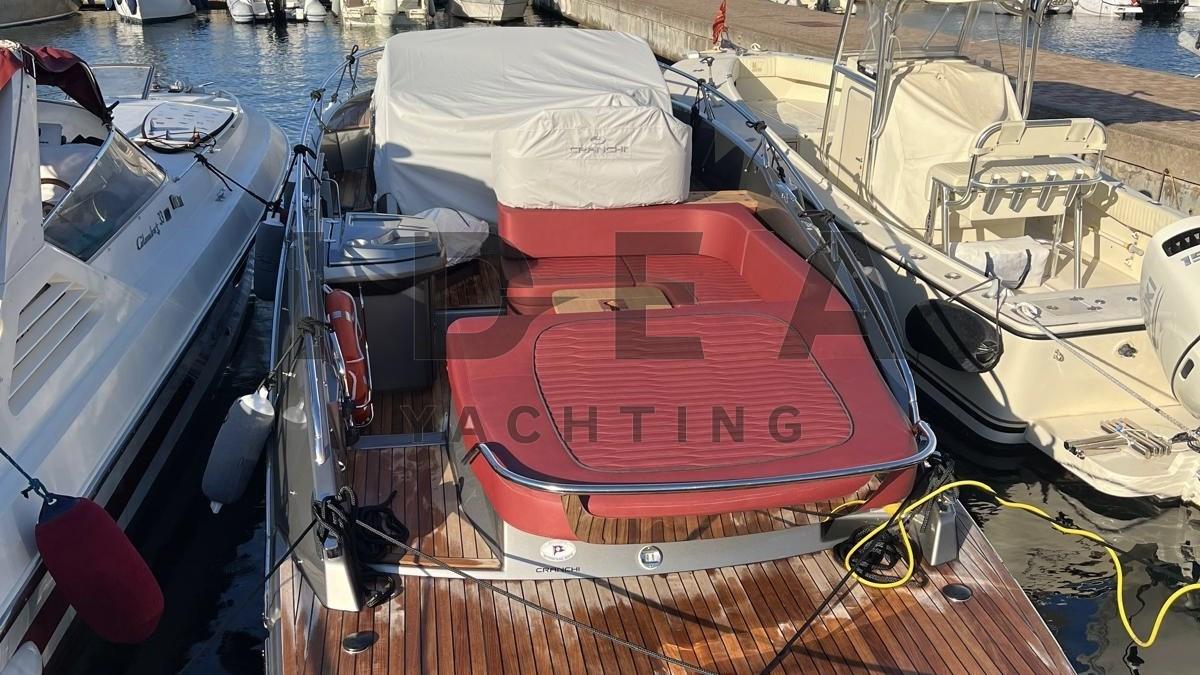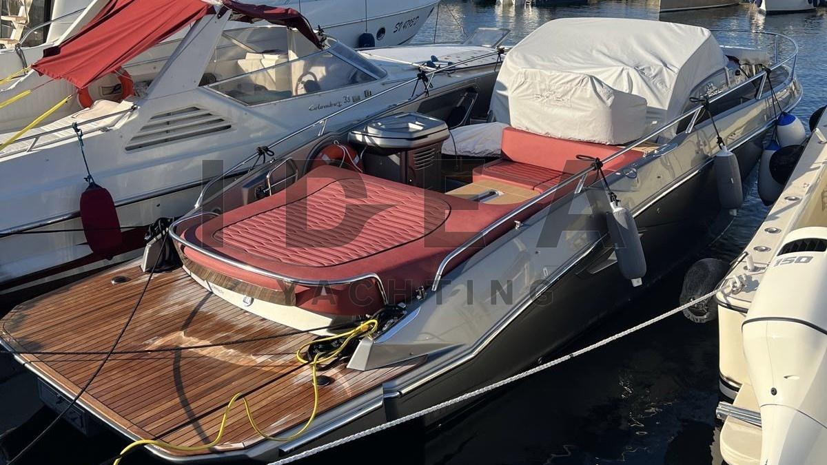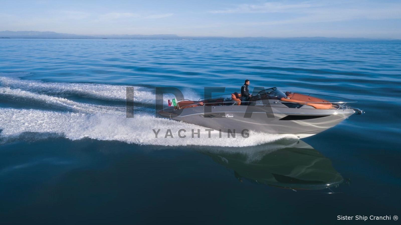 The 9.85-metre daycruiser features soft lines and refined details with a sporty, vintage style that enhances both functionality and elegance. The height of the indoor areas, the level of comfort, and the extremely elegant décor choices make this yacht ideal for cruises of a day or longer. The spaces are bright and airy thanks to six light points and the plexiglass door.