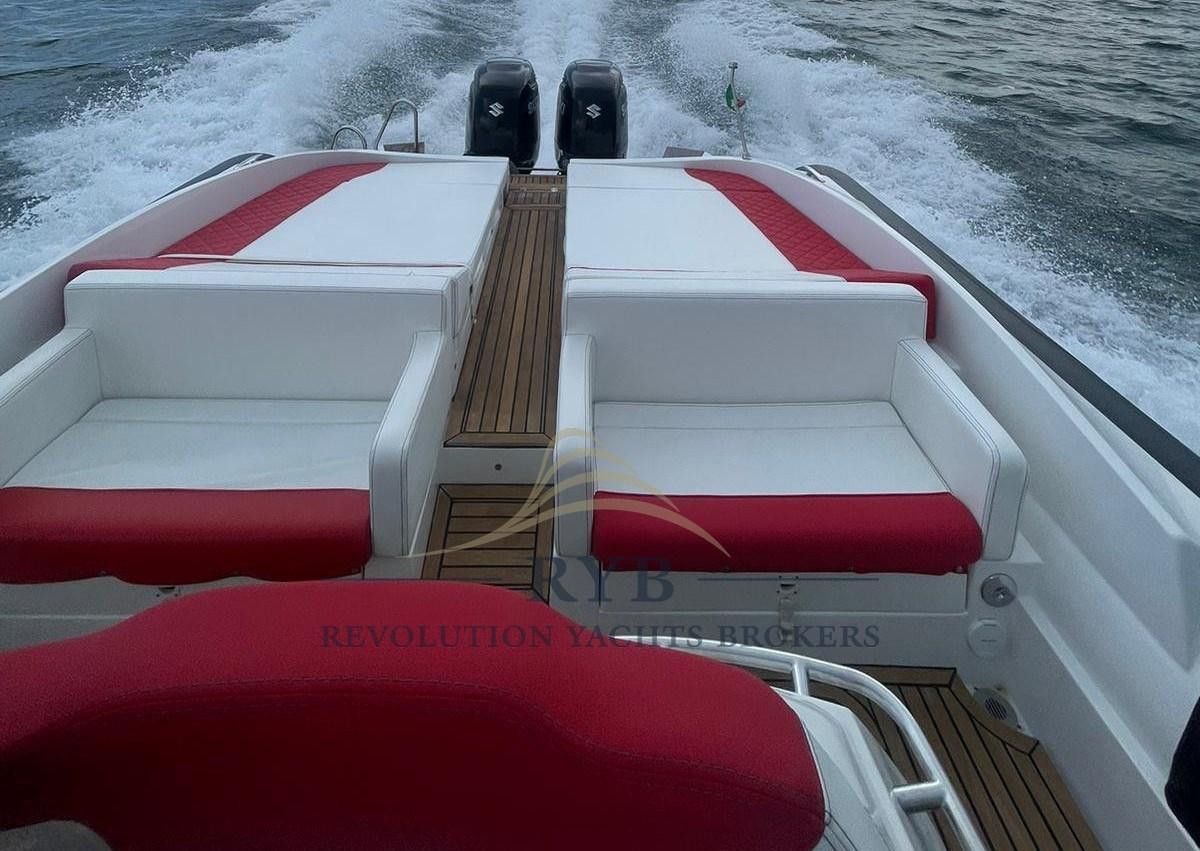 Teak Side Decks, Deck Shower (PRUA E POPPA), Washbasin in the cockpit, Courtesy Lights, Platform (TEAK), Teak Cockpit, Shorepower connector, Electric Windlass.