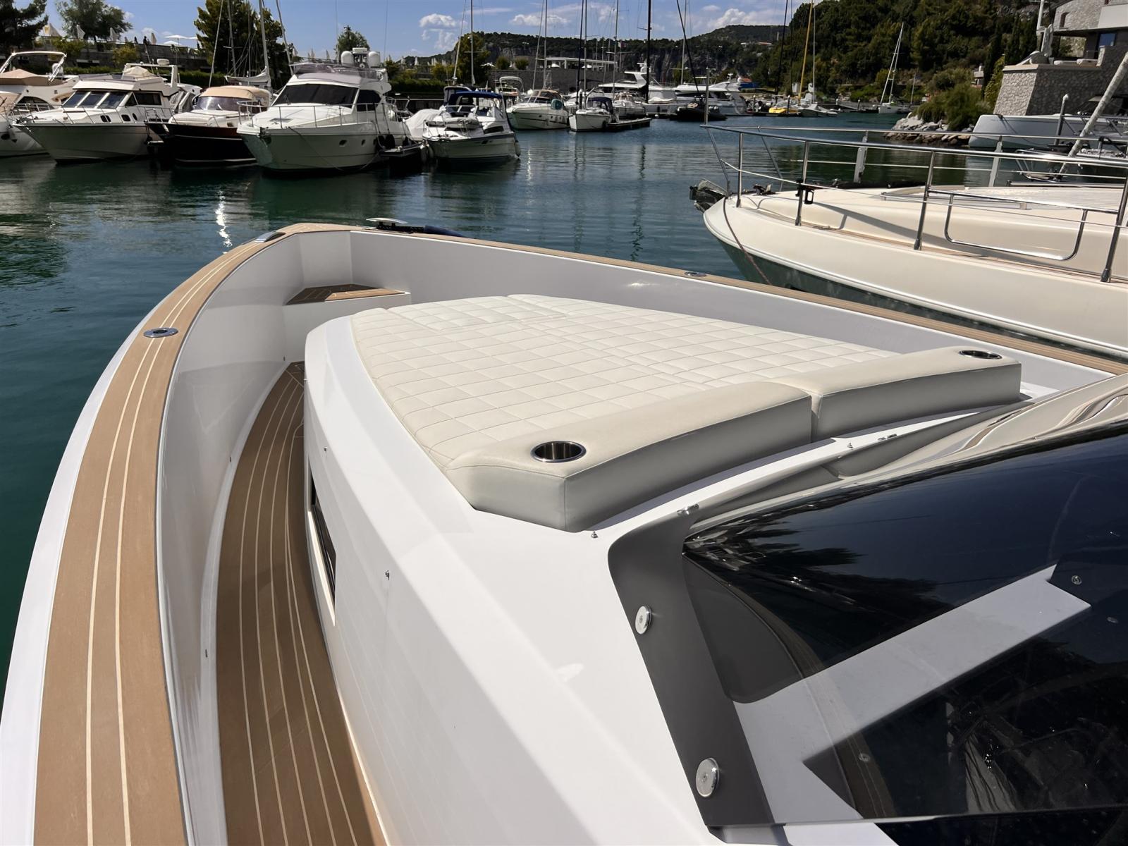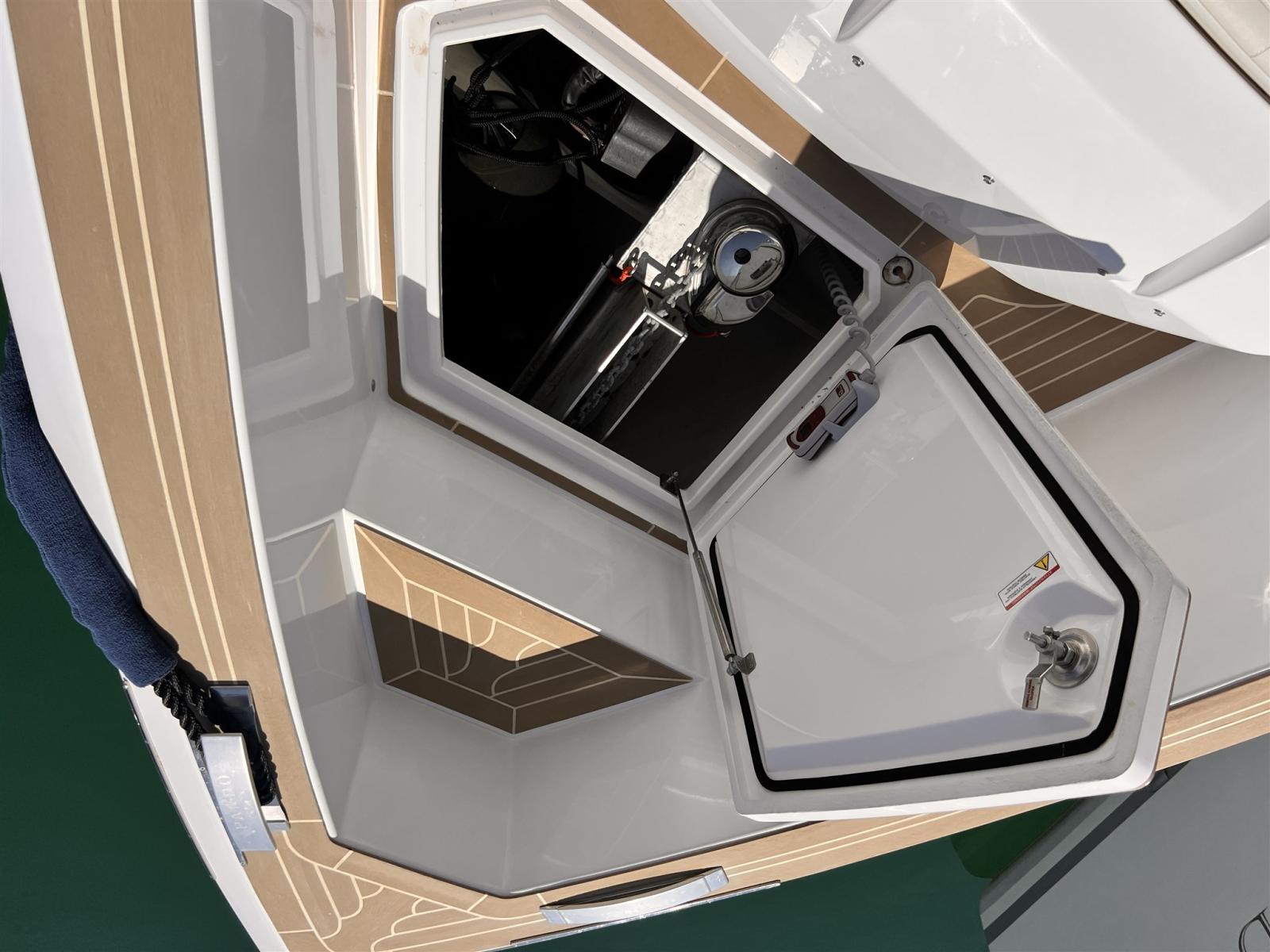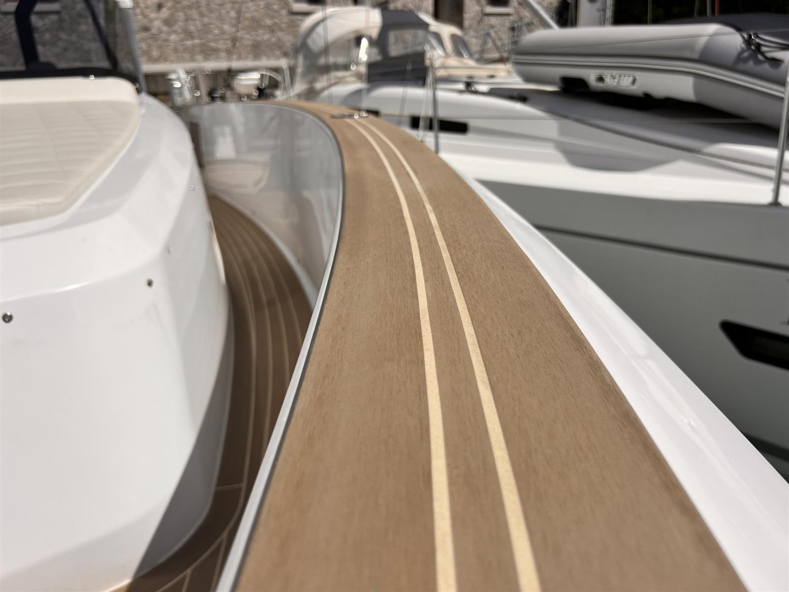 Engine Alarm, Bilge Alarm, Anchor (13KG, 50 M CHAIN 8MM), Auto Dynamic Trim Interceptor, Water pressure pump, 2 Batteries (2X90Ah), Teak Side Decks, Deck Shower, Washbasin in the cockpit, Courtesy Lights, Platform, Teak deck (Flexiteak), Teak Cockpit (Flexitwak), Shorepower connector, Electric Windlass (Trefoil anchor electric system), swimming ladder, cockpit table.