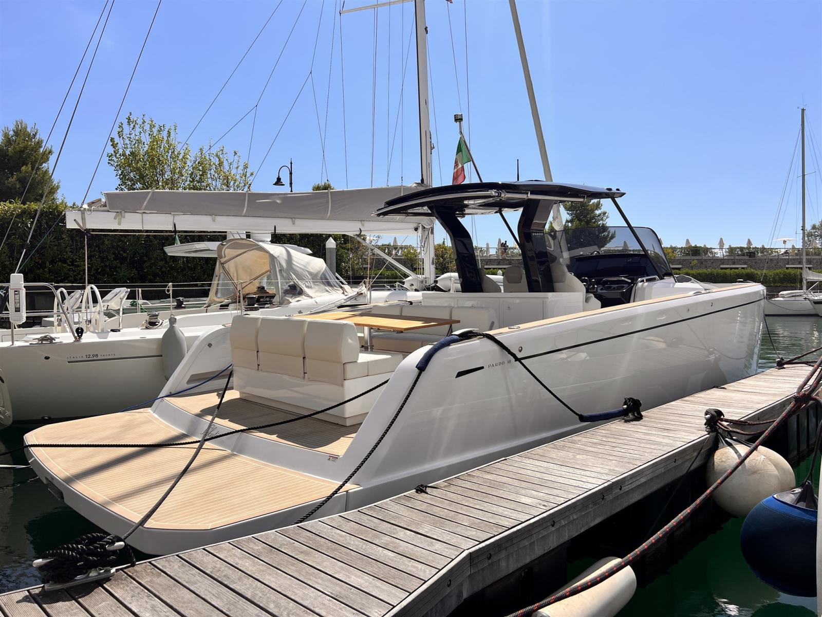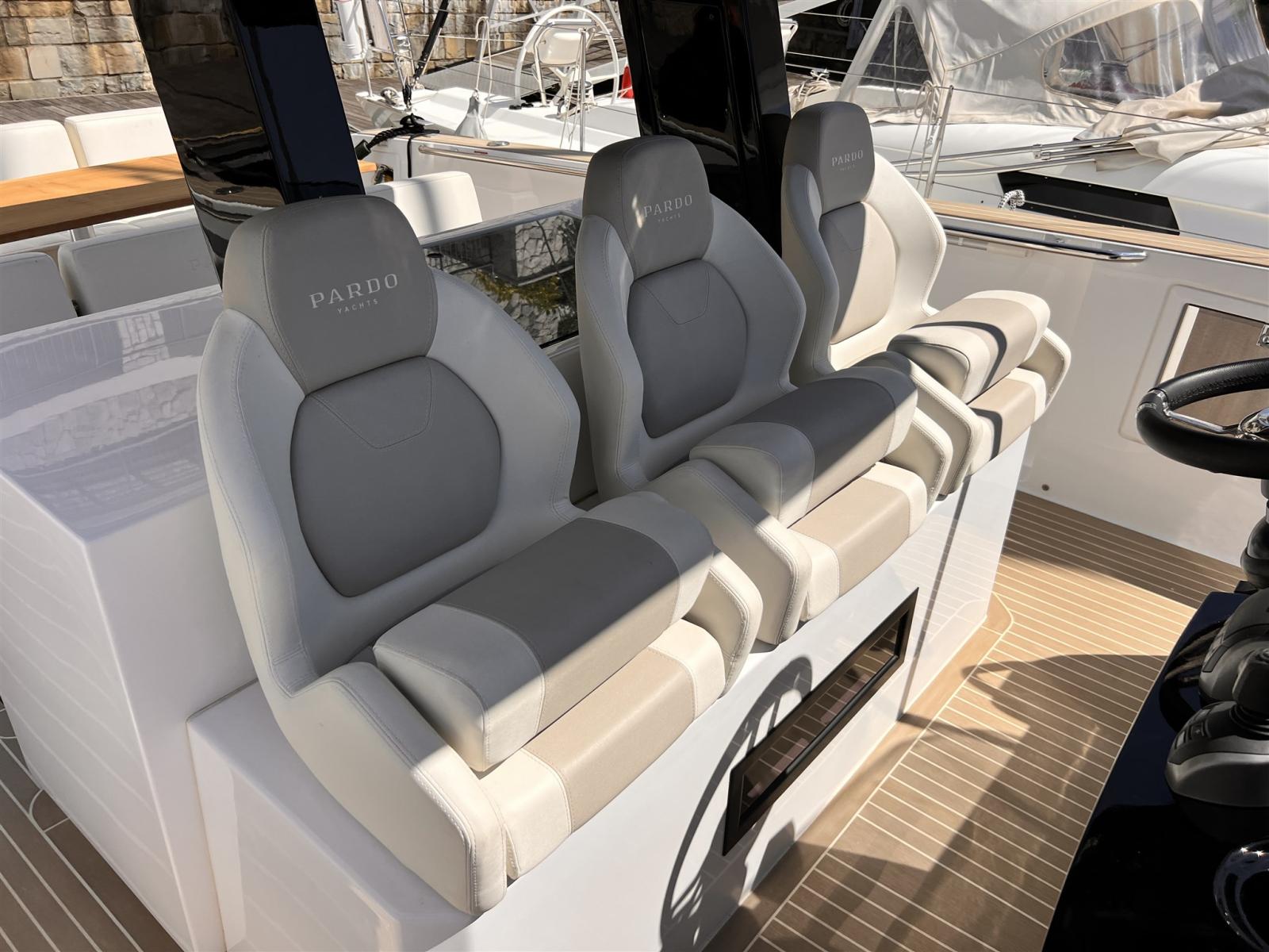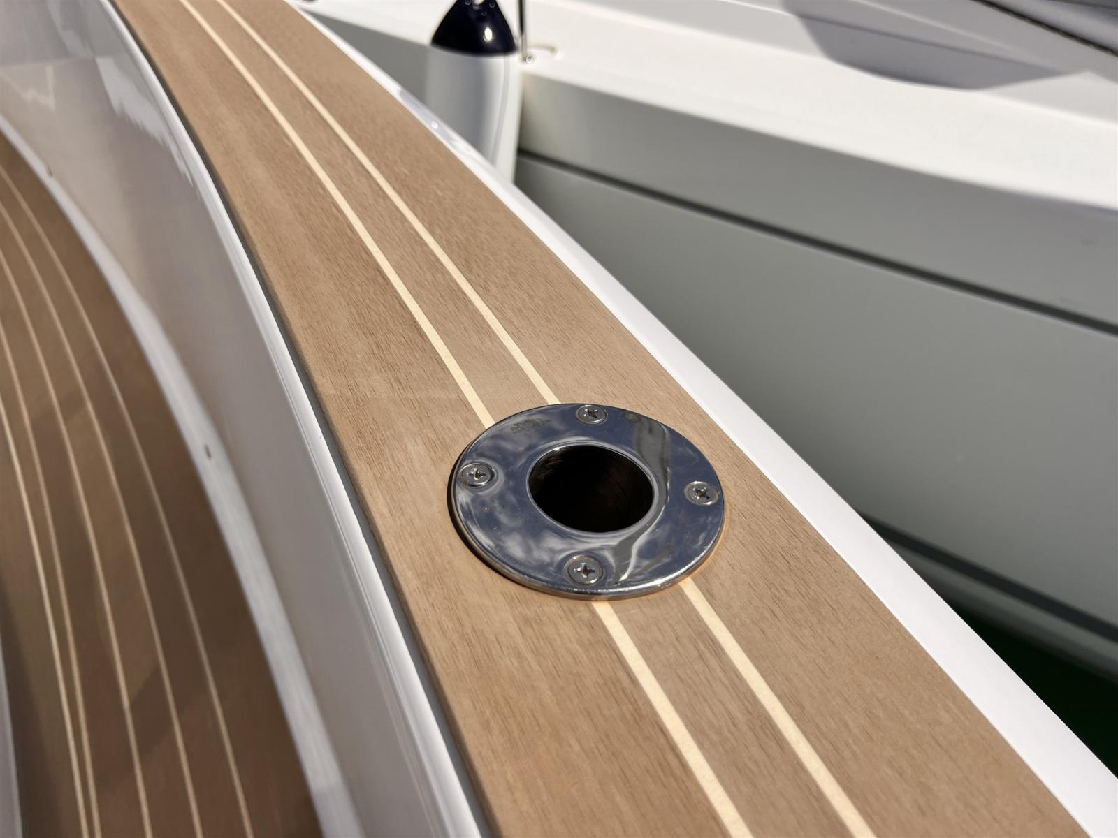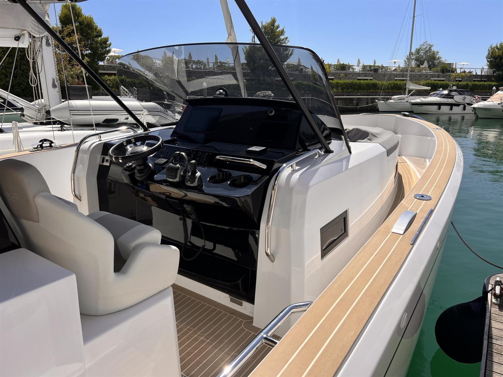 Engine Alarm, Bilge Alarm, Anchor (13KG, 50 M CHAIN 8MM), Auto Dynamic Trim Interceptor, Water pressure pump, 2 Batteries (2X90Ah), Teak Side Decks, Deck Shower, Washbasin in the cockpit, Courtesy Lights, Platform, Teak deck (Flexiteak), Teak Cockpit (Flexitwak), Shorepower connector, Electric Windlass (Trefoil anchor electric system), swimming ladder, cockpit table.