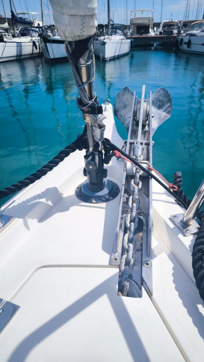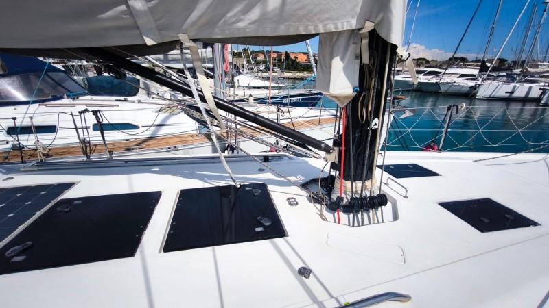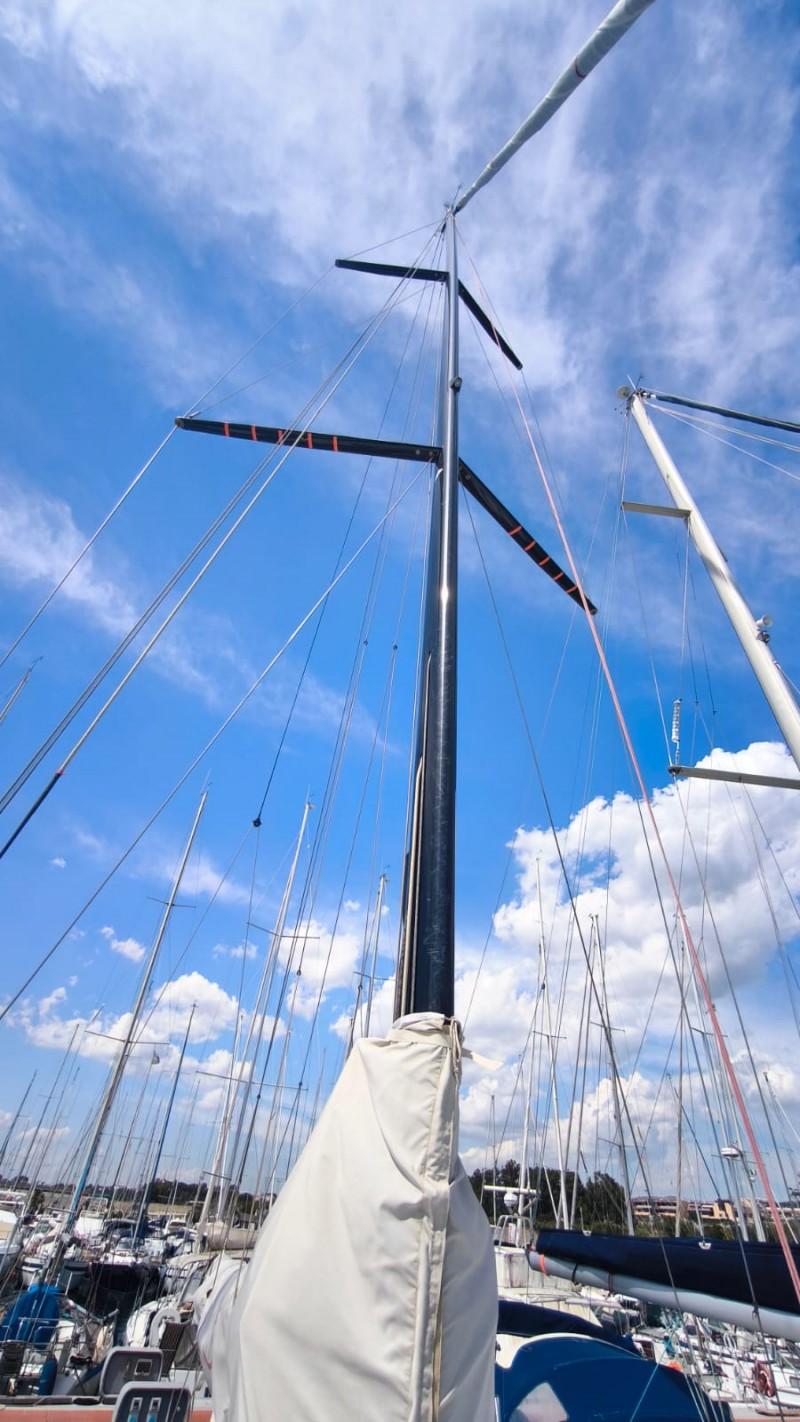 The SOLARIS 42 has been well-maintained. In 2025, it received a new 12" B&G GPS with chartplotter, a new sprayhood, new lazy bag, new Tecma electric toilet, freshly painted hatches, and a complete oak interior restoration. In 2020, she underwent a general refit including: replacement of the mast, boom, and rudder with carbon fiber components; new rod rigging; new textile backstay and forestay.