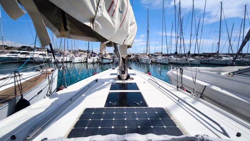 Additionally, the SOLARIS 42 is very well equipped with: oversized 60 HP engine, folding three-blade thruster + retractable bow thruster; carbon mast, boom, rudder, and bowsprit; full-batten mainsail with split track and Harken cars; recessed mainsheet traveler and German-style mainsheet system with oversized winches including 1 electric winch (main halyard); below-deck Jiber furling system by Ubi Maior; Harken hydraulic backstay; B&G electronics with chartplotter, 3 mast-mounted jumbo displays, 3 displays on the deckhouse, and 1 in the Owner’s cabin; satellite antenna; AIS transmitter and receiver; internal router capable of amplifying SIM c - Check the full brochure, the video and the sea trial on our Web site MEDIA SHIP
