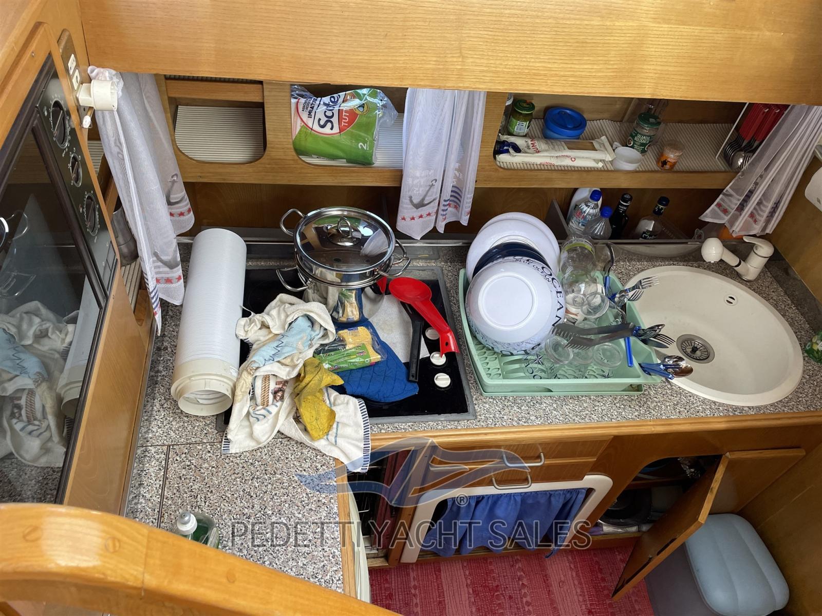 Water pressure pump, Deck Shower, Twin Steering, Gangway, Platform, Manual Bilge Pump, Teak deck, Teak Cockpit, Shorepower connector, Electric Windlass, swimming ladder, cockpit table, Living Room Foldable Table, Stern Winches.