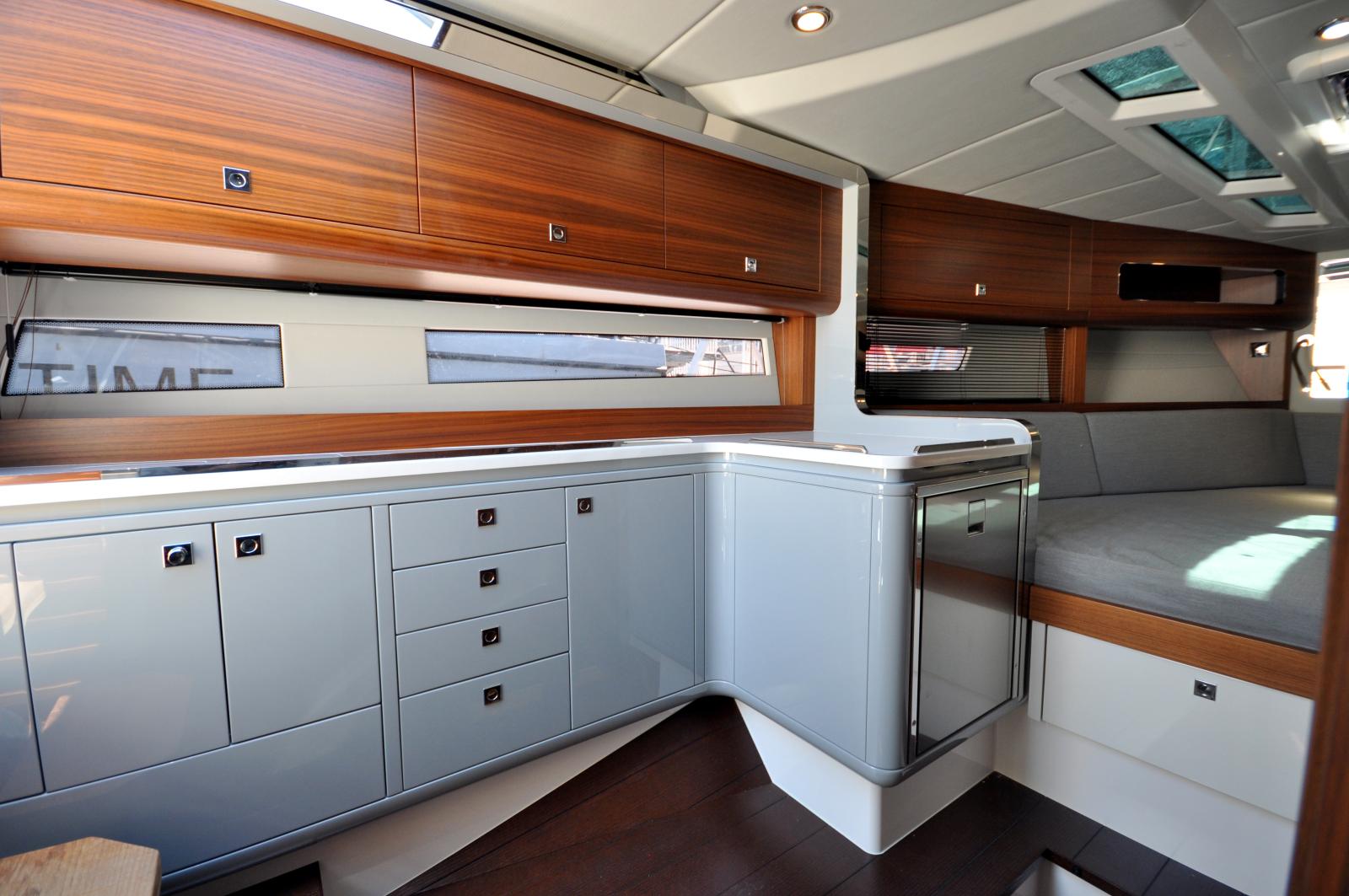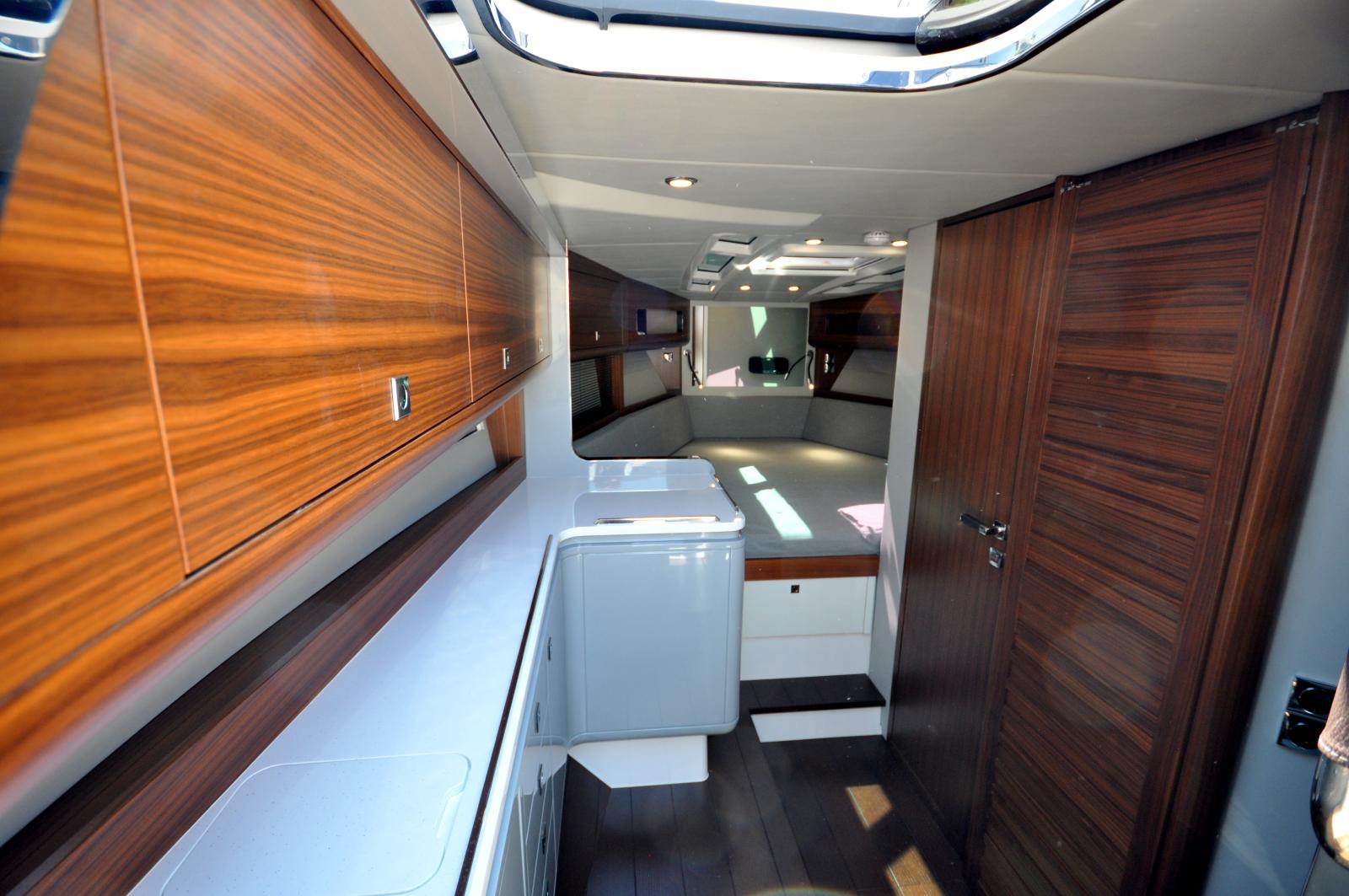 Outside, this luxury day cruiser offers a spacious and elegant deck layout, perfect for enjoying the finest days at sea. Inside, you will find generous volumes and refined finishes, delivering superior comfort for both day trips and extended cruising.