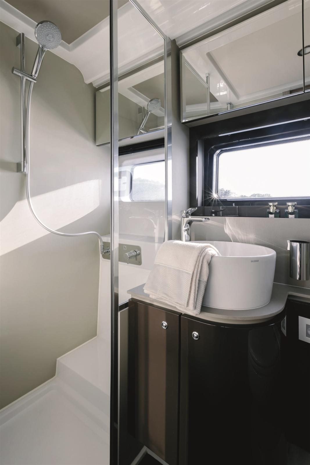 Air Conditioning (60.000 BTU), Warm Water System (bivalente), Safe (in cabina armatore), Inverter Air Conditioning, Waste Water Plant, 12V Outlets, 220V Outlets, Black Water Tank, 2 Electric Toilet (con Tecma bidet).