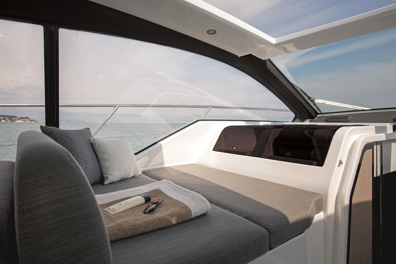 Azimut Advance Package - Removable cockpit chairs - Stern mooring cleats - Cockpit cabinet painted Urals Grey - External upholstery in Batyline, light grey -