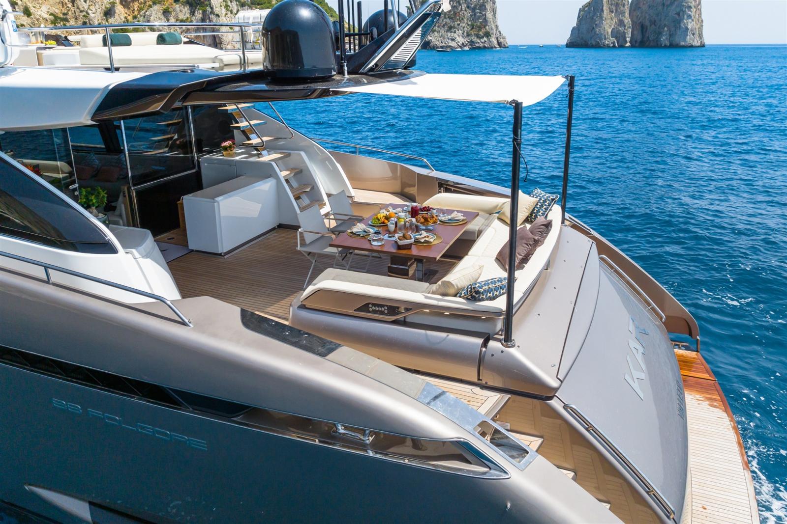 Satellite TV antenna (KVH TV6 TV SAT), Satellite Decoder, TV Ready (Sistema Sofabaton), Hi-Fi (Sonance - Premium Sound per esterni con altoparlanti HQ e AirPlay automatico/indipendente su prua, pozzetto e flybridge).