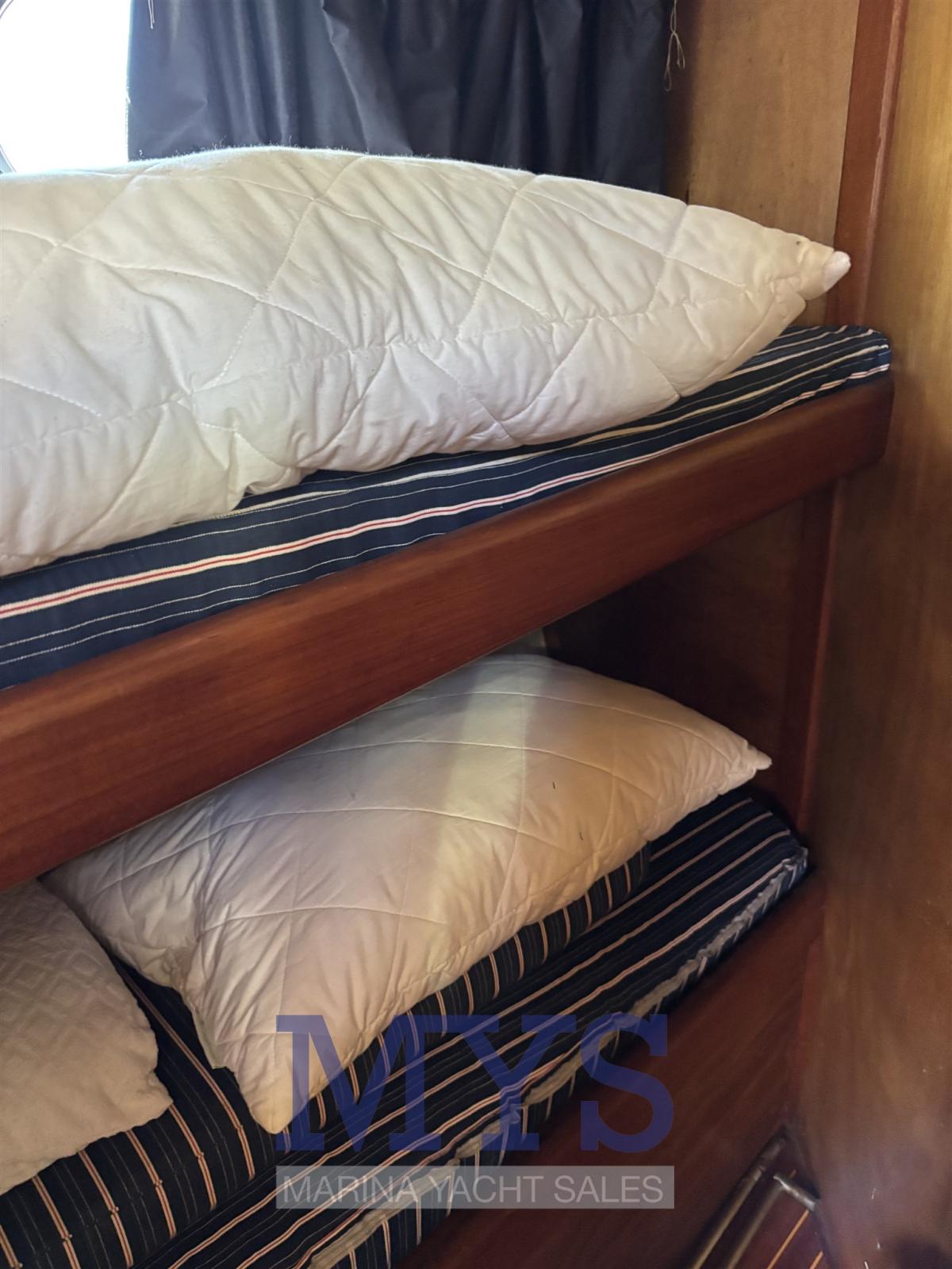 Engine Alarm, Alternator, Water pressure pump, Deck Shower, Directional Spotlight, Hydraulic Flaps, Crane, Gangway, Platform, Automatic Bilge Pump, Entry door, Teak Cockpit, Shorepower connector, Electric Windlass, swimming ladder, Living Room Foldable Table, Horn.