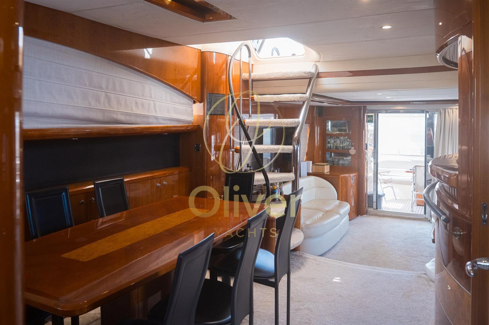 The interior of the Princess 82 offers a perfect balance between timeless elegance and modern functionality. Completely refitted in 2022, they have a refined atmosphere thanks to the use of quality materials such as Alcantara fabric on the ceilings and walls, new leather on the seats and finishes with attention to the smallest details.