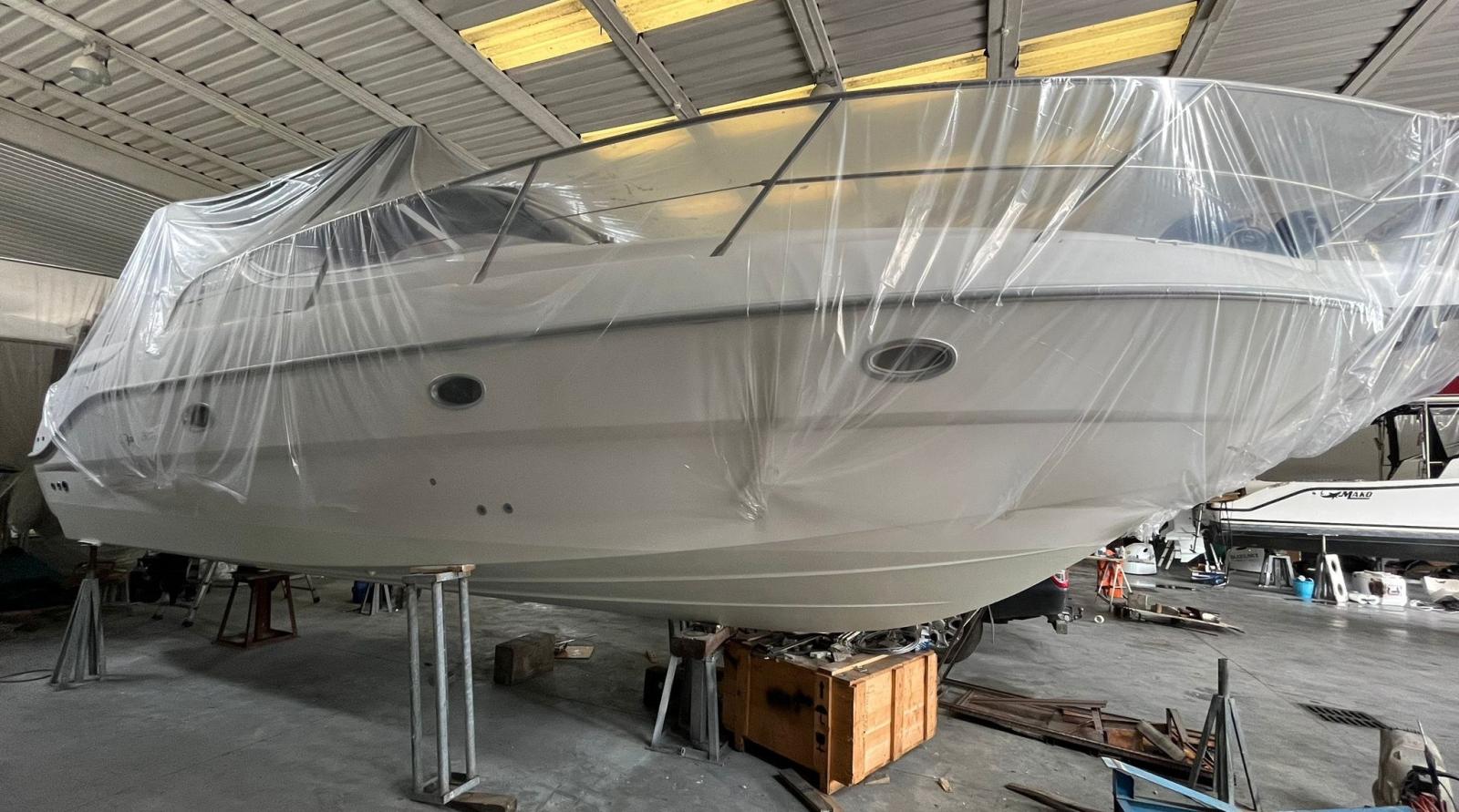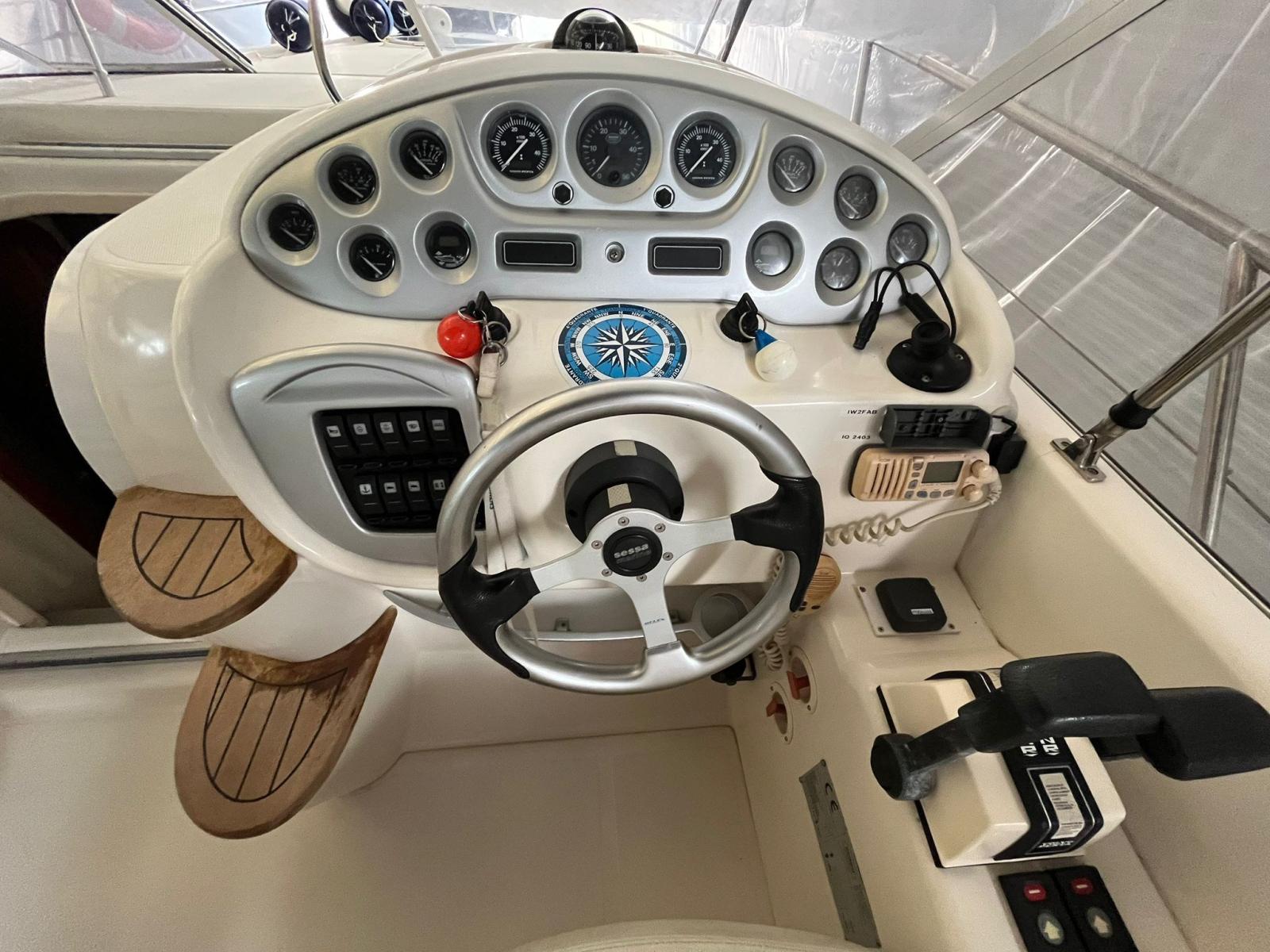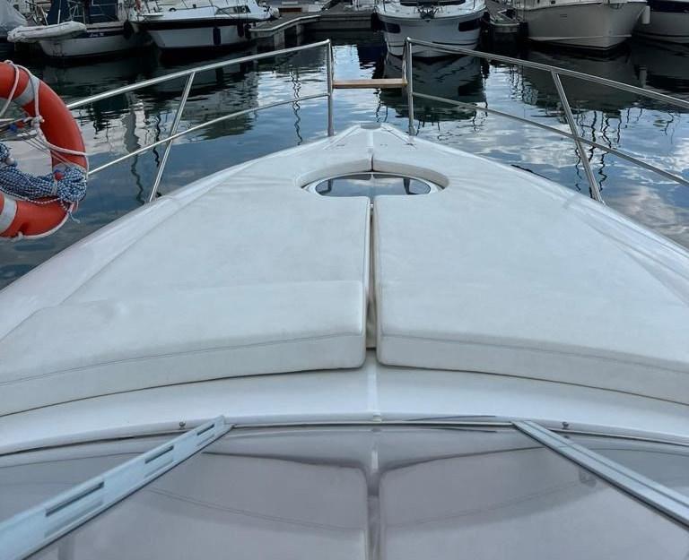 gangway cover, new turbines 2023, anti-vegative 2025, engine service to be carried out, provision for external cockpit fridge, cushions in excellent condition, semi-new awnings, flexyteak in the aft swim platform.