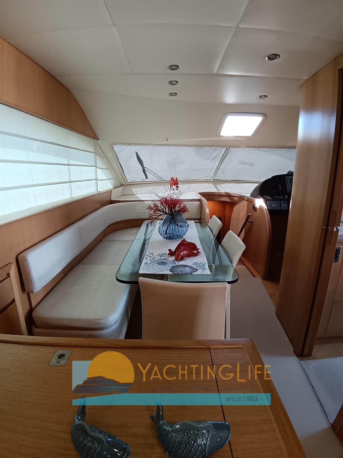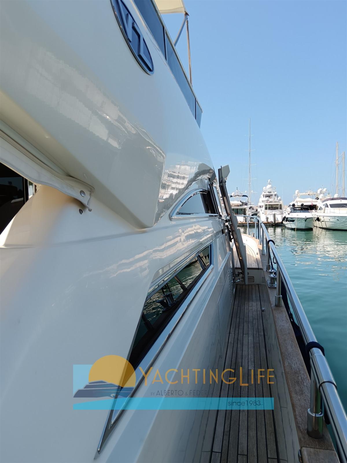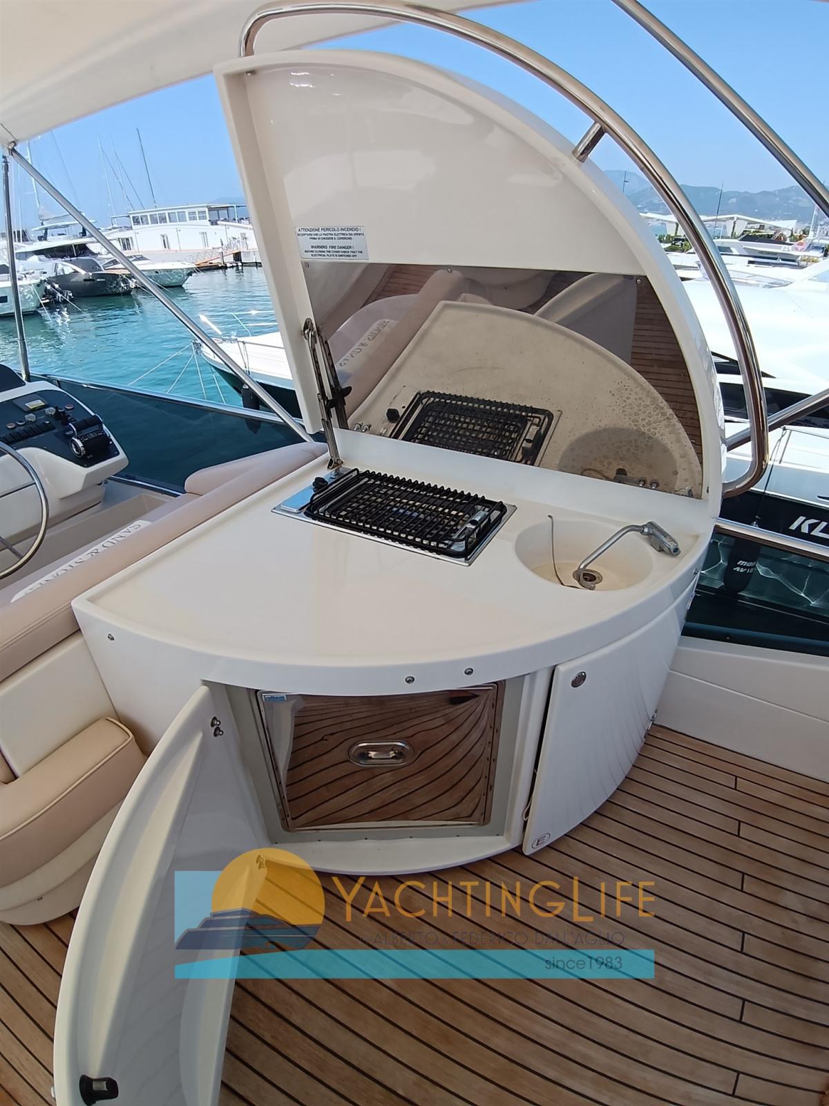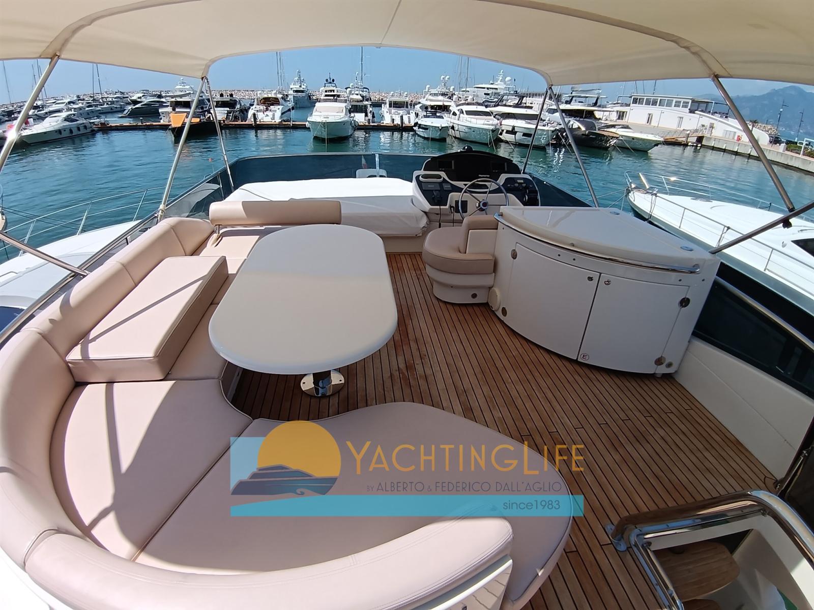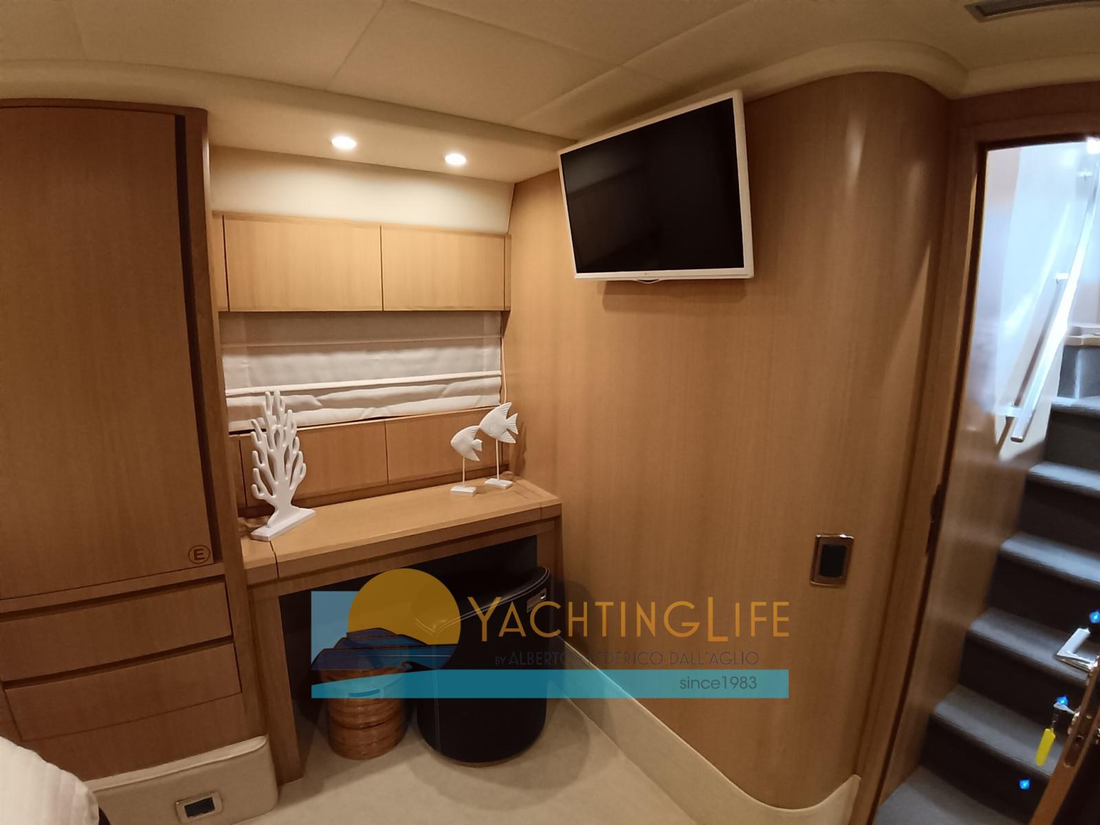 Engine Alarm, Bilge Alarm, Water pressure pump, Teak Side Decks, 2 Battery charger, Deck Shower, Twin Steering, Hydraulic Flaps, Fire Extinguishing System, Flaps Indicators, Courtesy Lights, Gangway (idraulica), Platform, Automatic Bilge Pump, Entry door, Side door, Teak Cockpit, Shorepower connector, Voltage Rectifier, Electric Windlass, swimming ladder, Saddles for tender, cockpit table, Tender (e motore), Horn, 2 Stern Winches.