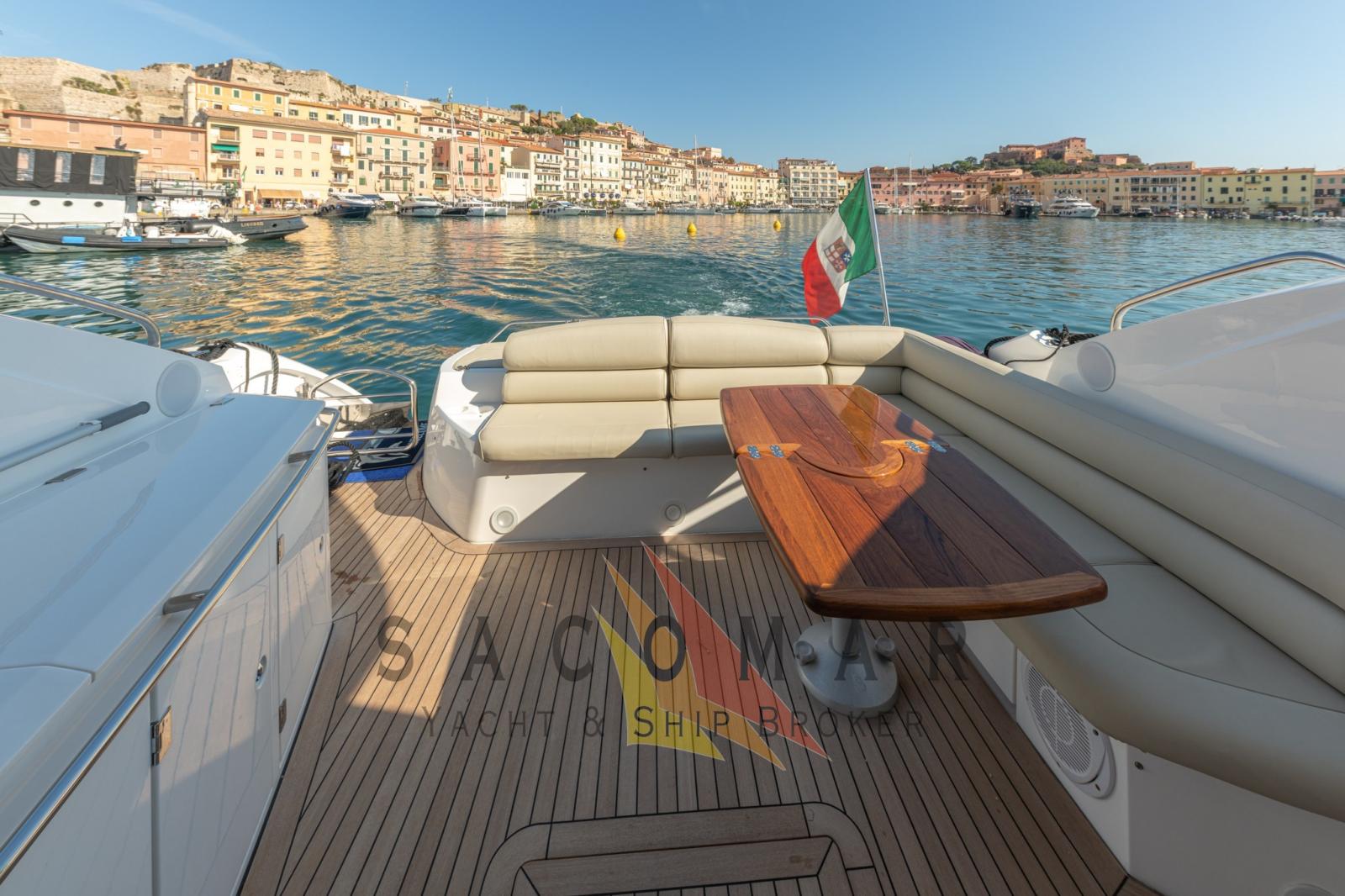 Teak Side Decks, Hydraulic Flaps, Hard top, Courtesy Lights, Underwater lights, Gangway, Platform, Teak Cockpit, Shorepower connector, Electric Windlass, cockpit table, 2 Stern Winches.