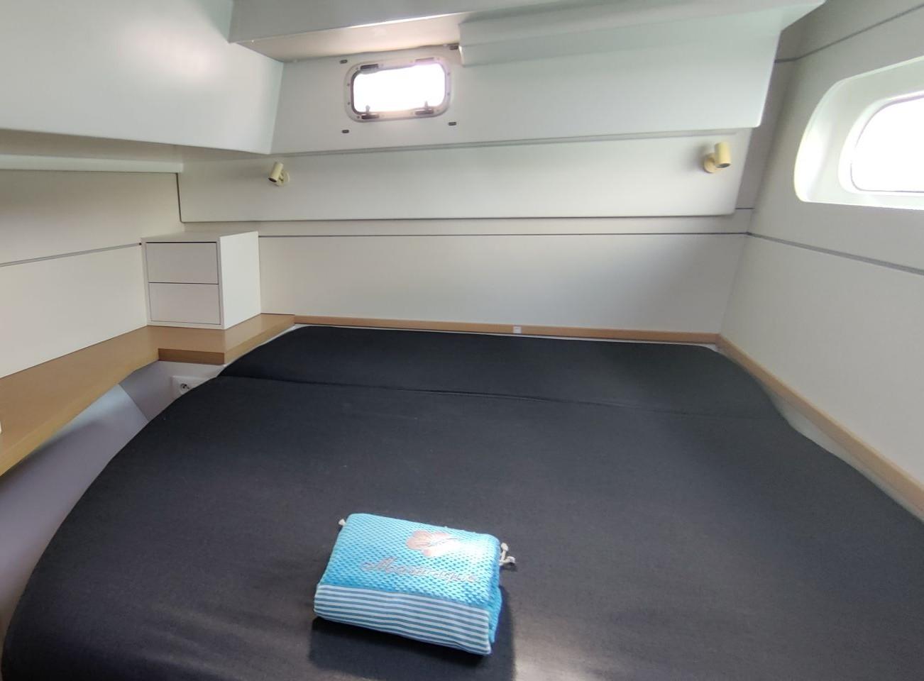 One forward double cabin with wardrobe, boot under bunk and storage