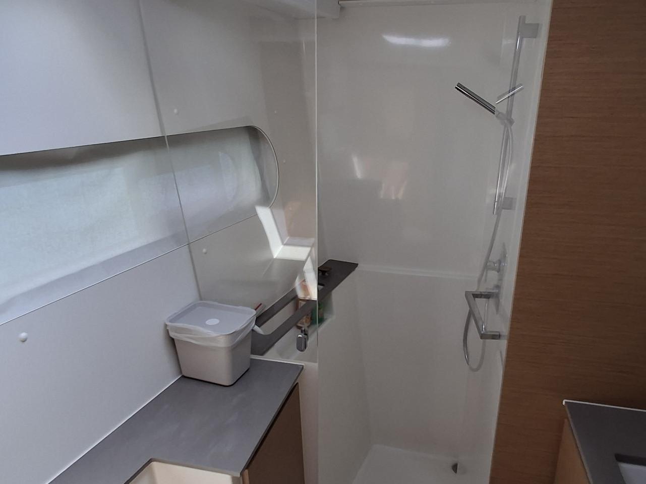One central shower room with one washbasin with Corian worktop, electric toilet with and separate shower