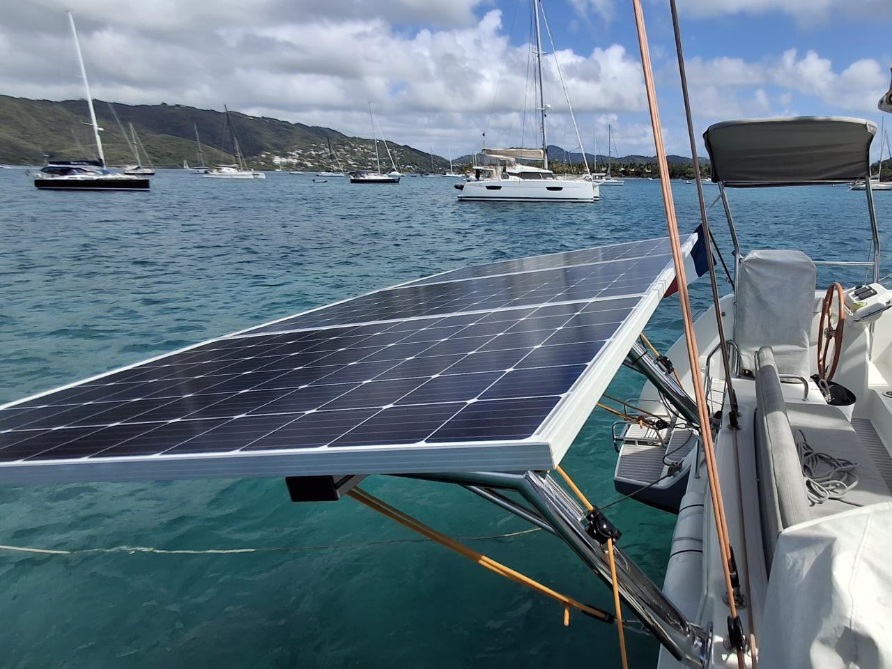 Three Victron 3X305w solar panels, Victron 150/60 MPTT controller removable on davit