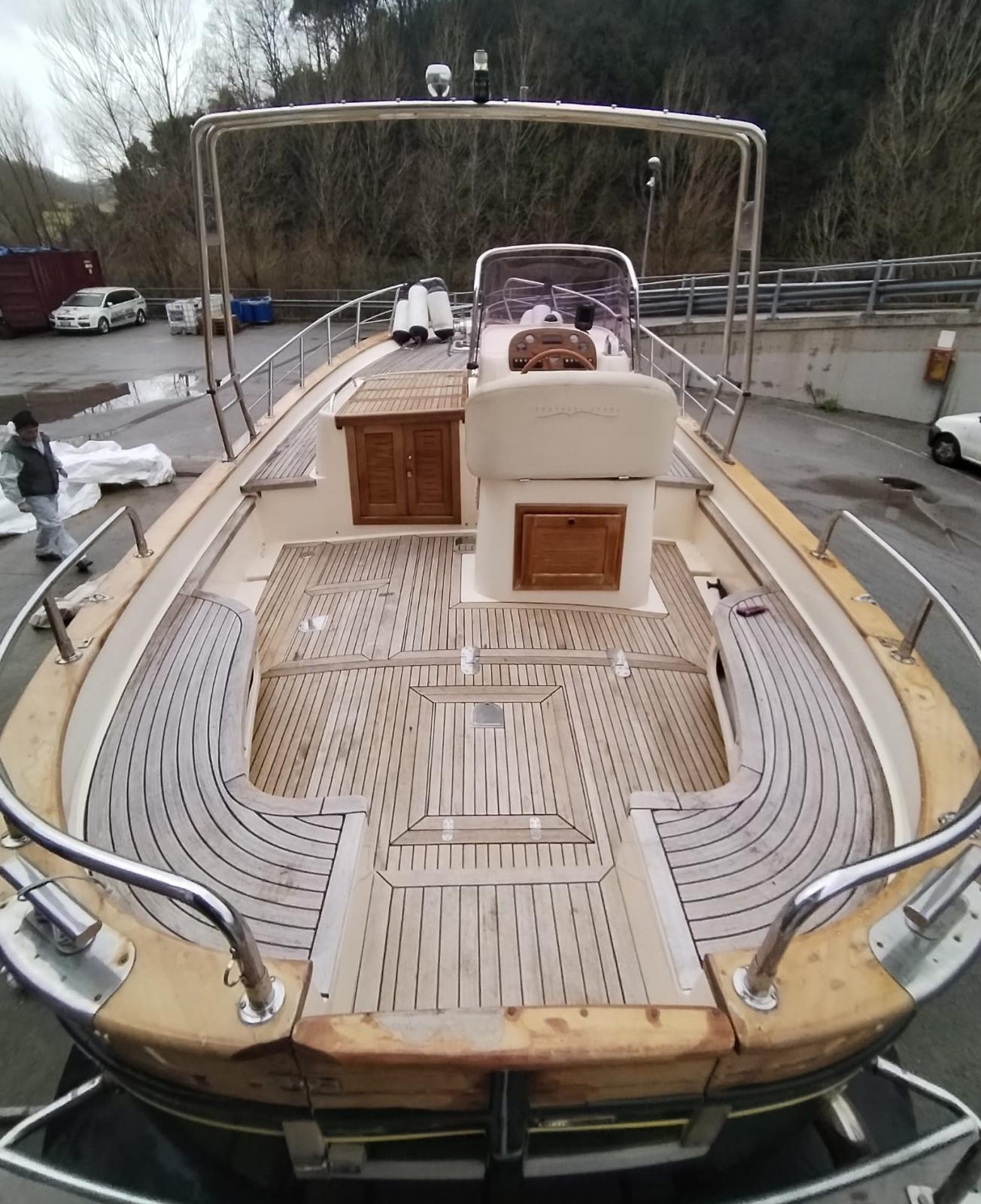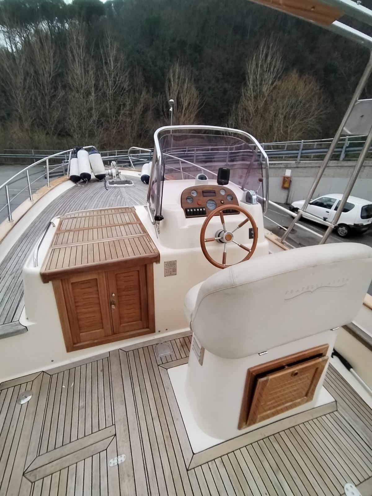 Engine Alarm, Bilge Alarm, Water pressure pump, Teak Side Decks, Special Colour, Deck Shower, Courtesy Lights, Platform, Automatic Bilge Pump, Manual Bilge Pump, Teak deck, Teak Cockpit, Shorepower connector, Electric Windlass, swimming ladder, Teak Deckhouse.