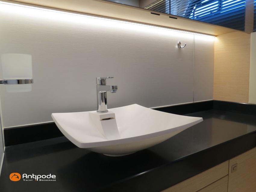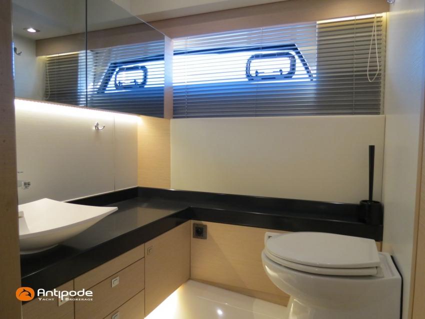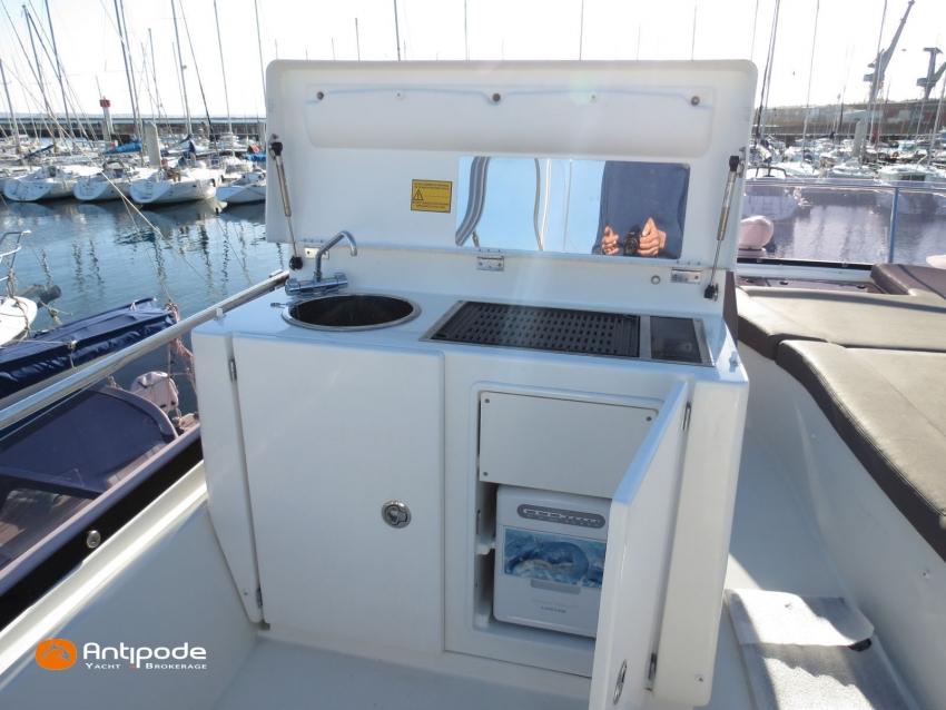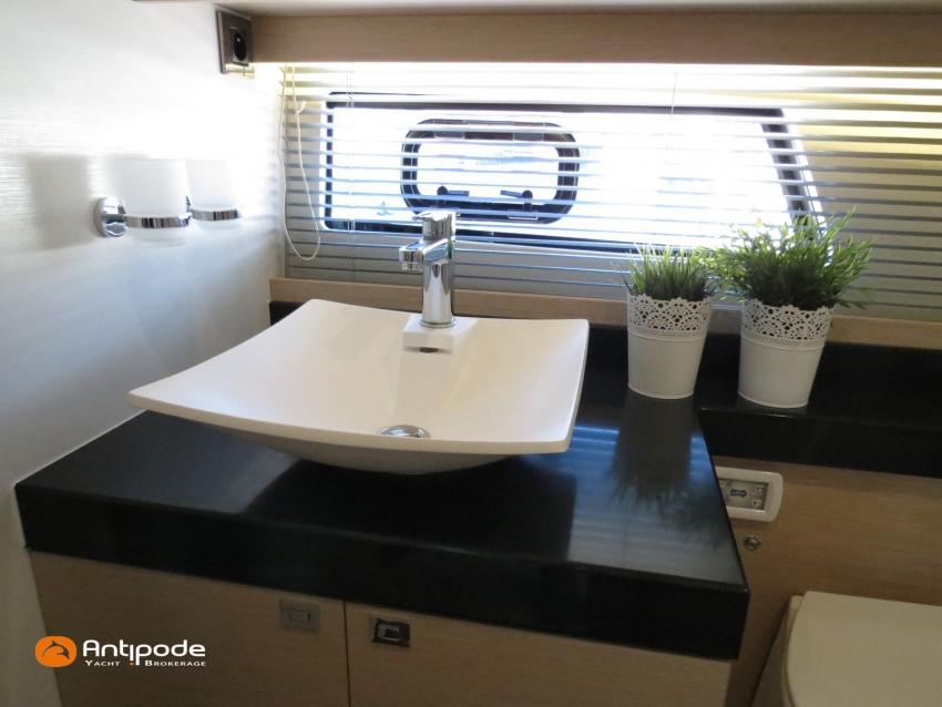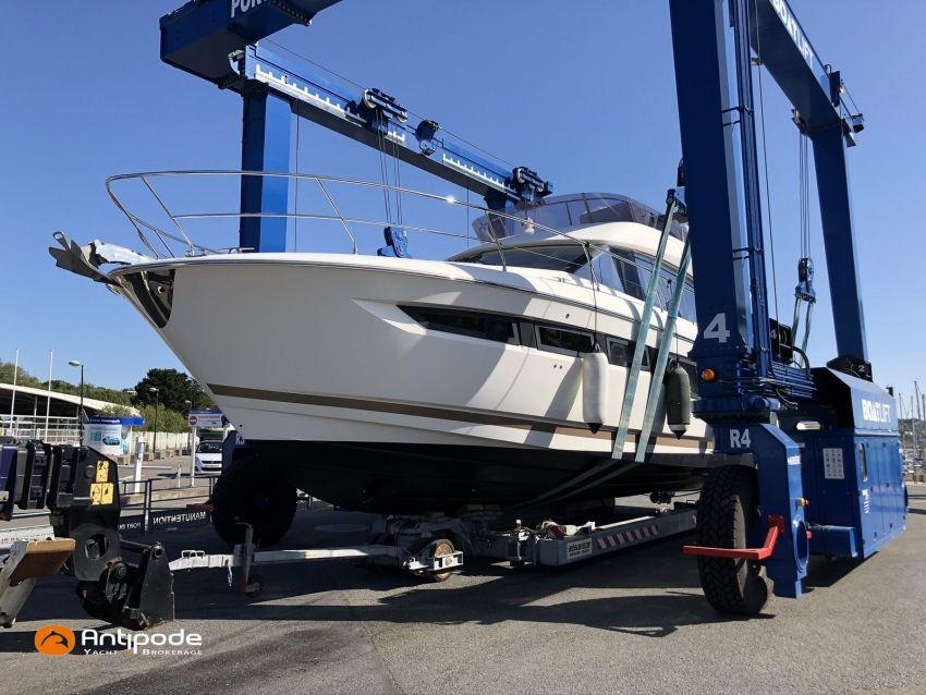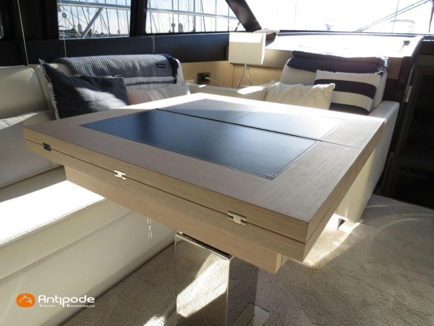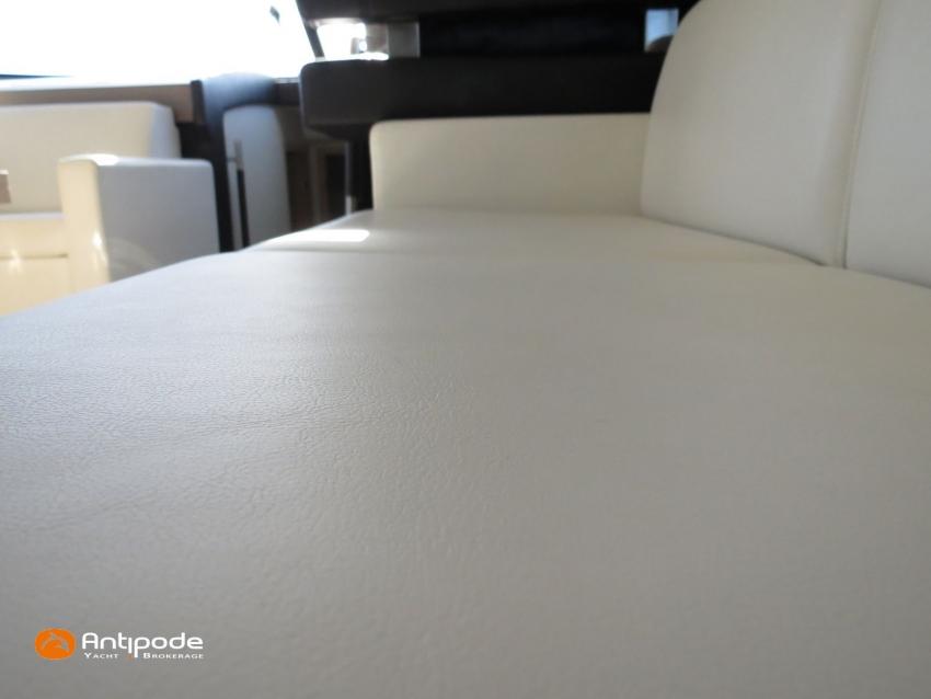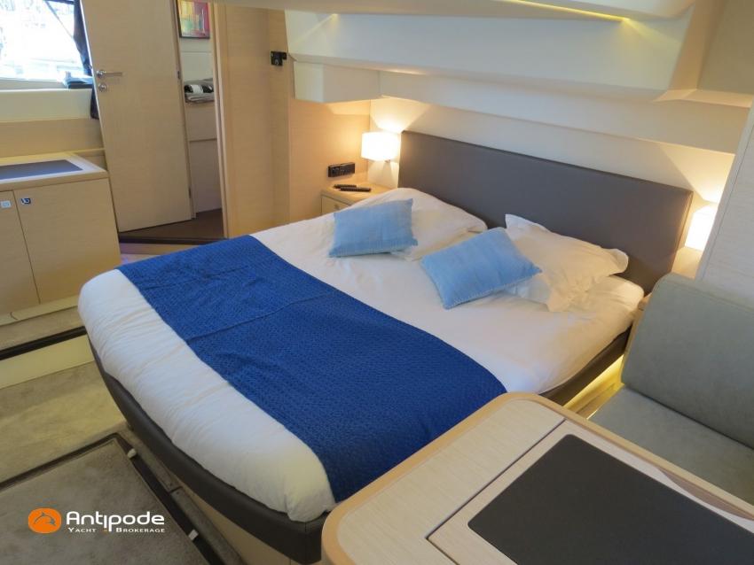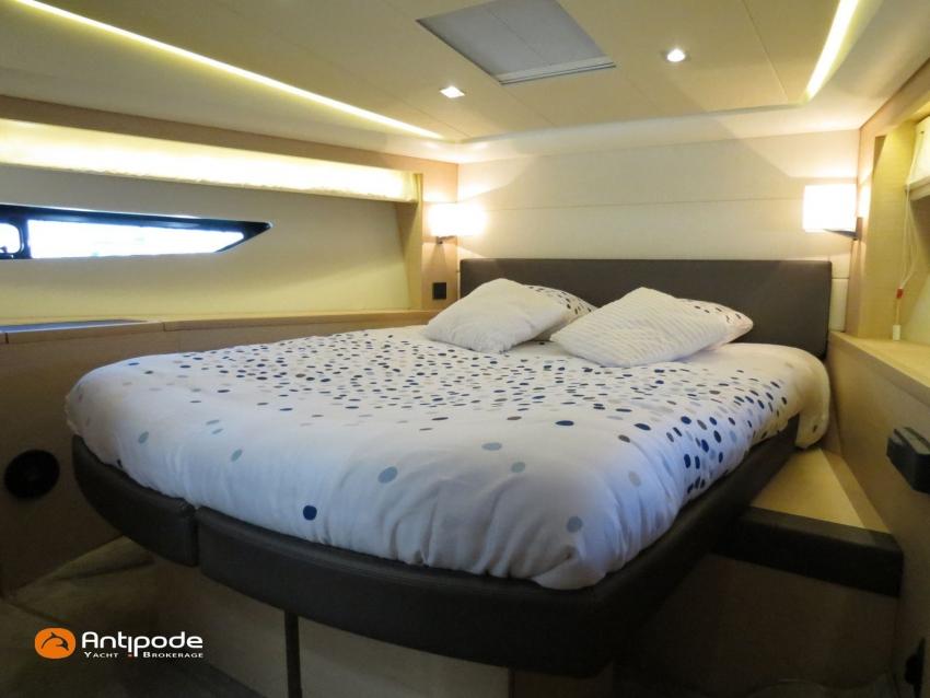 PRESTIGE 500 FLY, 2017, second hand, never chartered, owner boat, VOLVO IPS 600, 435 x2 hp (866 hrs), Bow thruster, Interior layout version 1 forward cabin, 2 aft cabins, Crew cabin , 2 heads (toilets + shower), Oak interior woodwork, Leather saloon upholstery, Electric Saloon table , Teak slatted cockpit floor, Teak cockpit table, Cockpit chain counter, Stanless dinghy berth, Hydrolic platform, Flying bridge, Flying bridge bimini top, Full cockpit enclosure - 2023, Raymarine in board autopilot, 2x GPS and chartplotter (pilot station) - Raymarine, GPS and chartplotter (Flybridge) - Raymarine, Radar with radome, Lenco trim tabs, FUSION system in all cabines, 2 burners cooker (GAZ), Flybridge and cockpit plancha, Micro wave owne 220 V + Grill, Underwater lighting, Aft camera - Raymarine, Electric winch (capstan), Heating system EBERSPACER, Generator 220 V - ONAN , services invoices available, Located Brittany. For more information or to make an appointment for a visit, contact : François Mouchel 06 62 30 97 30 - francois@antipode-yachts.com
