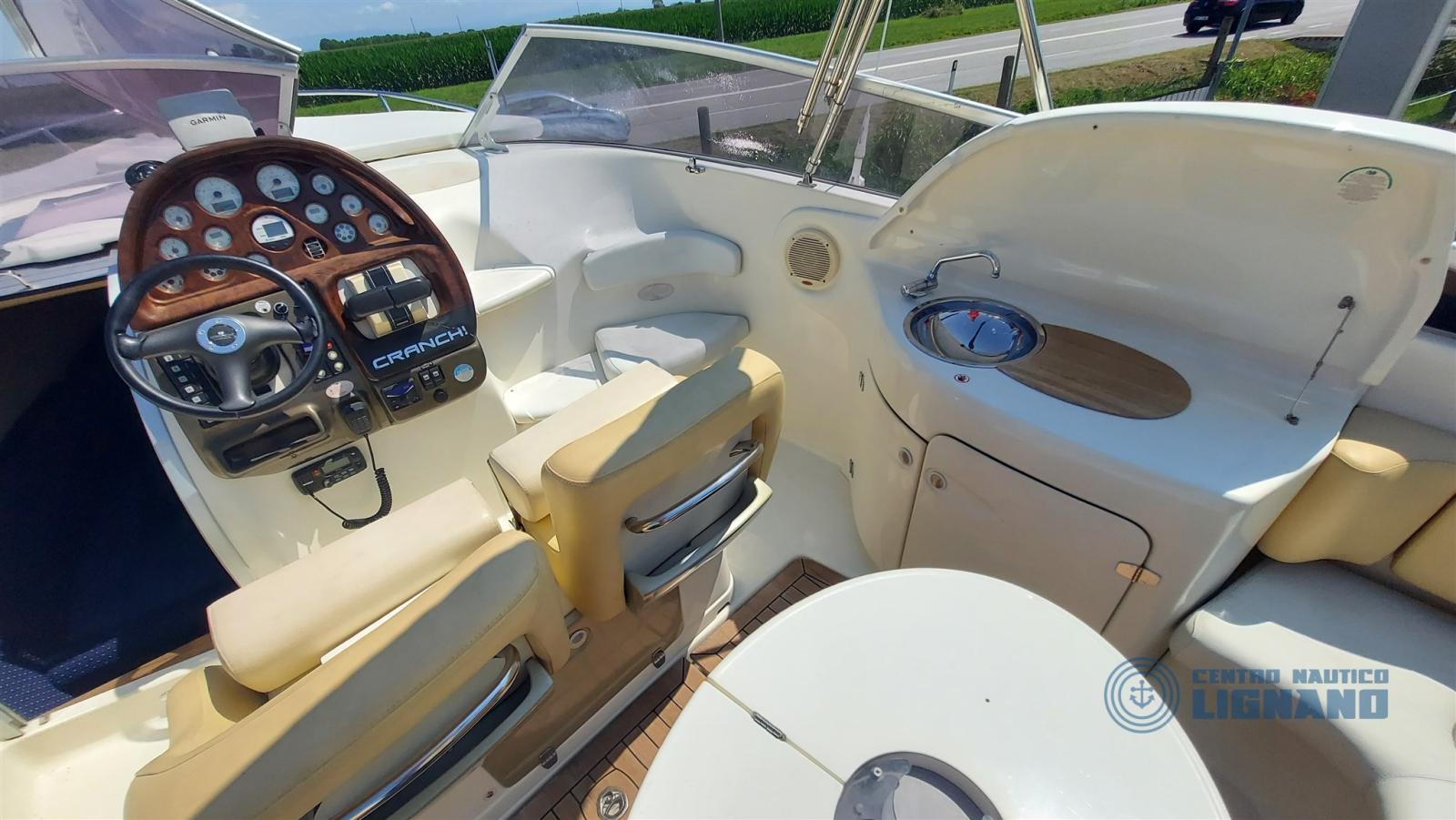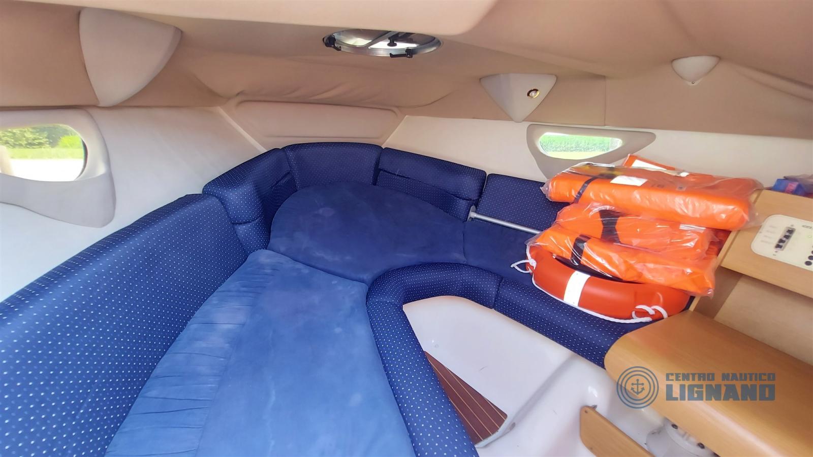 Cranchi CSL 27 of 2007 with nr. 2 Volvo Penta EFB 4.3 GXI engines 225 Hp injection, twin propeller foot, double cabin with 2 beds and WC. ATTENTION: extensive list of jobs carried out in June 2025 such as raisers, coupons, feet and much more. The boat is 8.57 meters long and 2.83 meters wide and is sporty and fun for the whole family. With a nice spacious cockpit equipped with various comforts, it offers a very interesting aft sunbathing area. This boat is equipped with: total cover, stern platform with retractable ladder, stern platform with EVA synthetic teak, sundeck also in the bow with full cushions, cabin with 2 beds and mattresses, opening hatch in the cabin, courtesy and reading lights, internal electric toilet under seats, wooden floor, stereo system with 2 speakers, battery switch and utility panel with thermals, 12V socket, VHF radio with external microphone, Volvo Penta EVC computer, electric flaps, trim, dual-data computer, compass, vertically sliding door with key, various indicators (temperature, errors, oil pressure, alternator, fuel level, trim position, important errors, rev counter), external sink inside the wetbar, external refrigerator with icebox, battery switch, shore cable, bilge pump, automatic fire extinguishing system, engine room with electric opening, double battery, hot water boiler, battery charger, stainless steel tank, folding outdoor table, access door to the bow, mooring equipment, awning with stainless steel bimini, other in view).