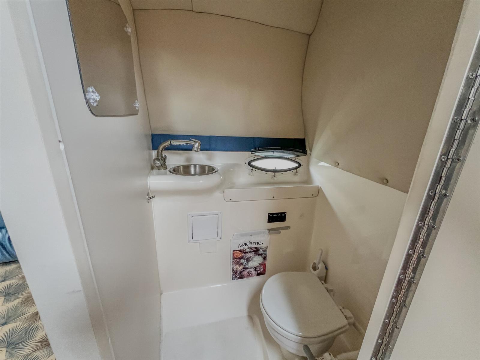Galley, Burner (Elektric and alcohol, has never been used), Icebox, Microwave Oven (Has never been used).