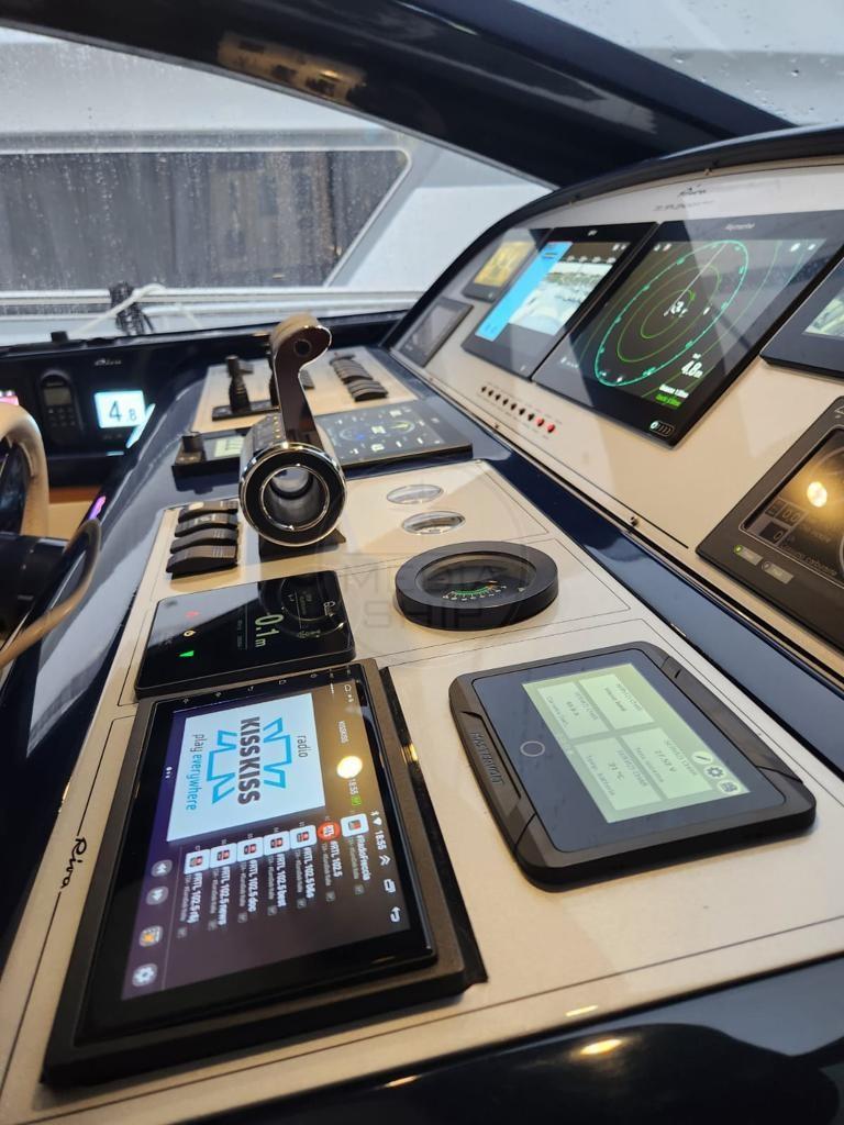 RIVA 72 SPLENDIDA, 2005, HULL WHITE, TEAK DECK, 2 x 1550 HP MAN - V12, DIESEL, BOW THRUSTER, STERN THRUSTER, 3 CABIN/S, 3 WC(S), DISH WASHER, WASHING MACHINE, GENERATOR, WATER MAKER, AIR CONDITIONING, GPS INTERFACED WITH RADAR, RADAR, ENGINE ROOM CAMERA, HYDRAULIC RETRACTABLE BOARDING LADDER, EXTERNAL CUSHIONS, BIMINI-TOP, ELECTRIC SLIDING HARD TOP, +39 06 65 22 258/9, www.mediaship.it - AD CODE W159929/M - Check the full brochure, the video and the sea trial on our Web site MEDIA SHIP