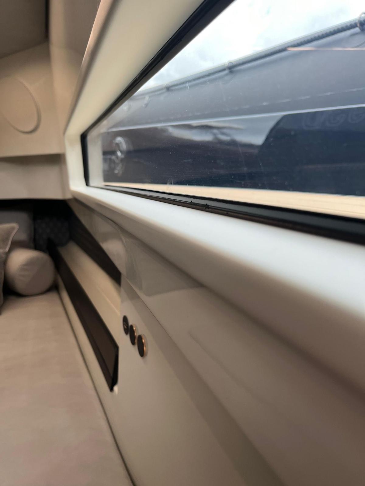 Engine Alarm, Bilge Alarm, Alternator, Anchor (Acciaio Inox), Electric Engine Compartment Opening, Water pressure pump, Shore power cable, Deck Shower, Washbasin in the cockpit, Courtesy Lights, Underwater lights, Fenders, Gangway, Automatic Bilge Pump, Shorepower connector, Water harbor connector system, Electric Windlass, swimming ladder, cockpit table, Horn.