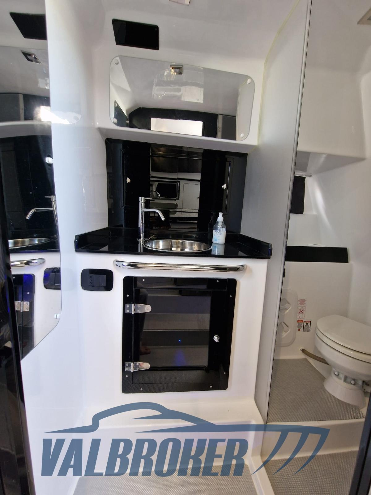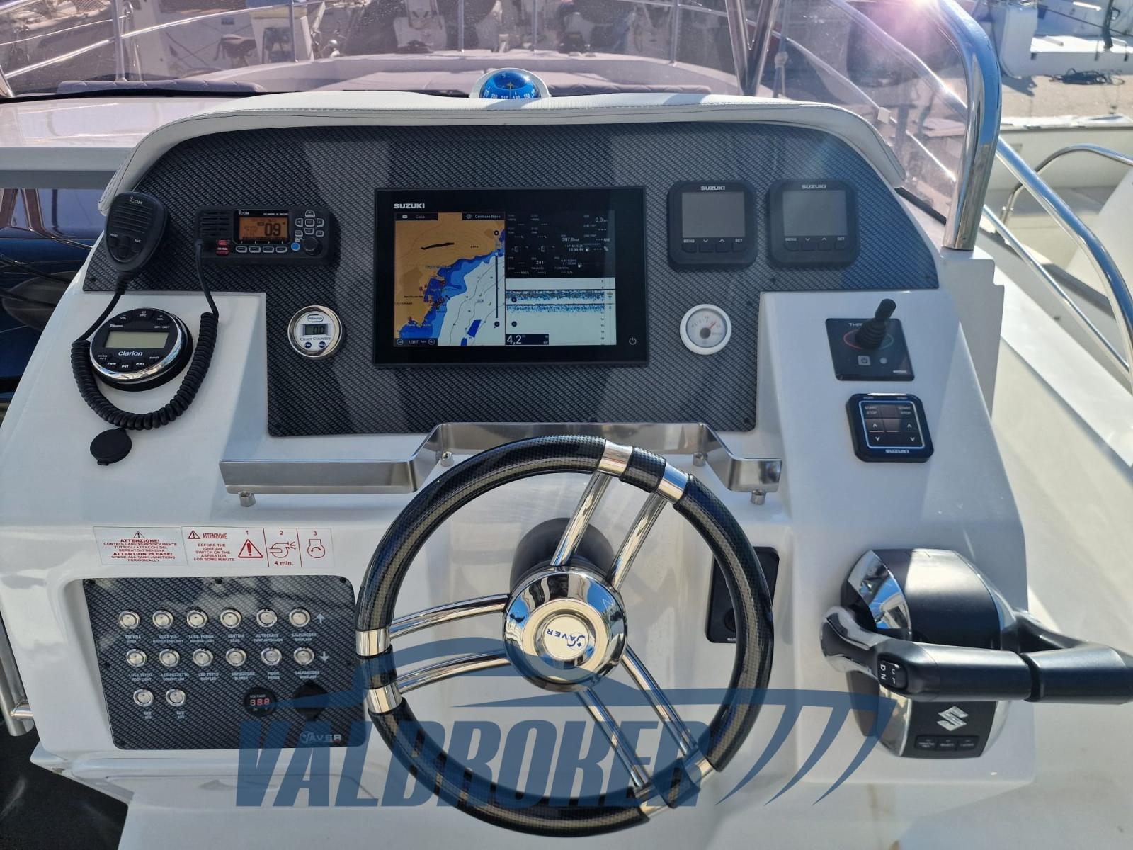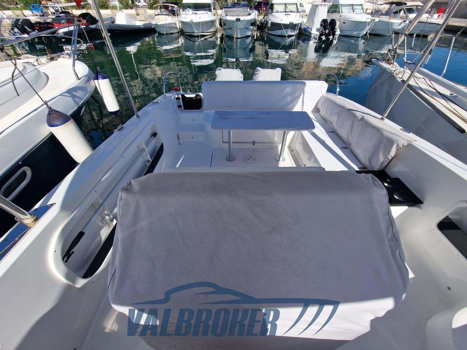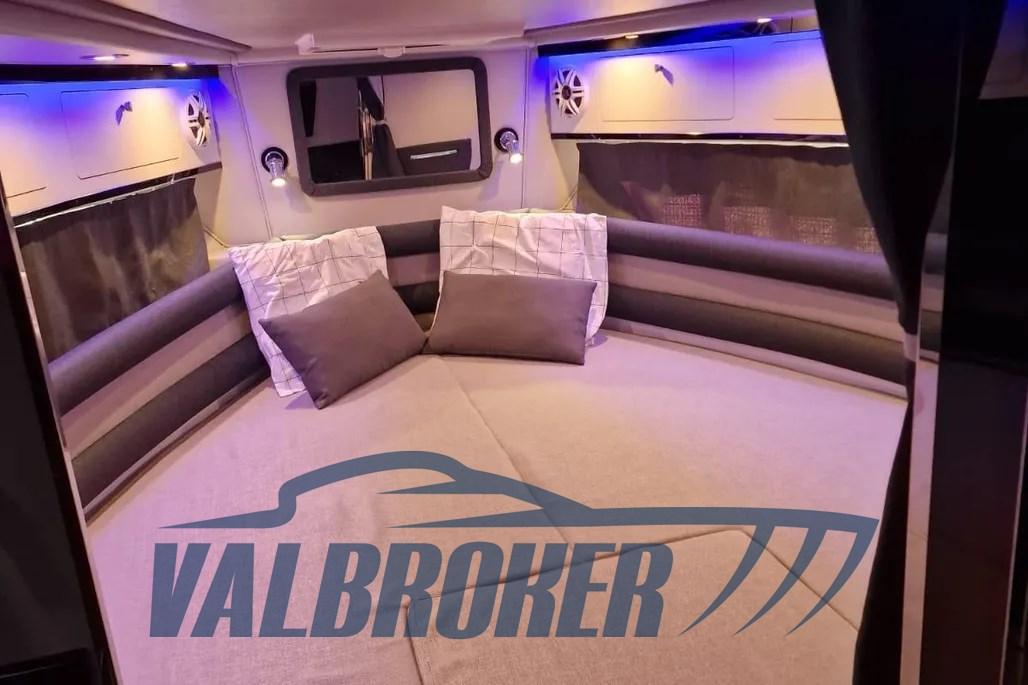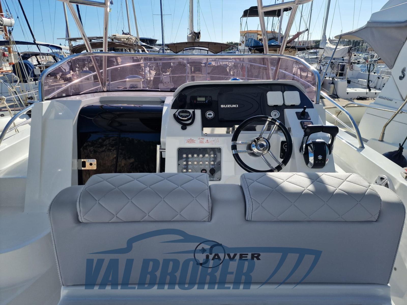 Walkaround with a modern design and optimized layout. Boat with spacious cockpit and space below deck. Powered by 2x Suzuki DF 300 V6. The engines are under warranty until July 2026. Single owner.