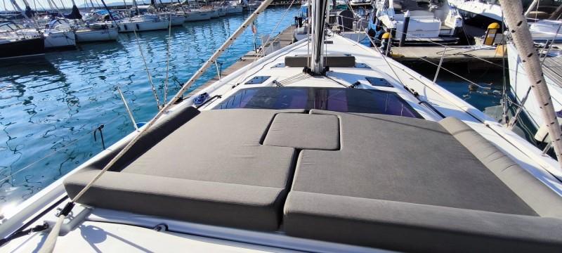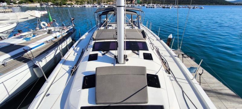 The DUFOUR 530 has been very lightly used by her sole owner and is in like-new condition. Exceptionally equipped, with 3 cabins each with private bathroom—including the forward owner’s cabin—she features: fiberglass bowsprit, hydraulic stern platform, autopilot, Raymarine electronics and color GPS with cartography, outboard davits, fully equipped kitchen (oven, double refrigerator inside/outside, induction stove), 1 shower booth, LED interior lighting, and sprayhood. Ready to sail. - Check the full brochure, the video and the sea trial on our Web site MEDIA SHIP